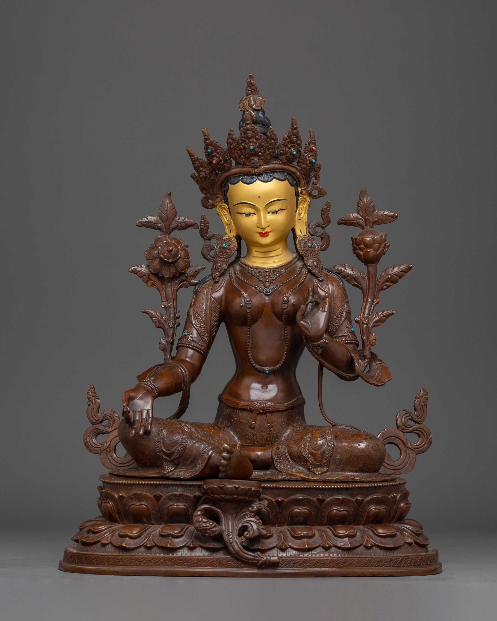 Green Tara Gold & Acrylic Details Statue | Compassion and Spiritual Healing