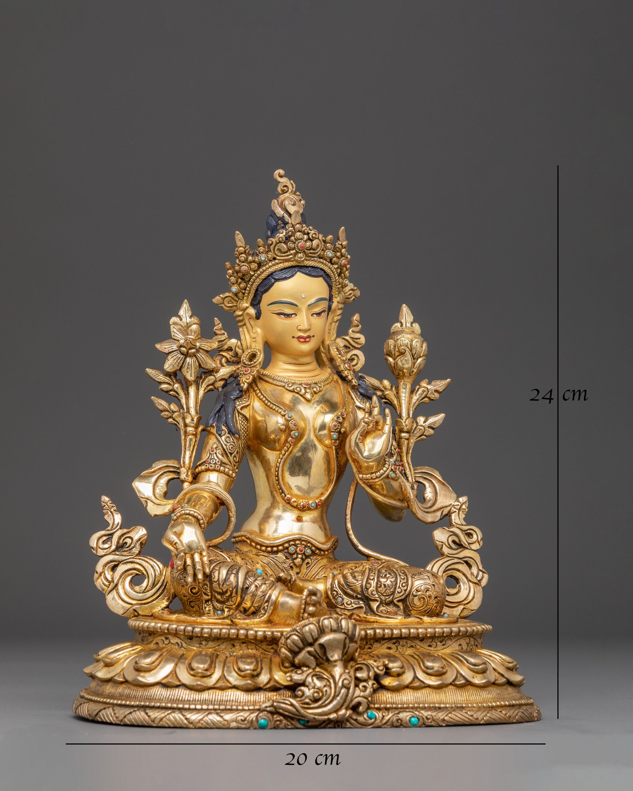 Green Tara Golden Statue for Altars | Feminine Energy and Protection