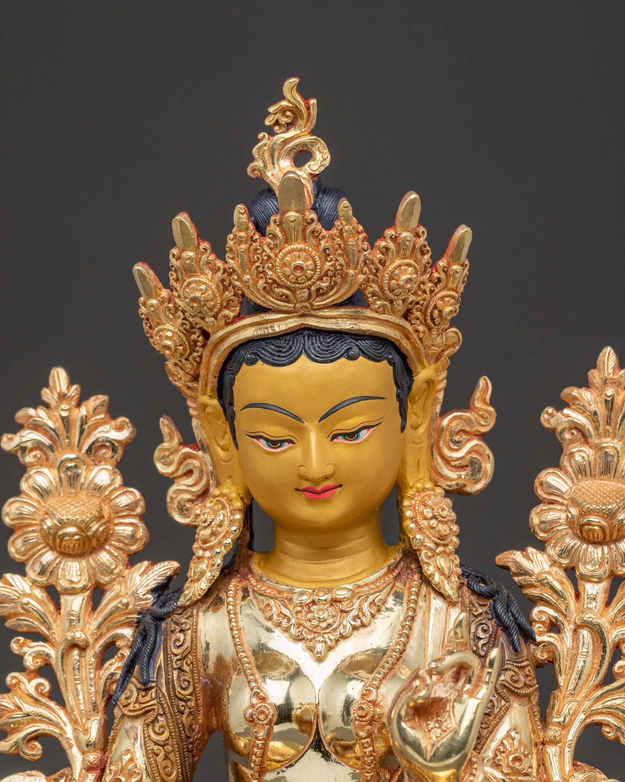 Green Tara Healing Mother Statue | Handcrafted Gold Gilded Copper