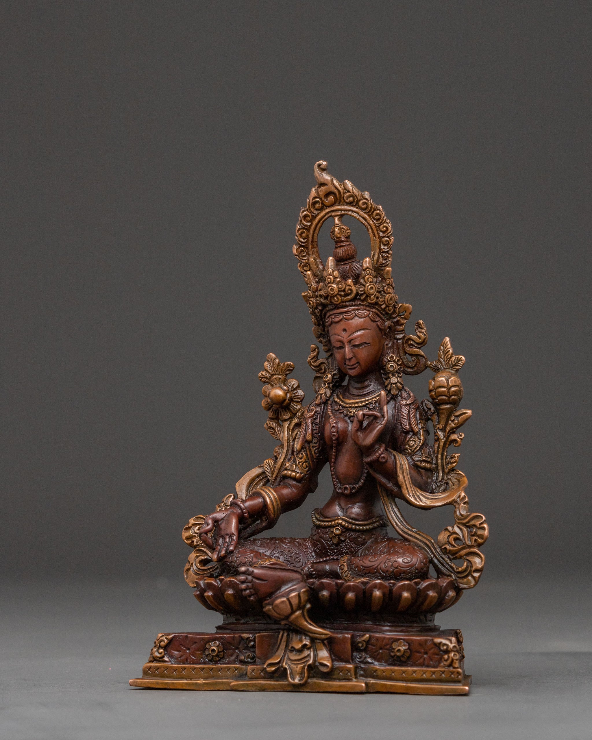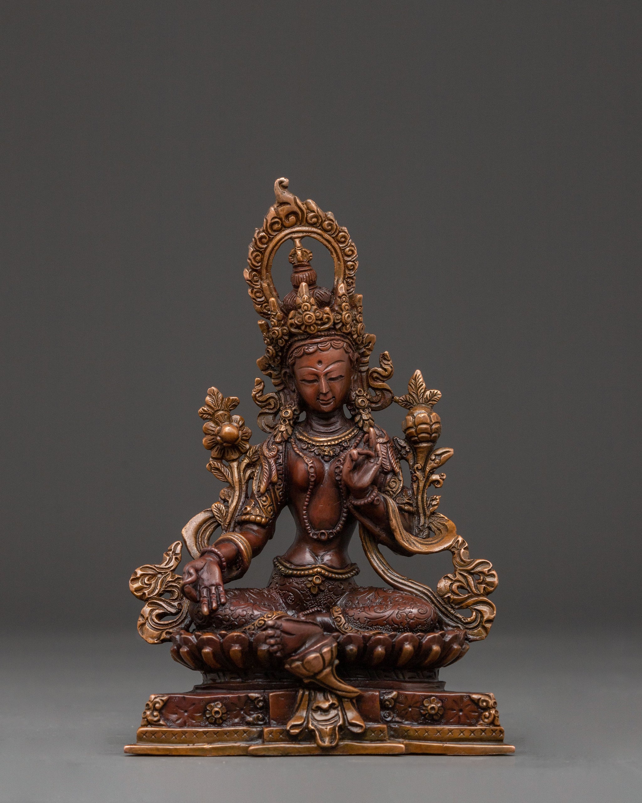 Green Tara Healing Protection Statue - Oxidized Copper Sculpture