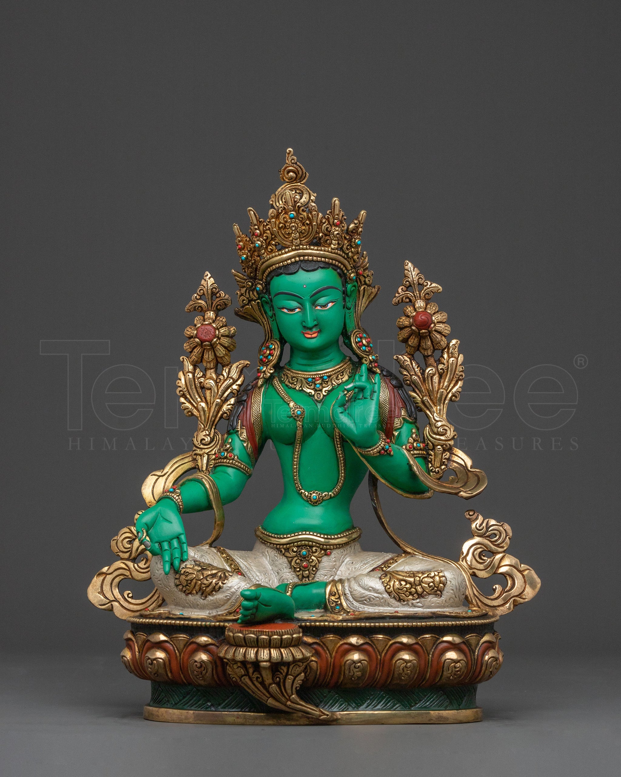 Green Tara Protection Statue: Hand-Gilded Serenity