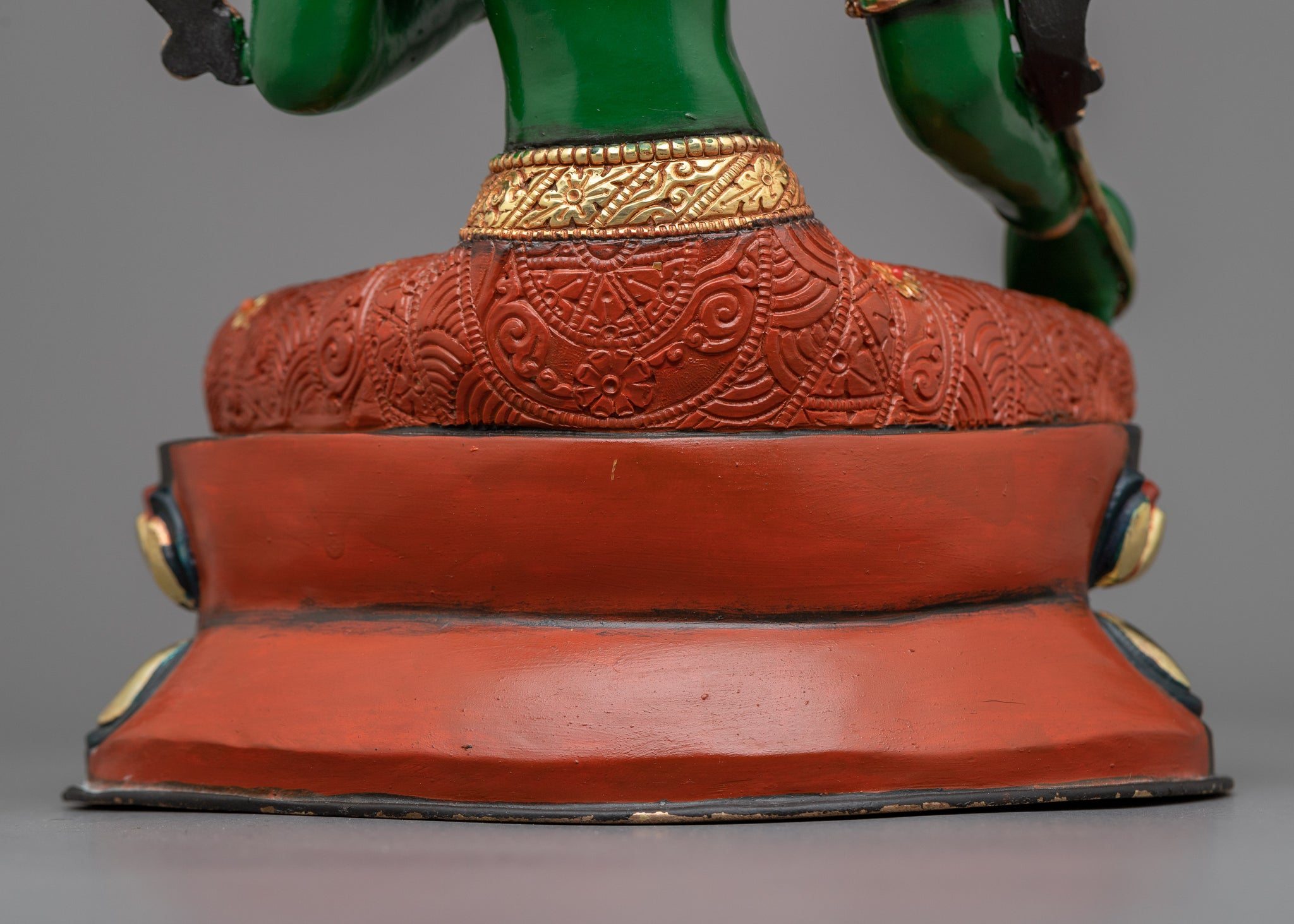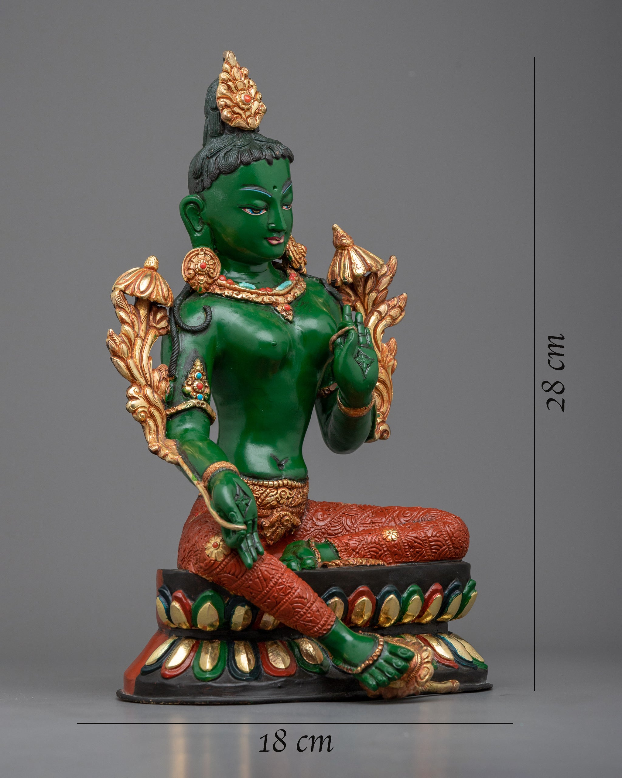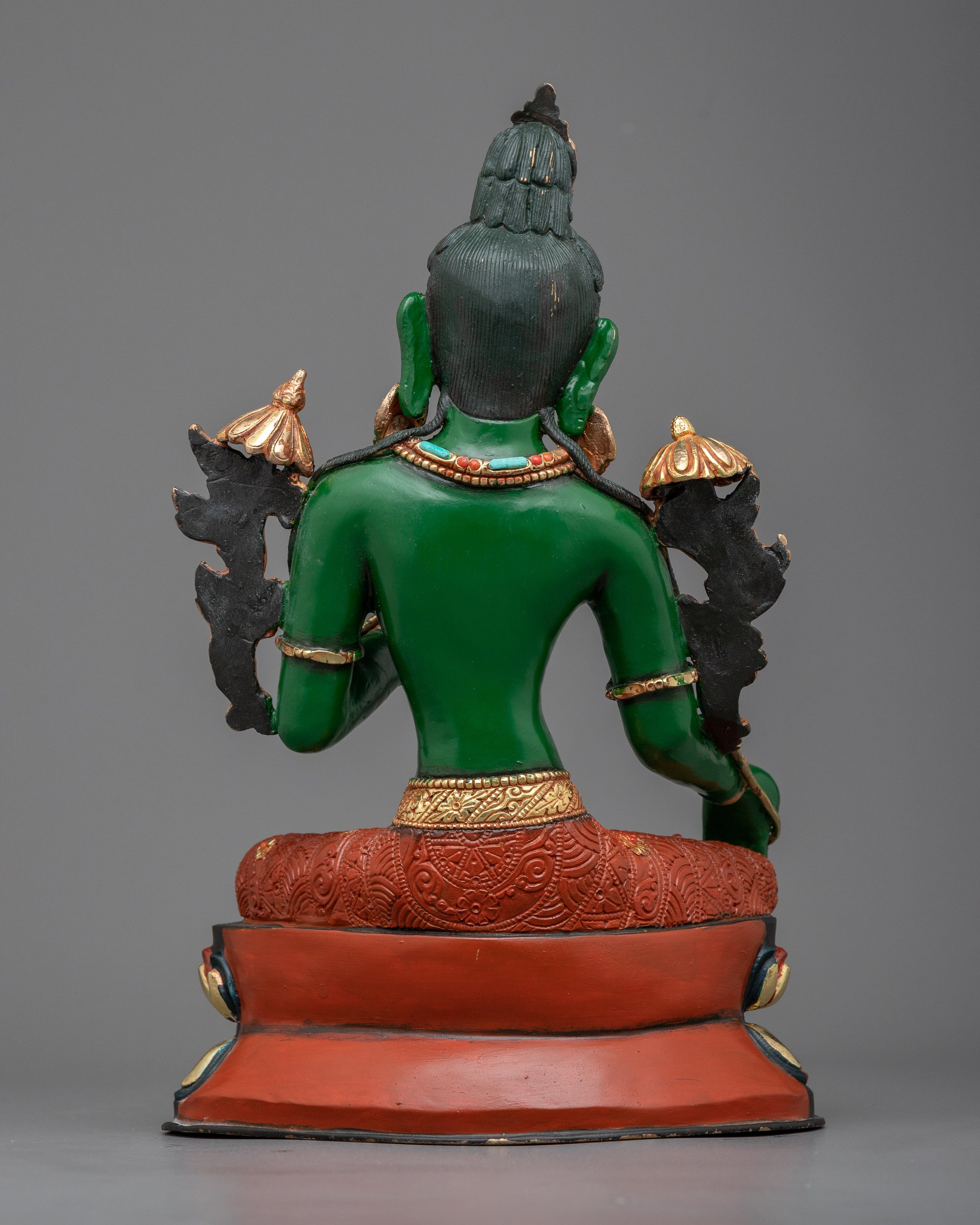 Discover Tranquility with Handcrafted Green Tara Puja Statue | Buddhist Copper Sculpture