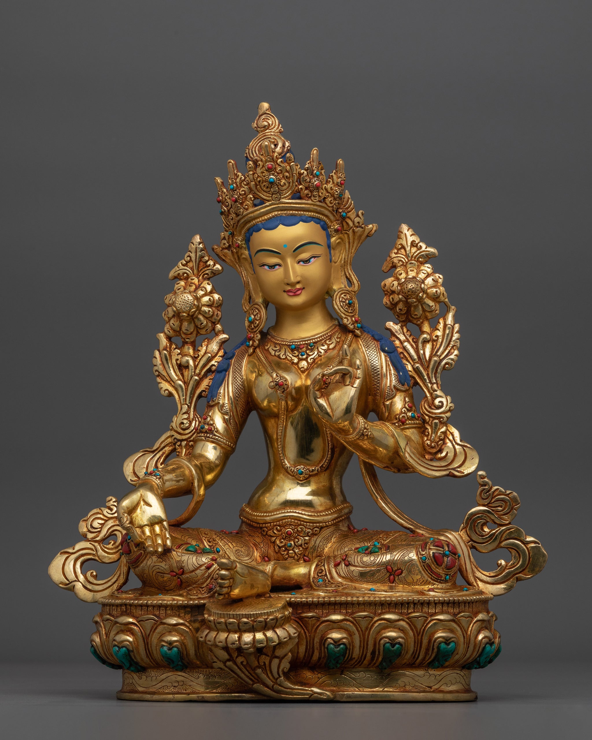 Green Tara Sculpture of Female Buddha for Protection, Peace, and Spiritual Growth