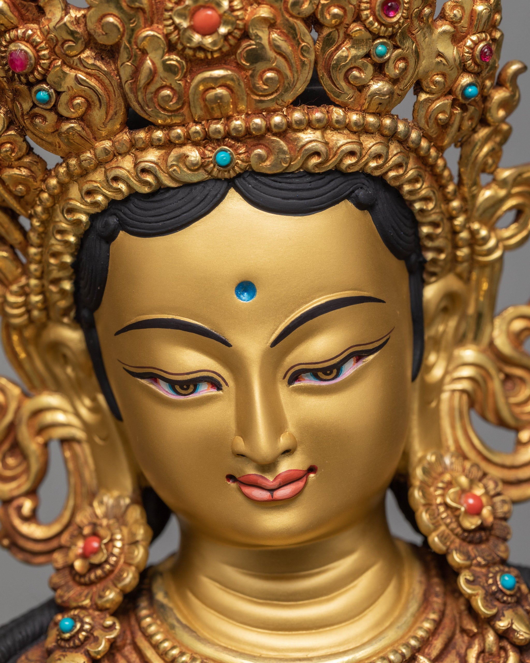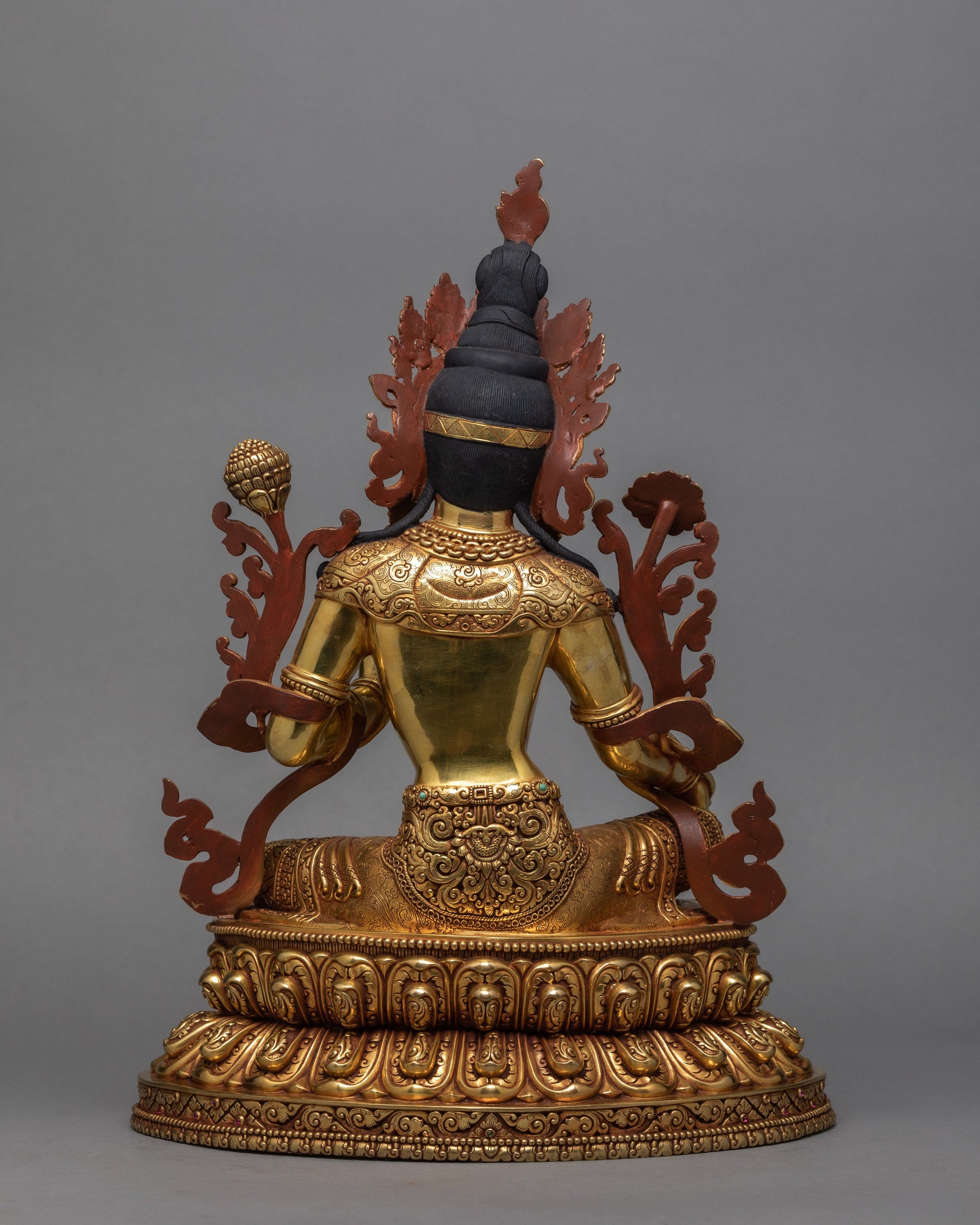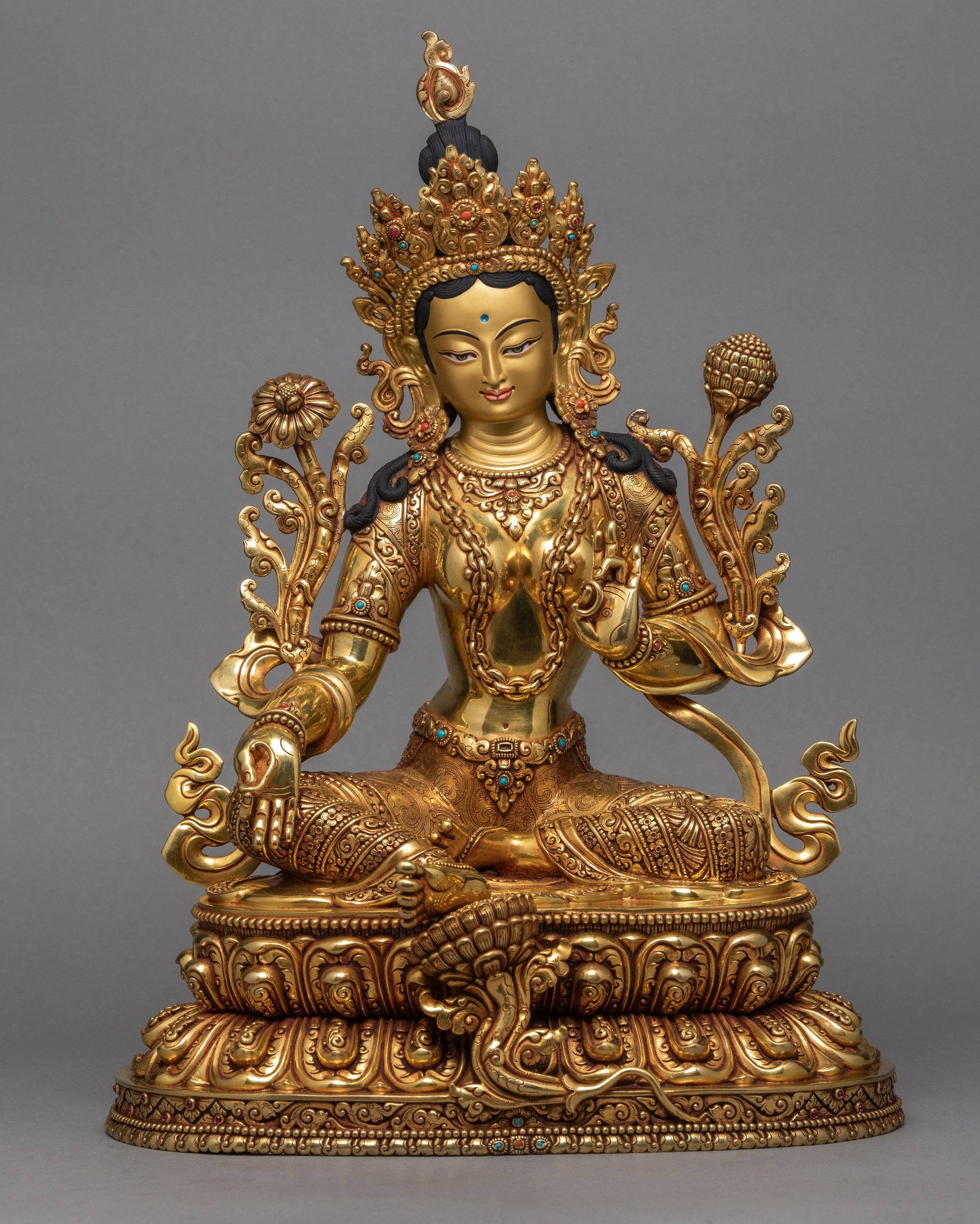 Green Tara Statue, Purely Handmade and gilded in 24K Gold, Tara Statue