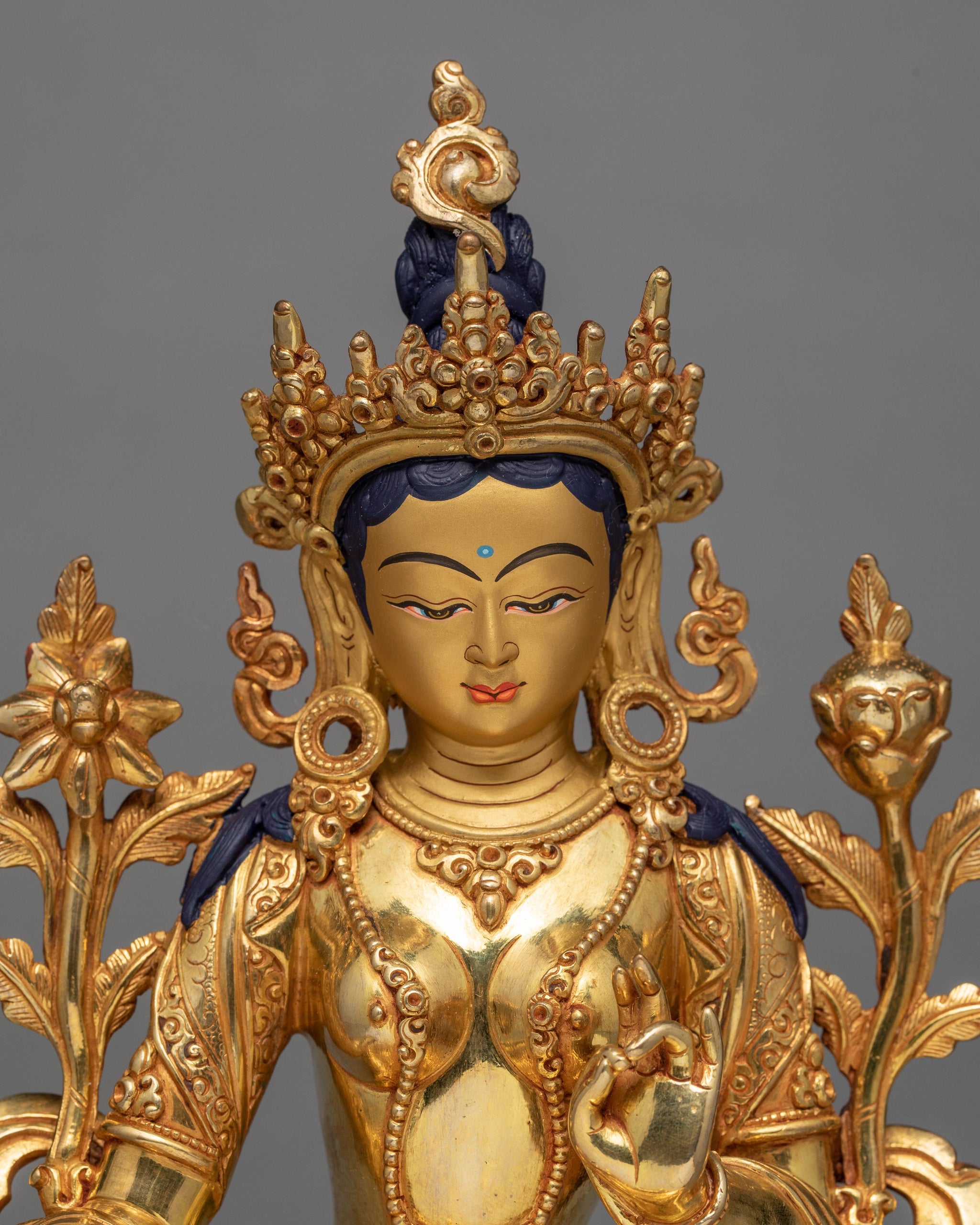 Green Tara Statue, Traditional Himalayan Gold Statue, Mother Tara