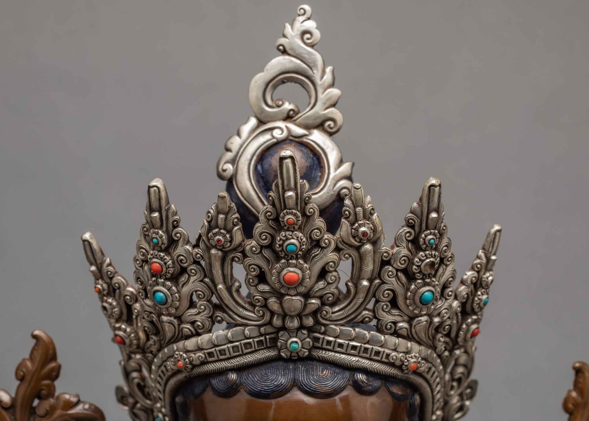 A beautiful solid bronze Green Tara Statue may just be what's missing from your Green Tara practice. Not only is it meticulously handcrafted by the local Kathmandu artisans and is iconographically precise, it is also equally aesthetically pleasing. Green Tara is the female counterpart of the Bodhisattva Avalokiteshvara - she is believed to have emanated from the tear of compassion for the sentient beings that he shed from his right eye.
