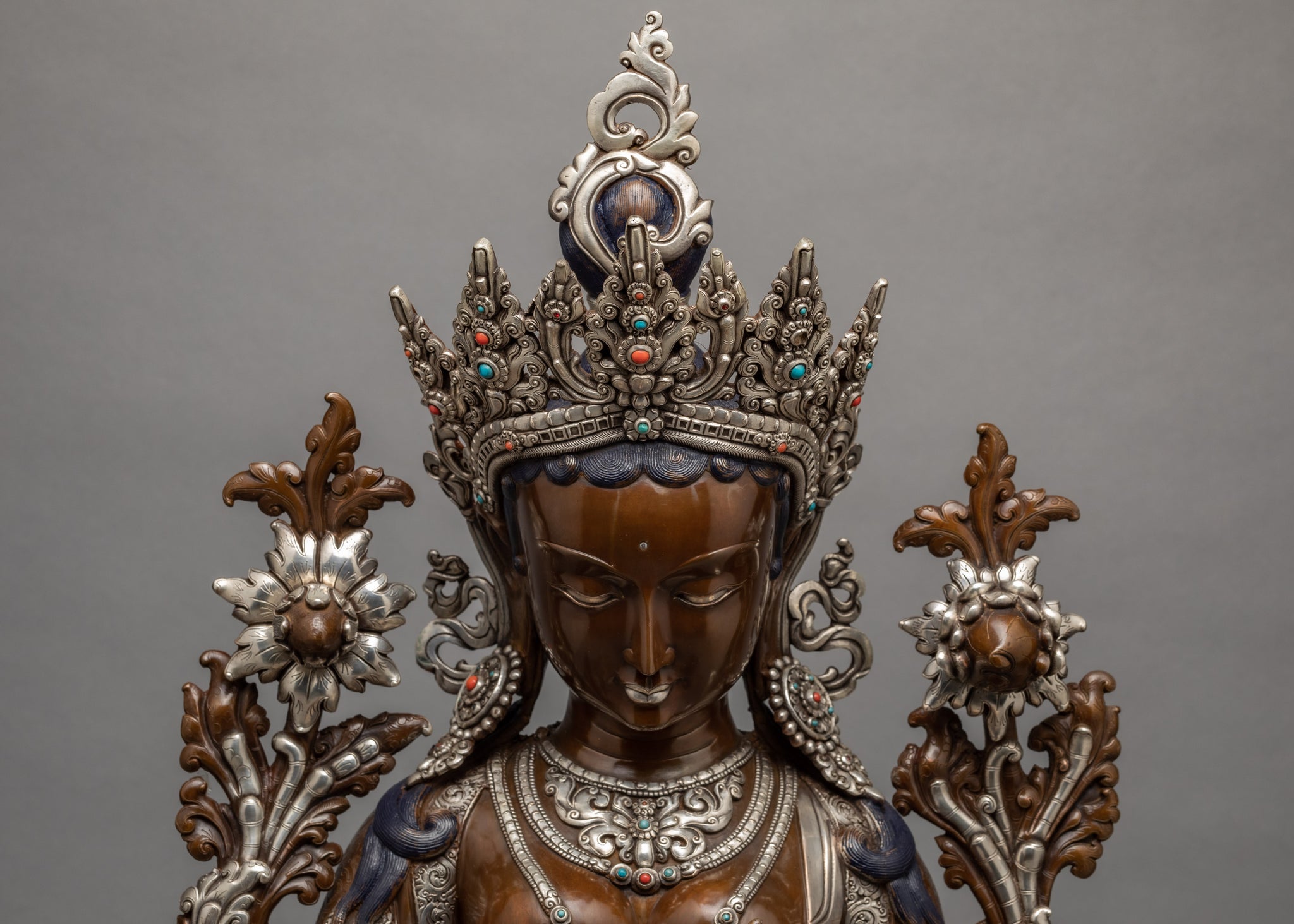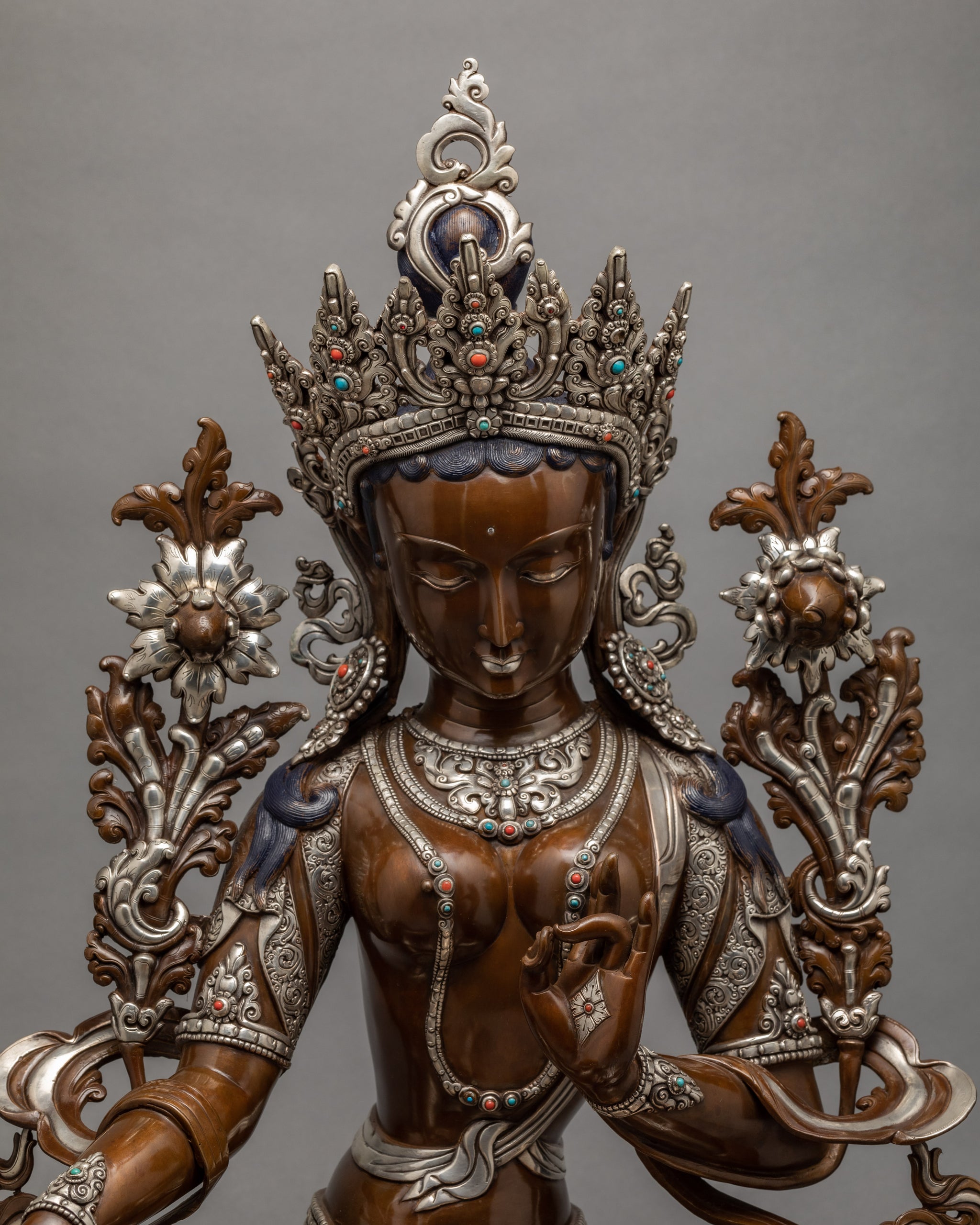 Green Tara Statue, Aesthetic Bronze Tara Statue