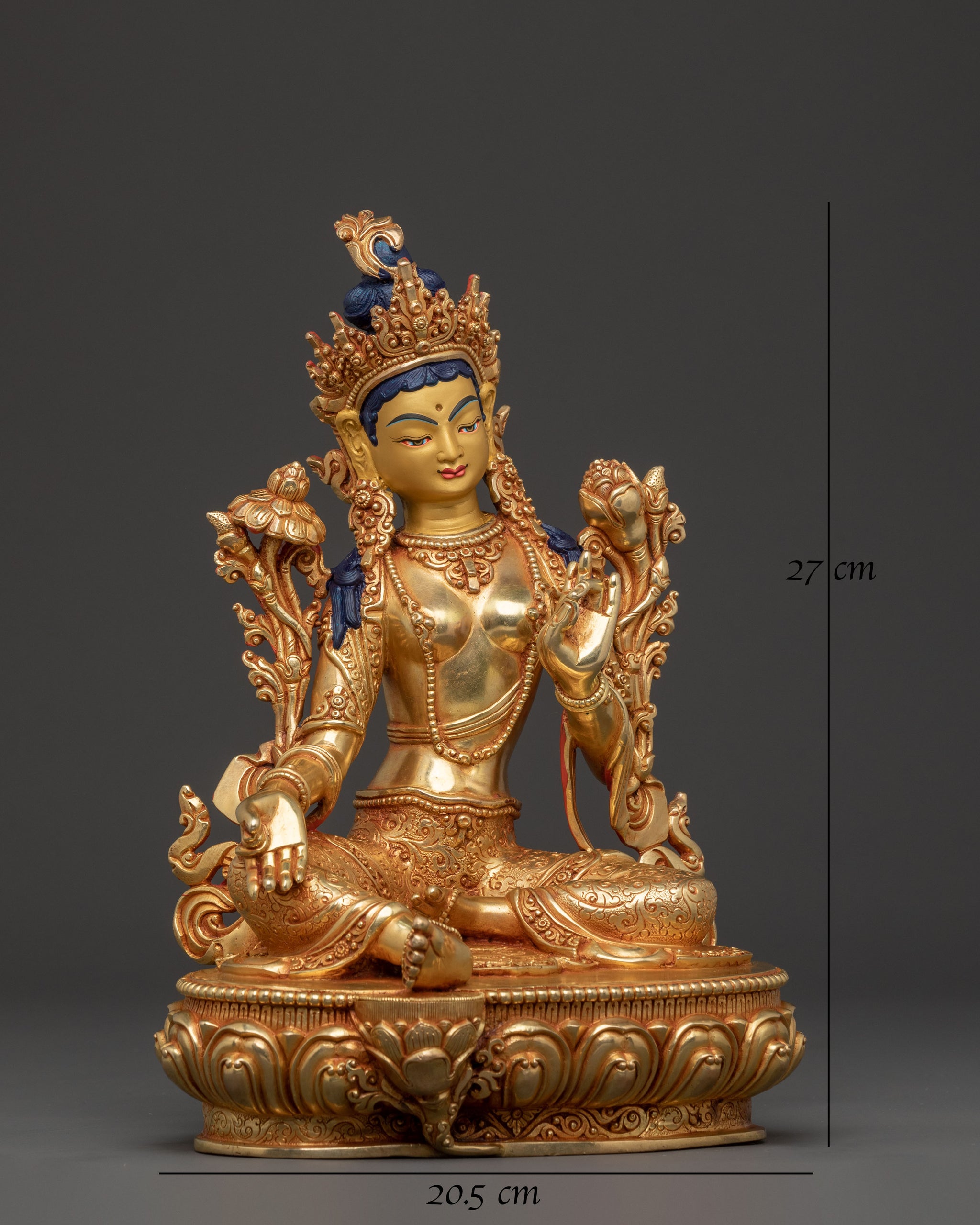Green Tara Swift Liberator Statue – Radiant 24K Gilded Copper