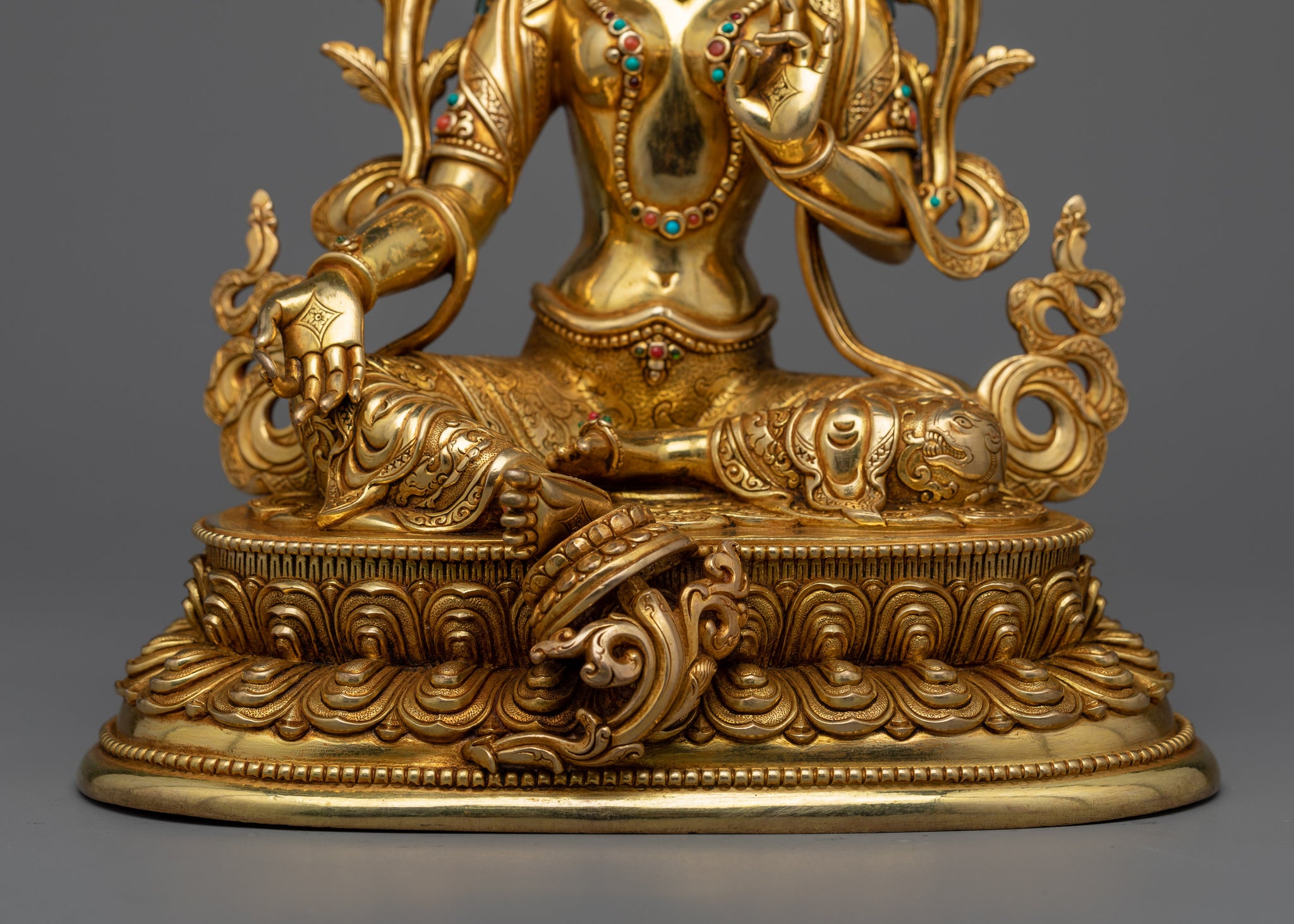 Our Beautiful Statue For Green Tara Visualization is more than just a sculpture; it's a powerful spiritual instrument that will help you connect with Tara's enlightened energy. This gorgeous statue is expertly handcrafted with a robust copper body and embellished with 24k gold gilding and bright acrylic paintings, making it an essential piece for people committed to the path of compassion and release. Just a peek at her face will calm you down, making it much easier to visualize lord mother tara.