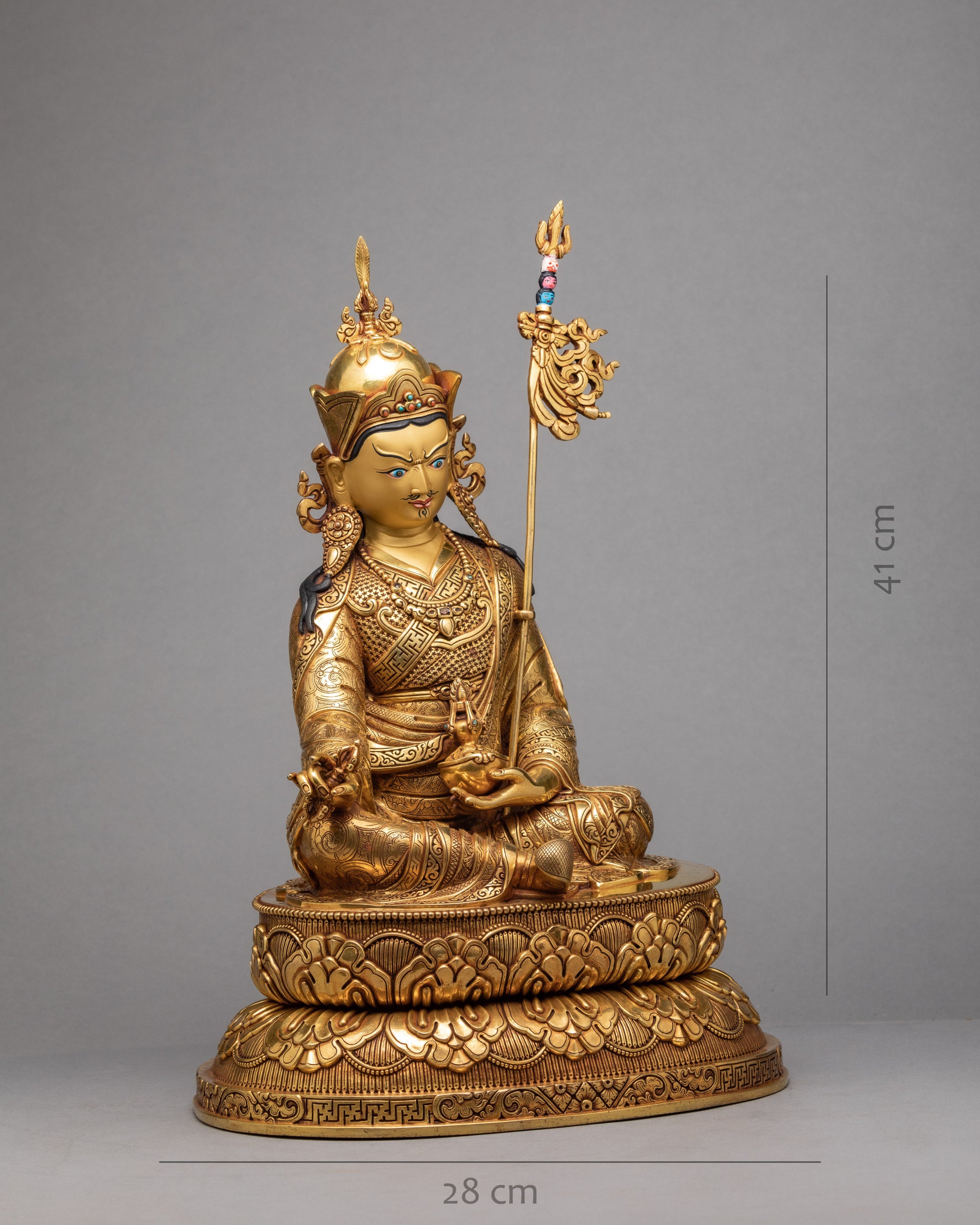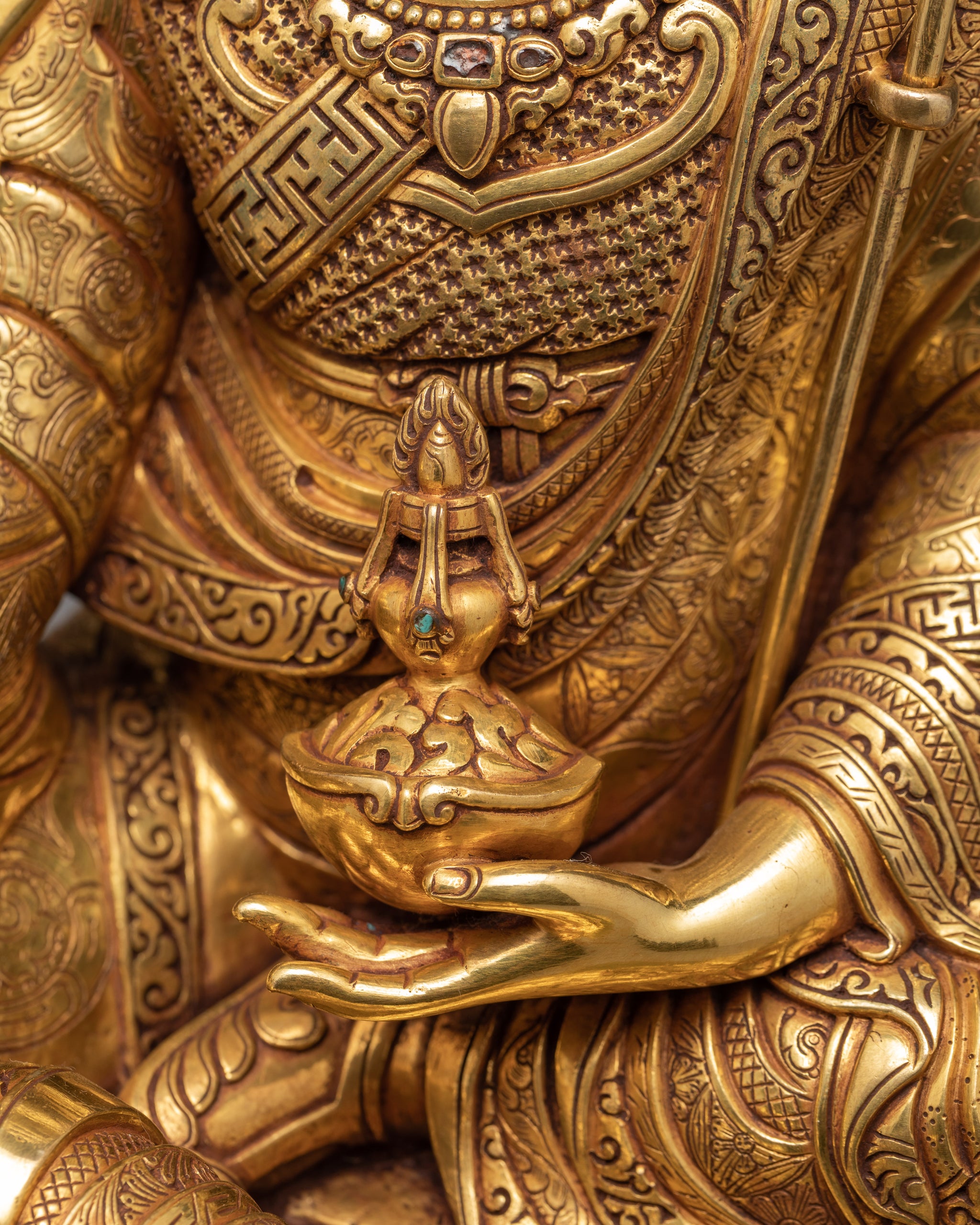 Guru Padmasambhava Sculpture, Traditionally Gilded in 24K Gold