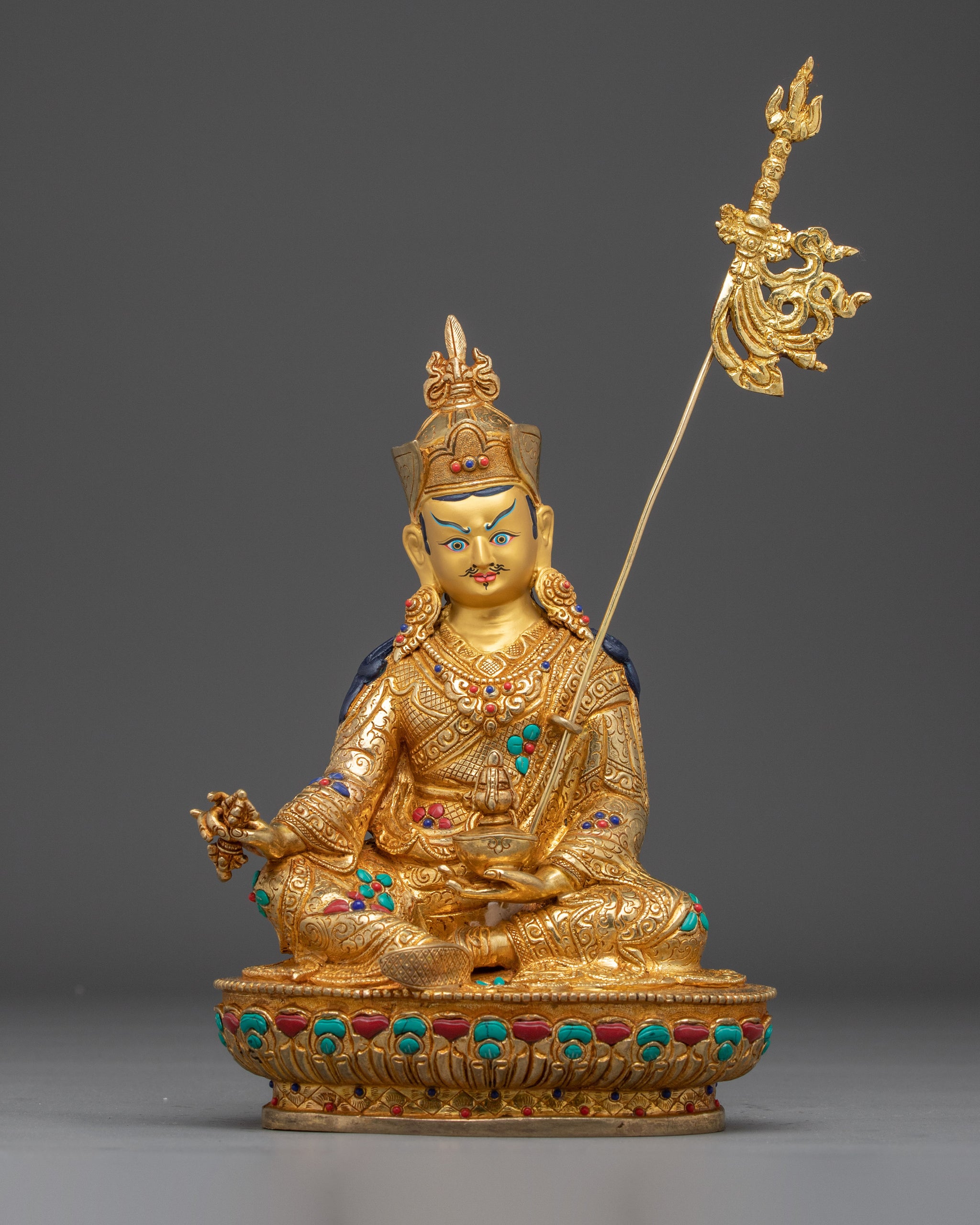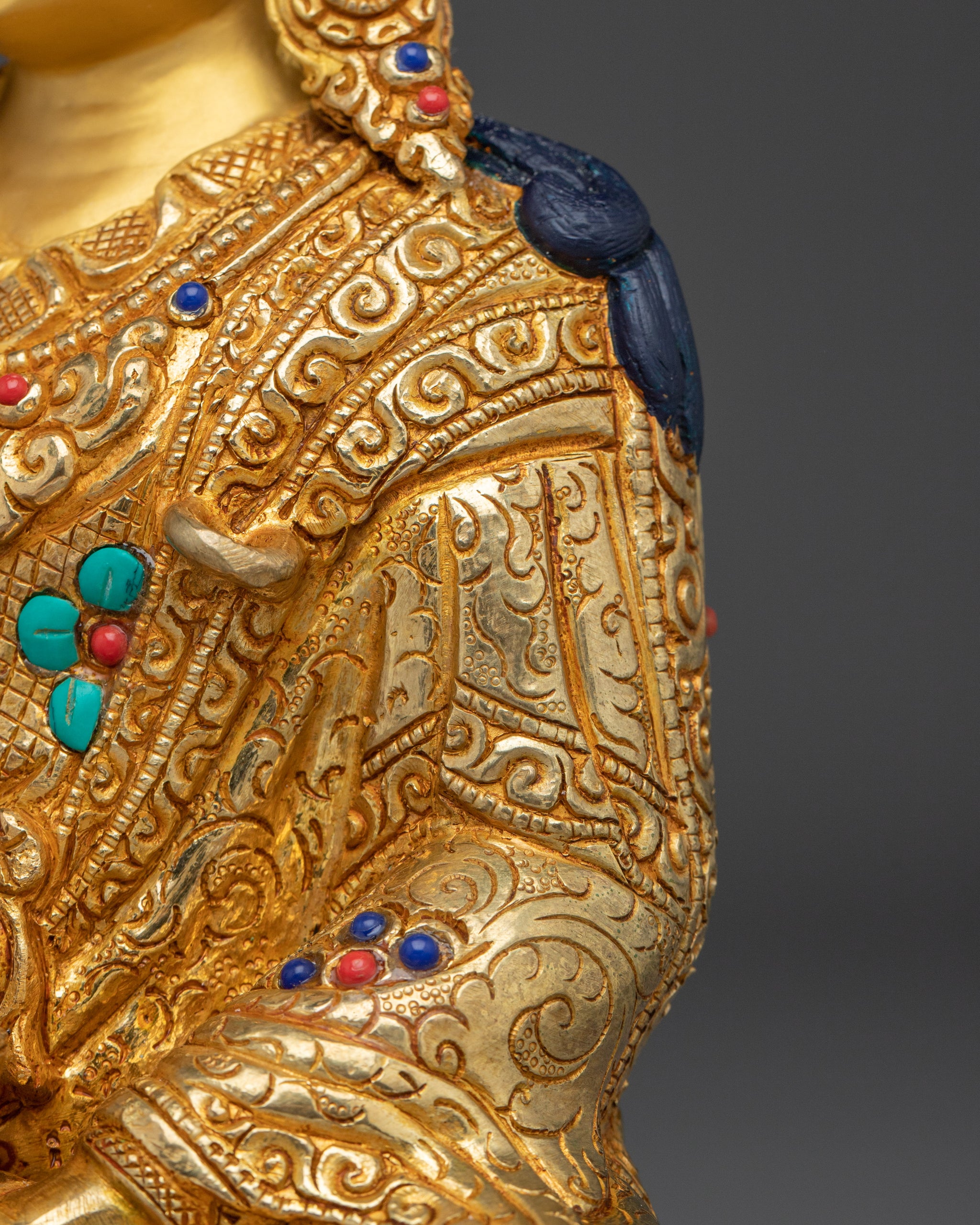 Guru Rinpoche Gold Gilded Buddha Statue | Copper and Gemstone Work of Art