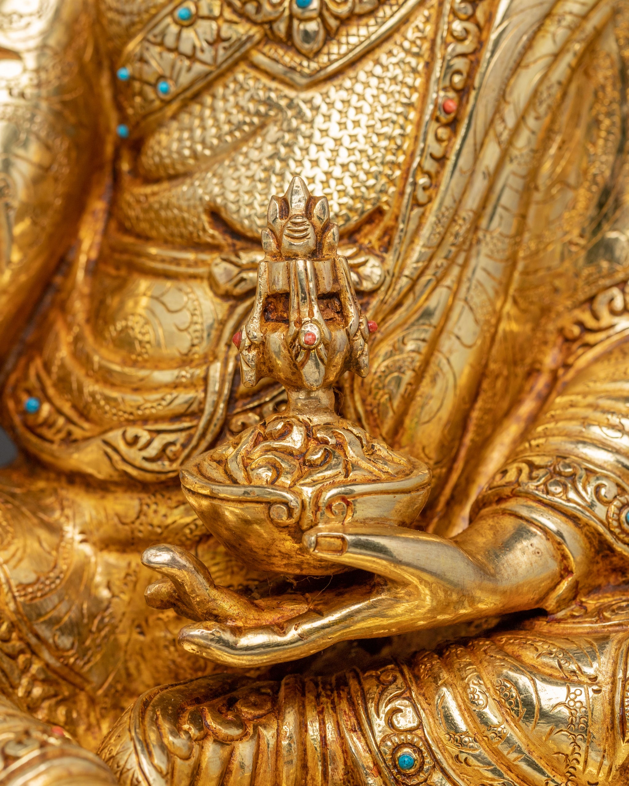 Guru Rinpoche Handcrafted Statue | 24k Gold Gilded Sculpture