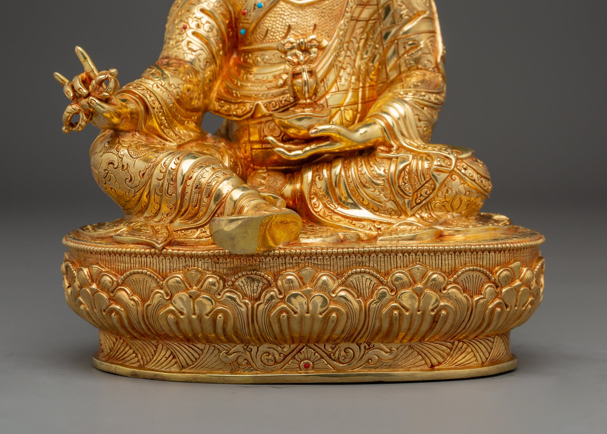 Statue of Guru Rinpoche, Protector of the Vajra Path | Gold Gilded Himalayan Icon