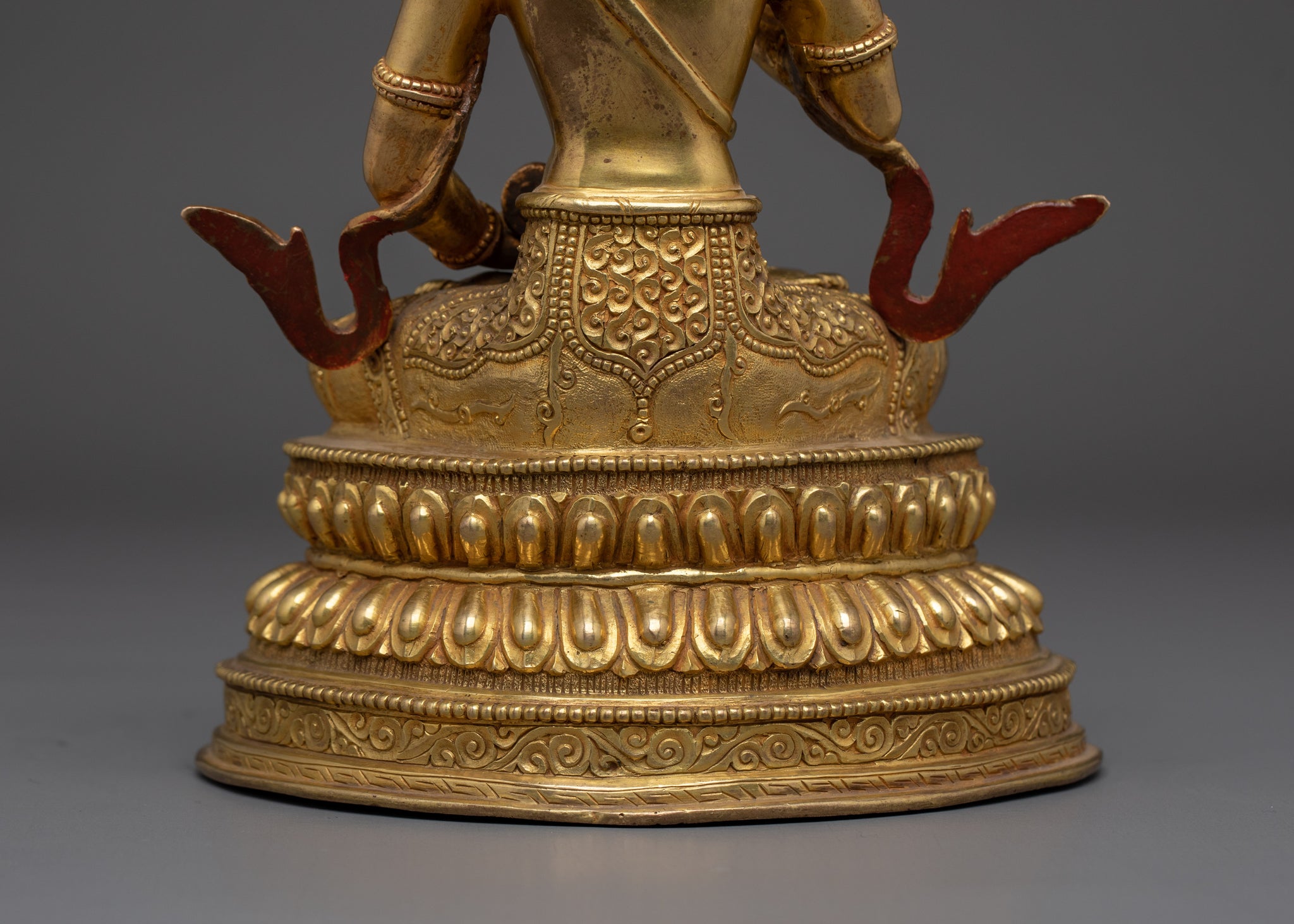 Vajrayogini is stunning. The details are amazing. It's easy to make out her facial expressions, skulls, feet, and the ring of fire around her. You can tell she's handmade. There is a consecration hole in her back.