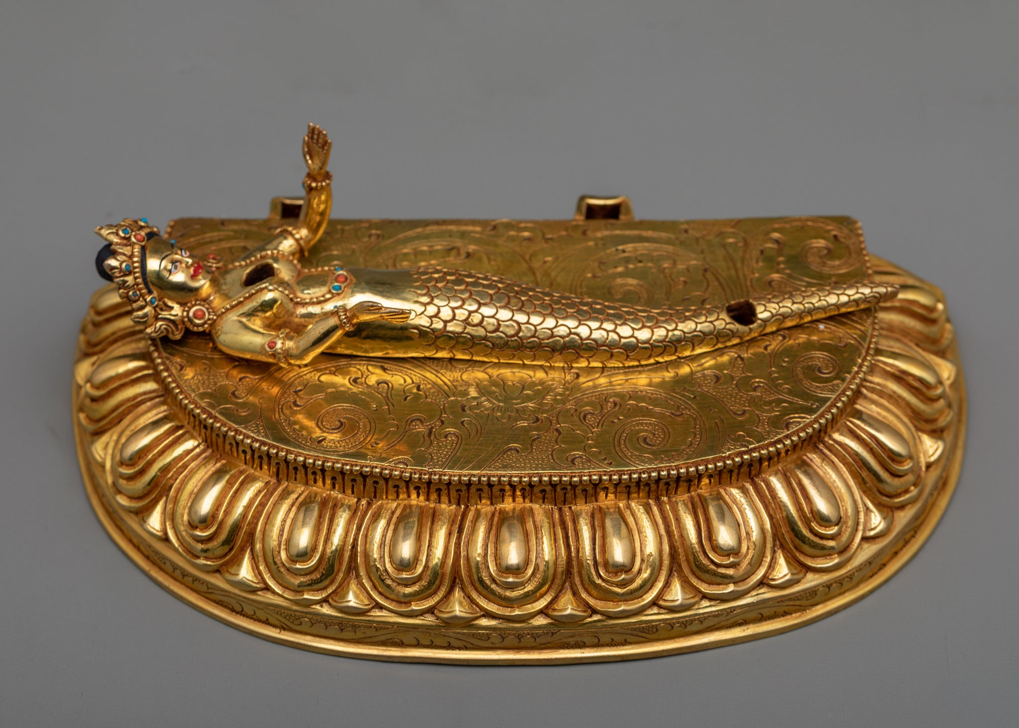 Vajrayogini is stunning. The details are amazing. It's easy to make out her facial expressions, skulls, feet, and the ring of fire around her. You can tell she's handmade. There is a consecration hole in her back.