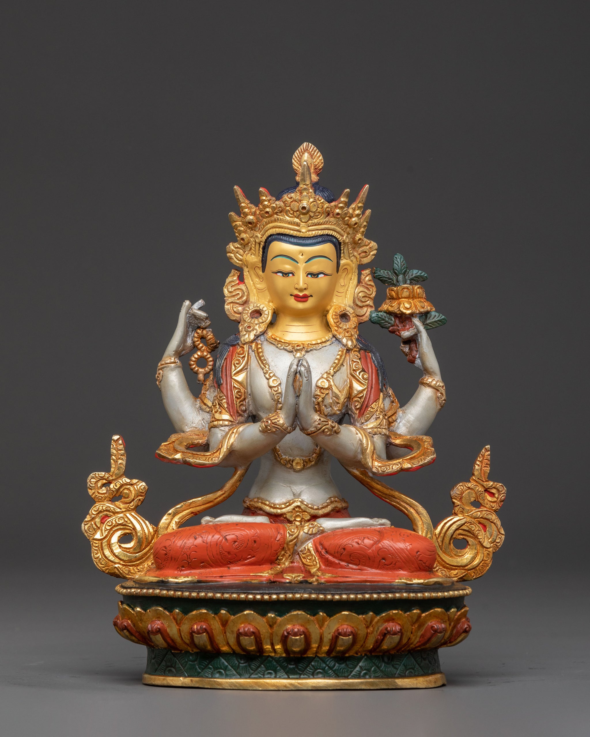 Handcrafted 24K Gold Gilded Chenrezig Statue | Serene Copper Art
