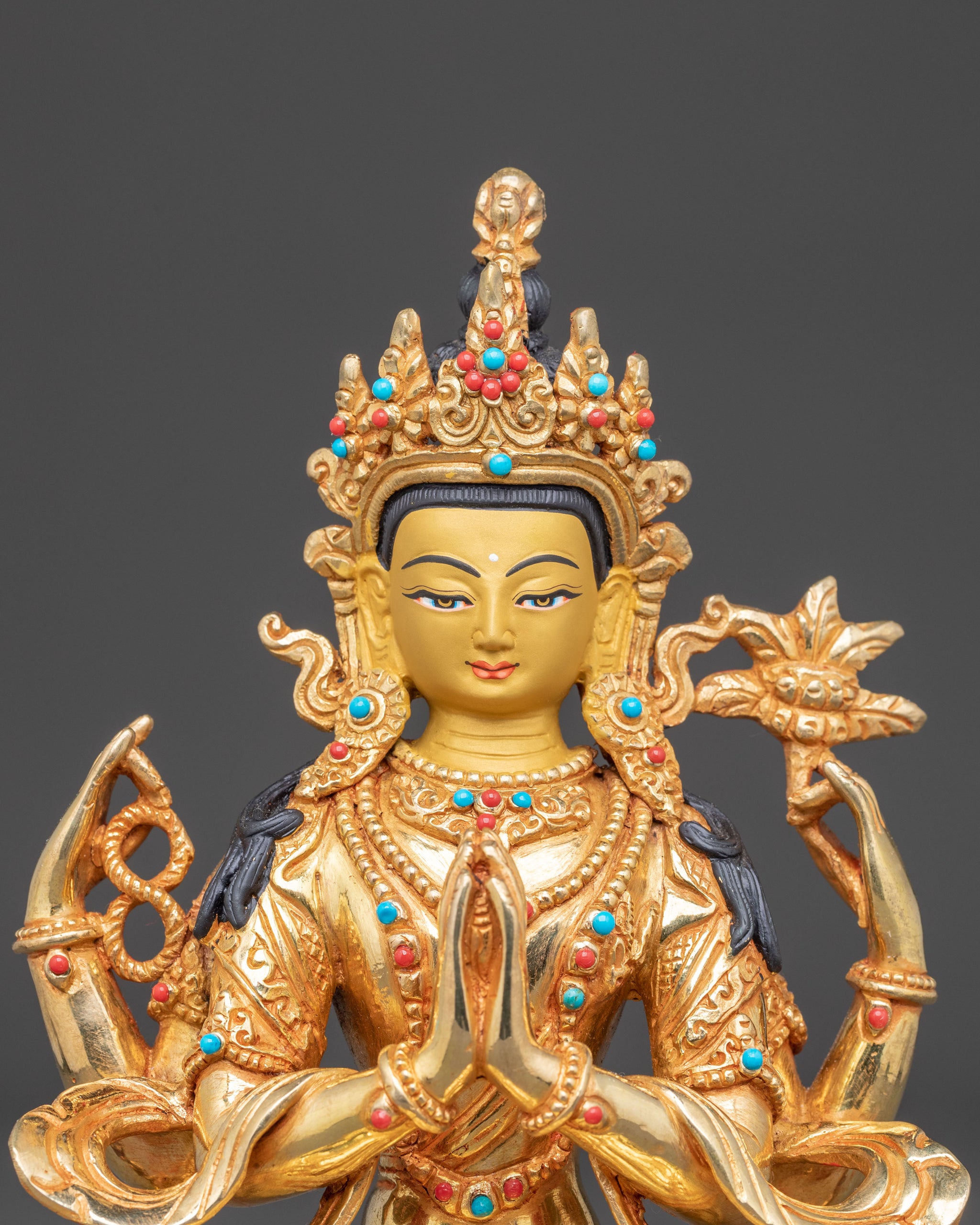 Himalayan Handcrafted Bodhisattva Chenrezig Sculpture for Meditation