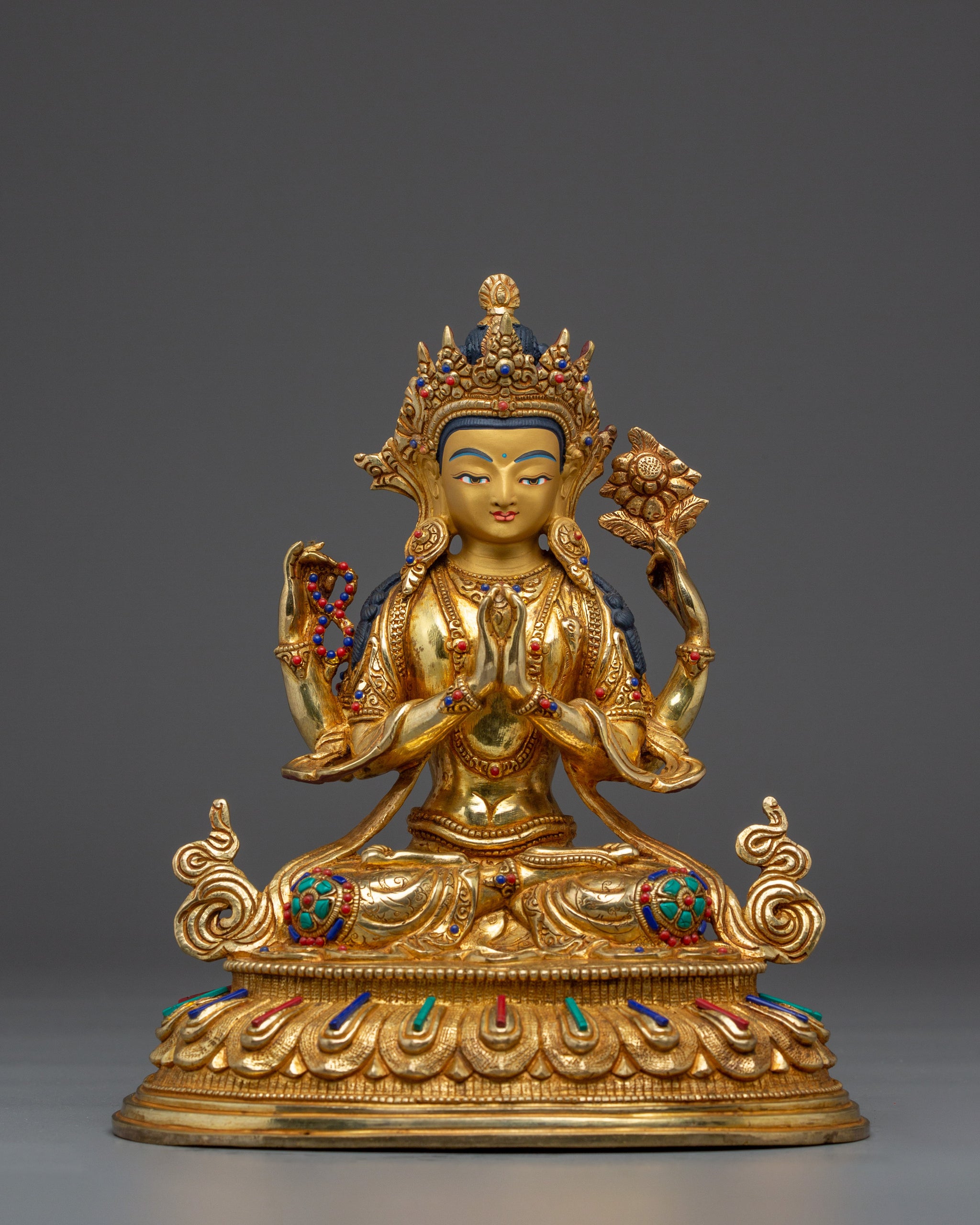 Handcrafted Chenrezig Copper Artwork | Meditation and Spiritual Decor