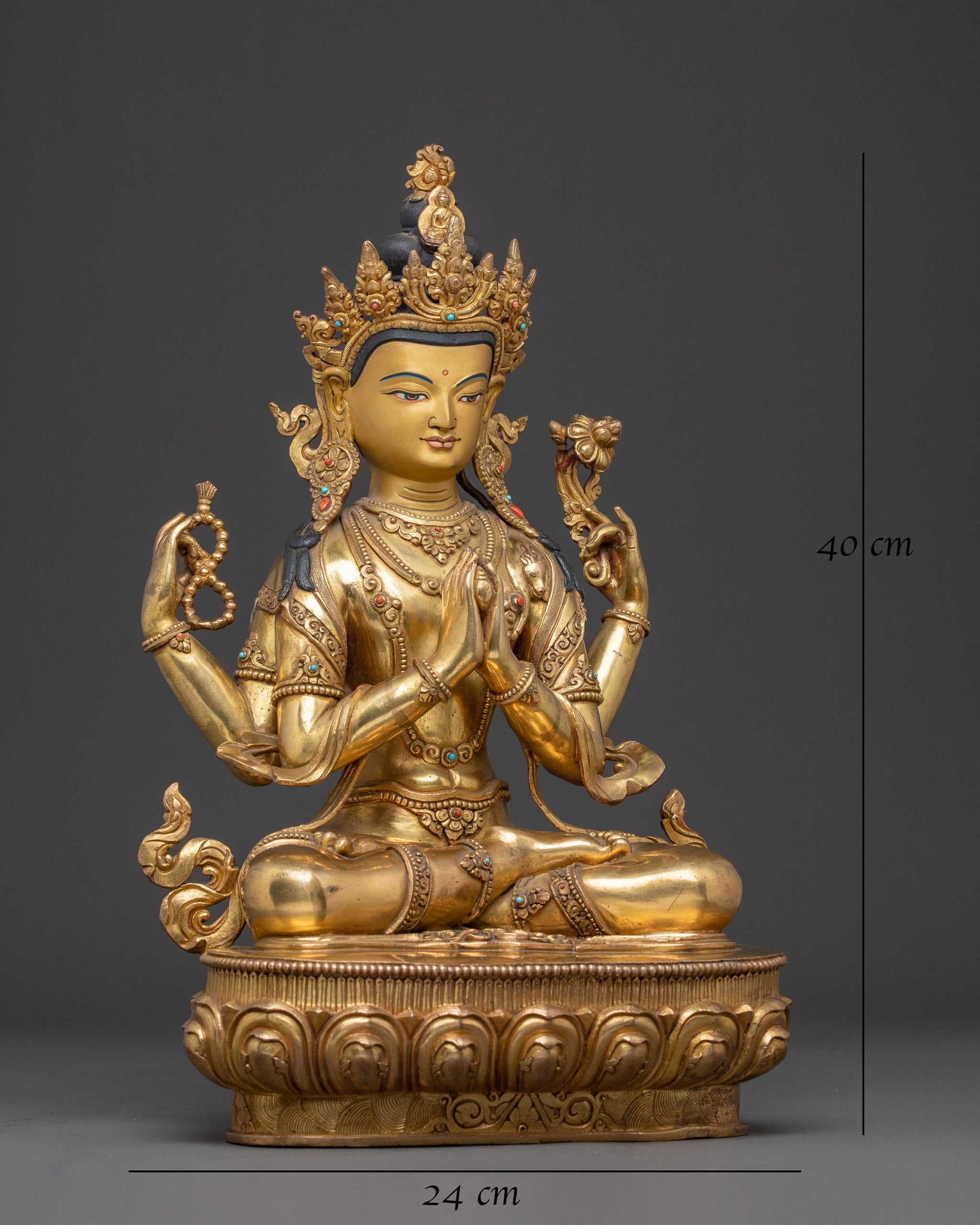 Golden Handcrafted Chenrezig Statue | Perfect for Altar or Meditation Space