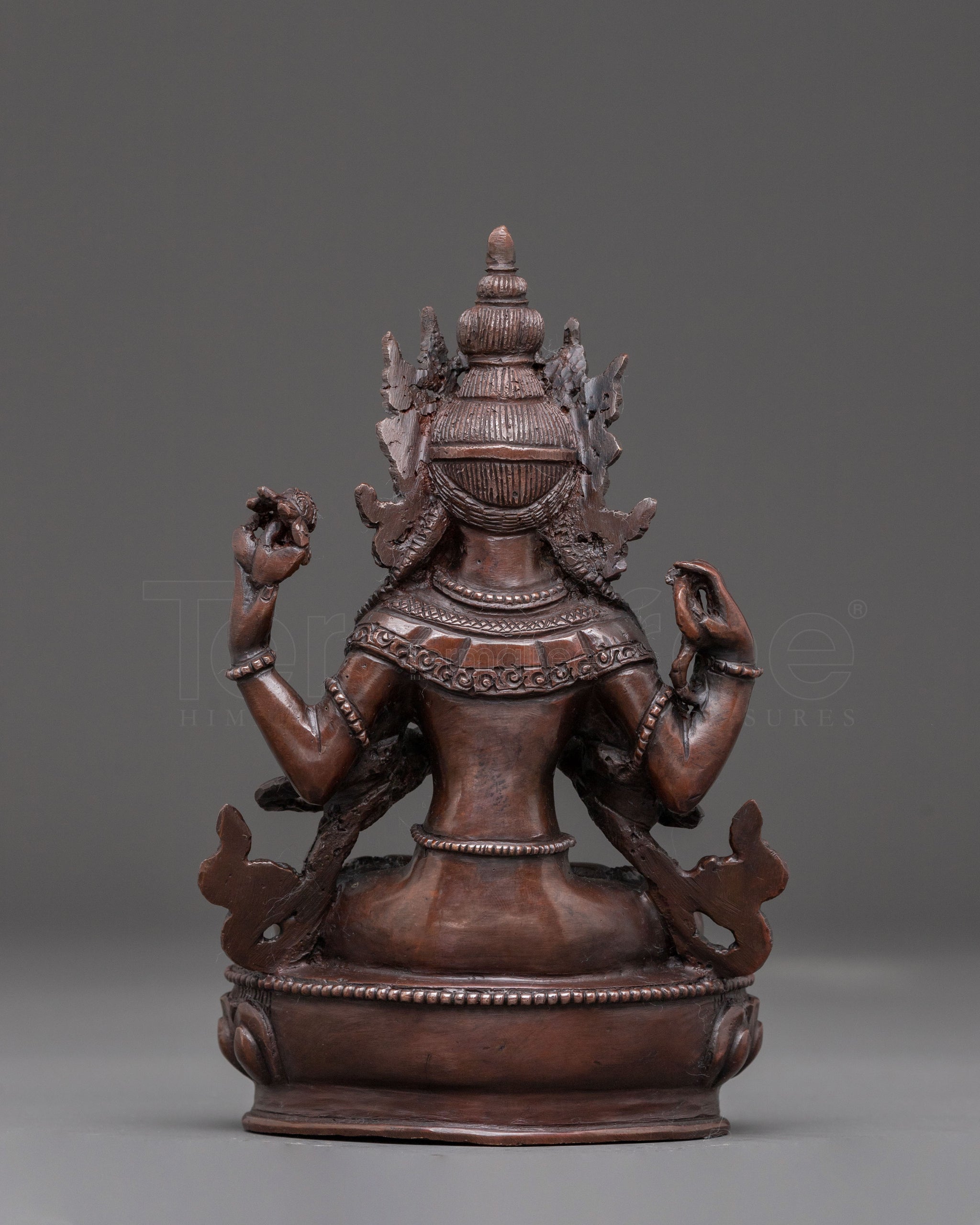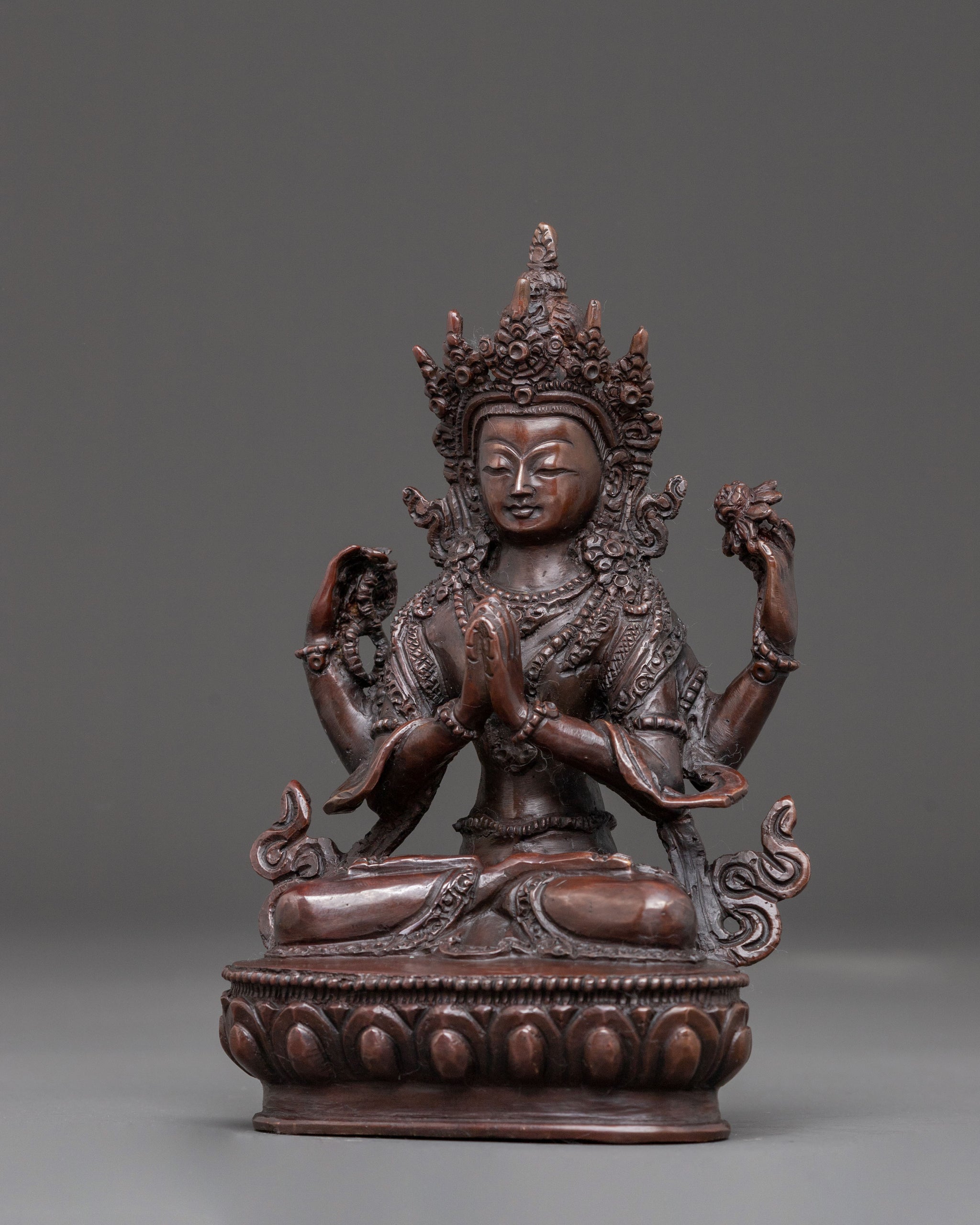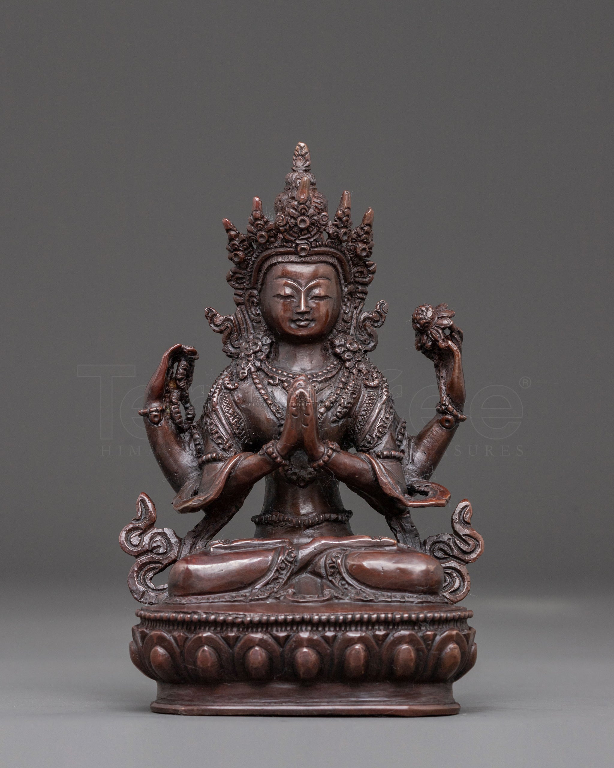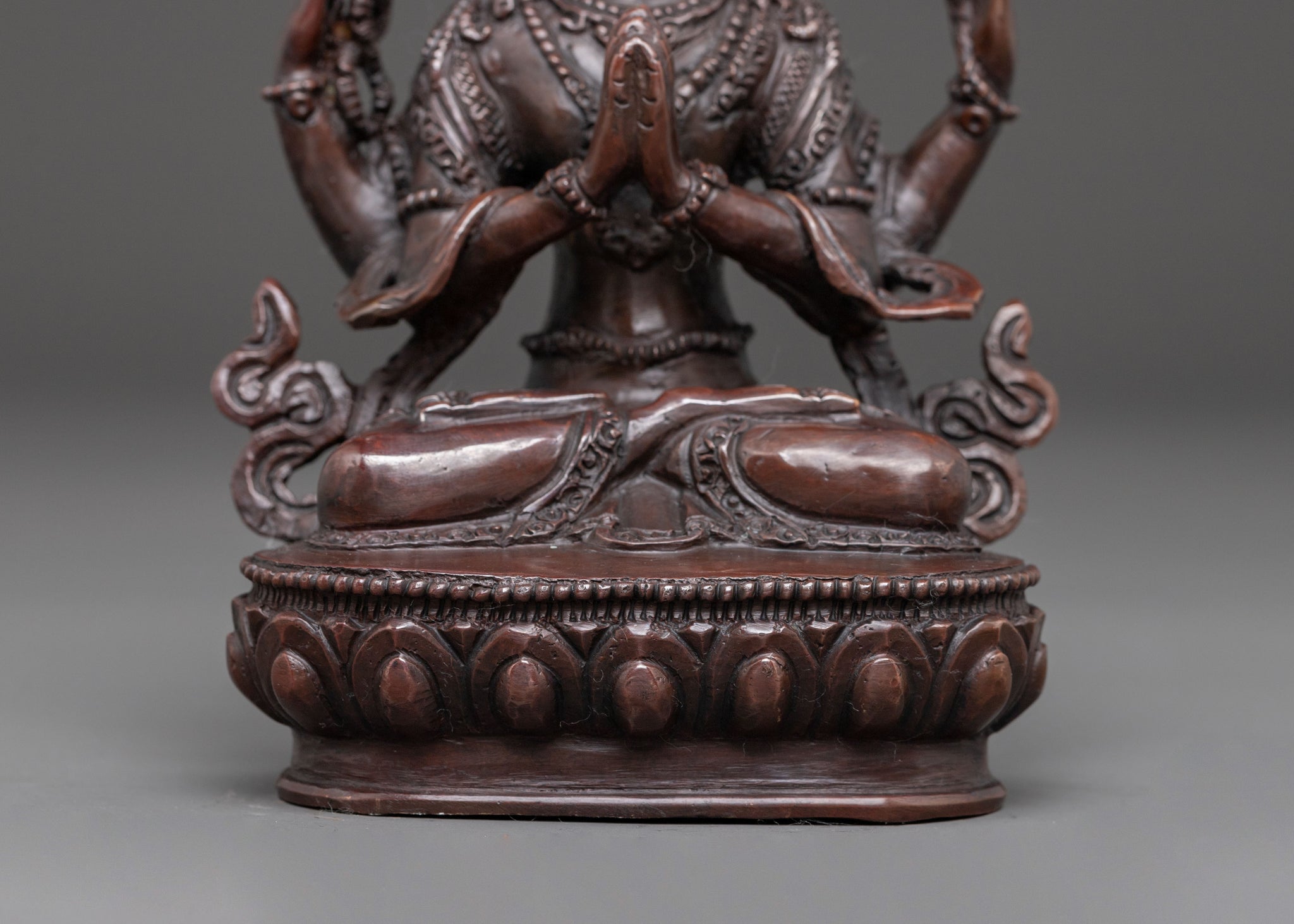 Handcrafted Chenrezig Oxidized Copper Statue | Meditation Altar Decor