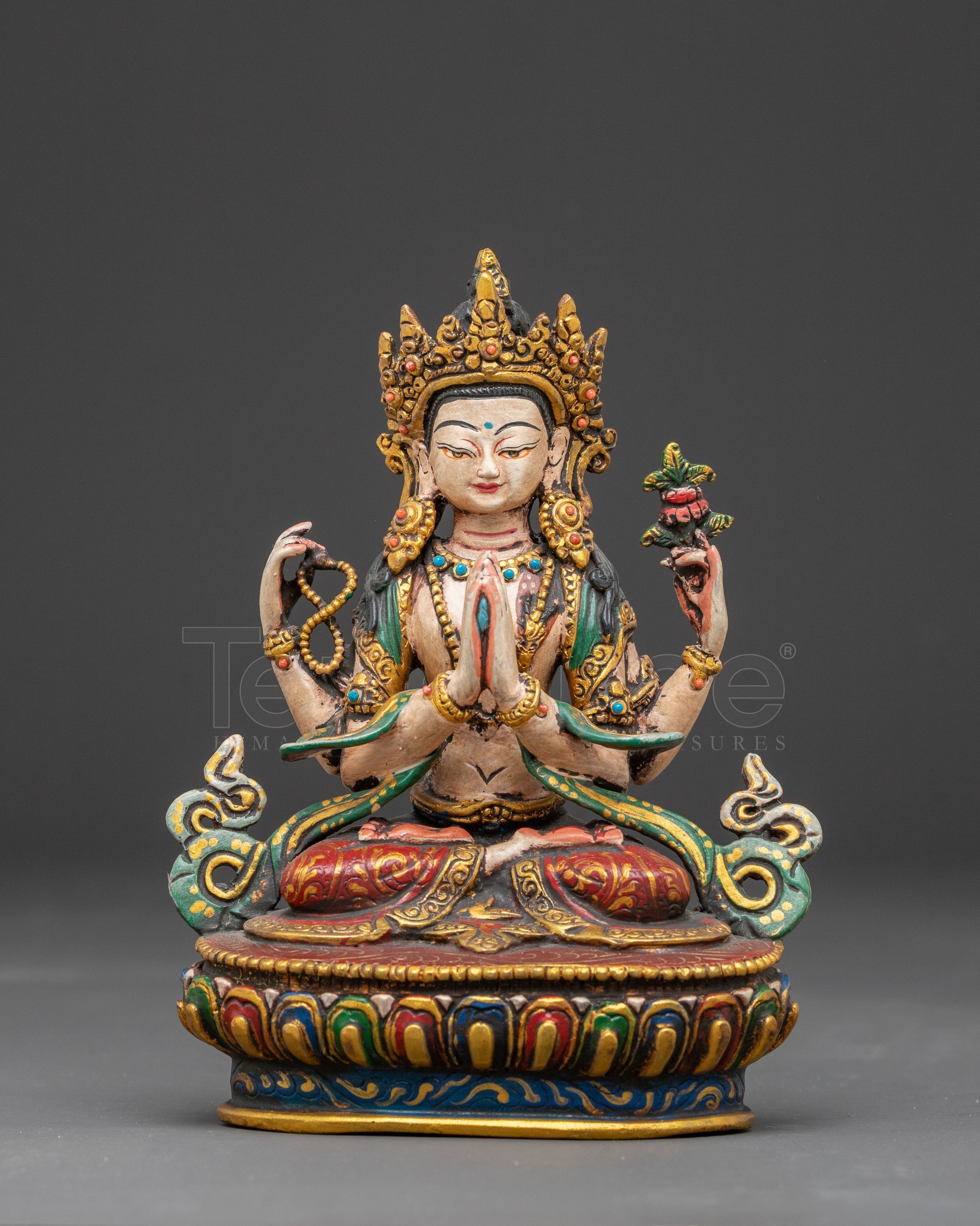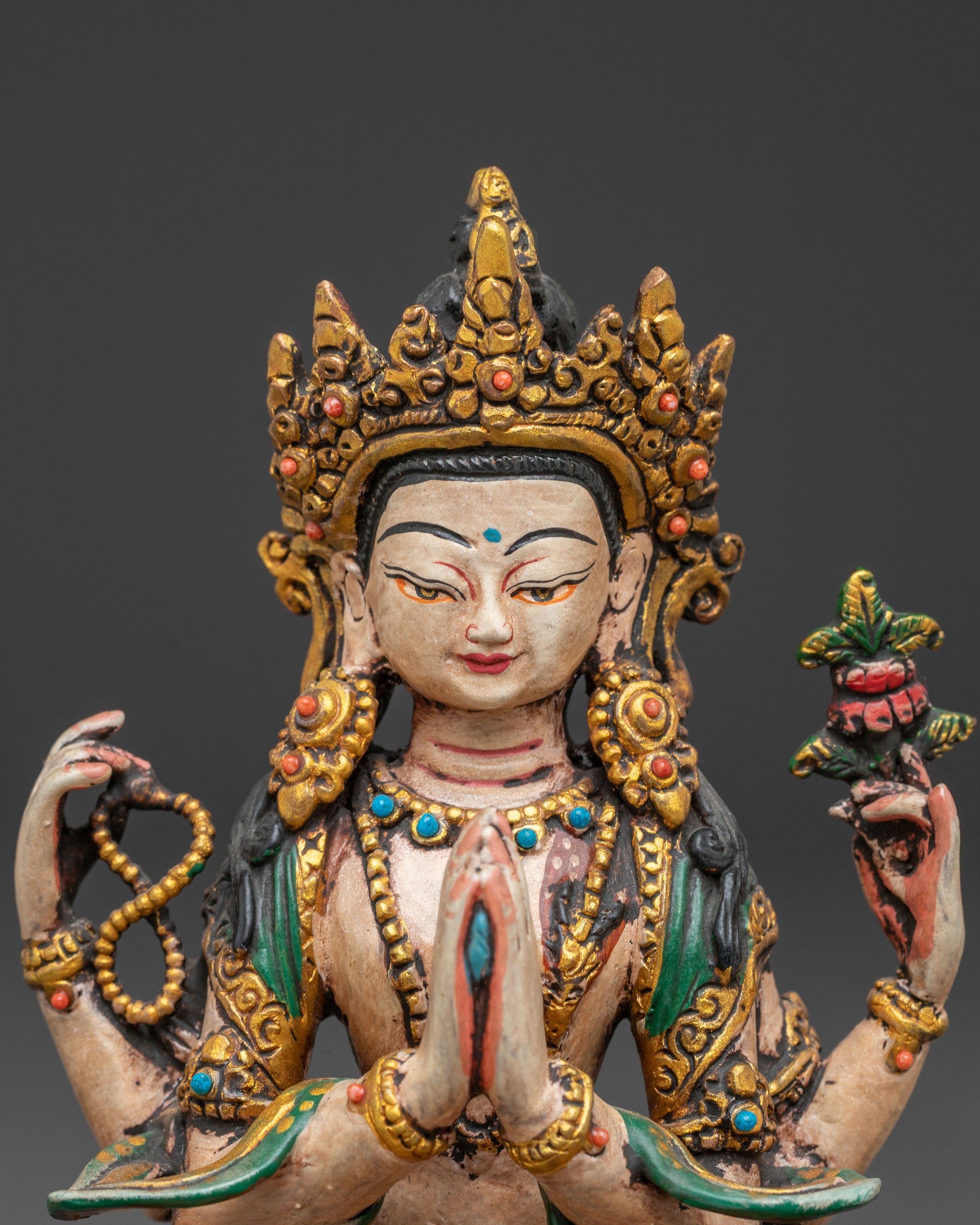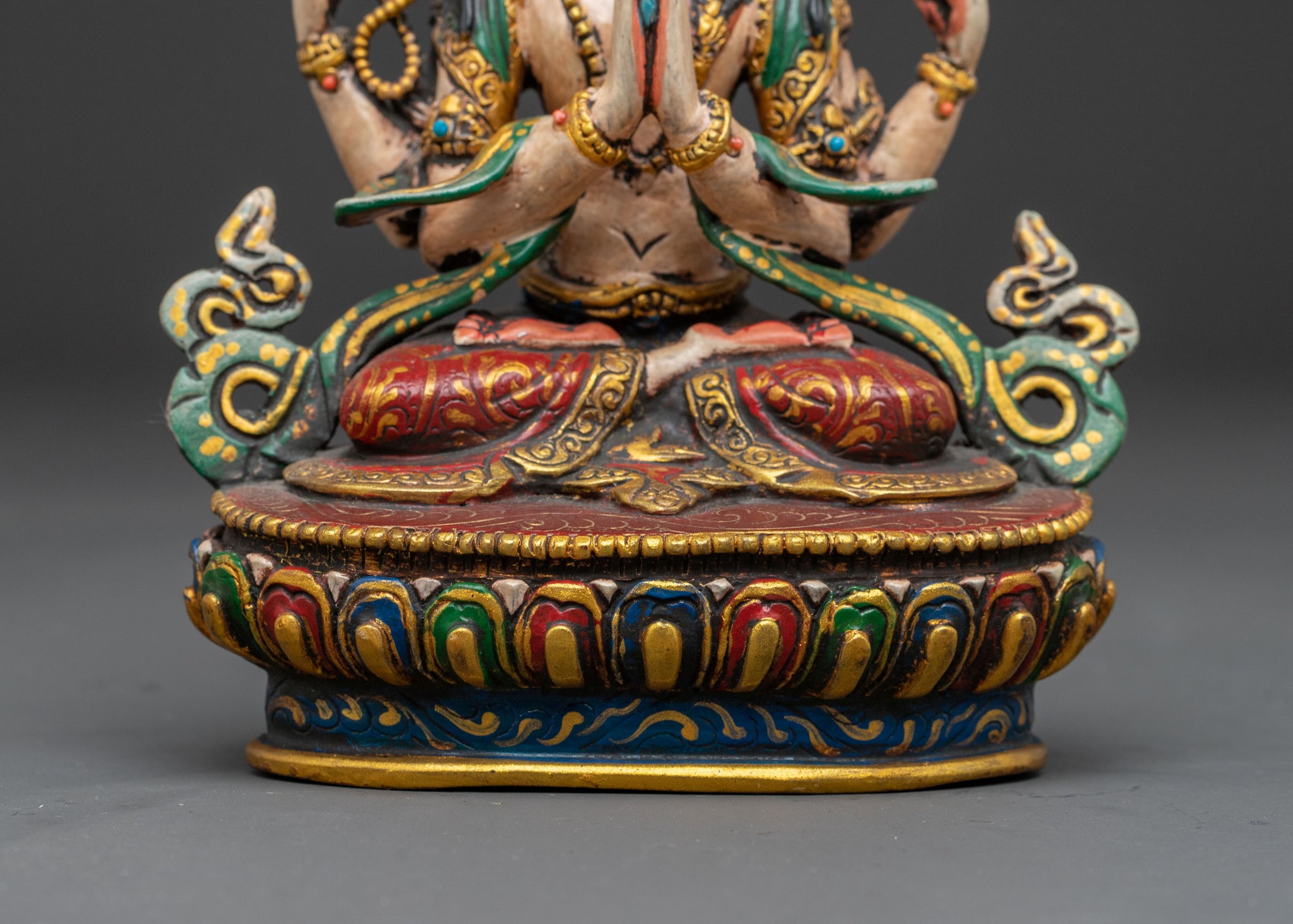 Handcrafted Copper Art of Four-Armed Chenrezig | Avalokiteshvara Statue