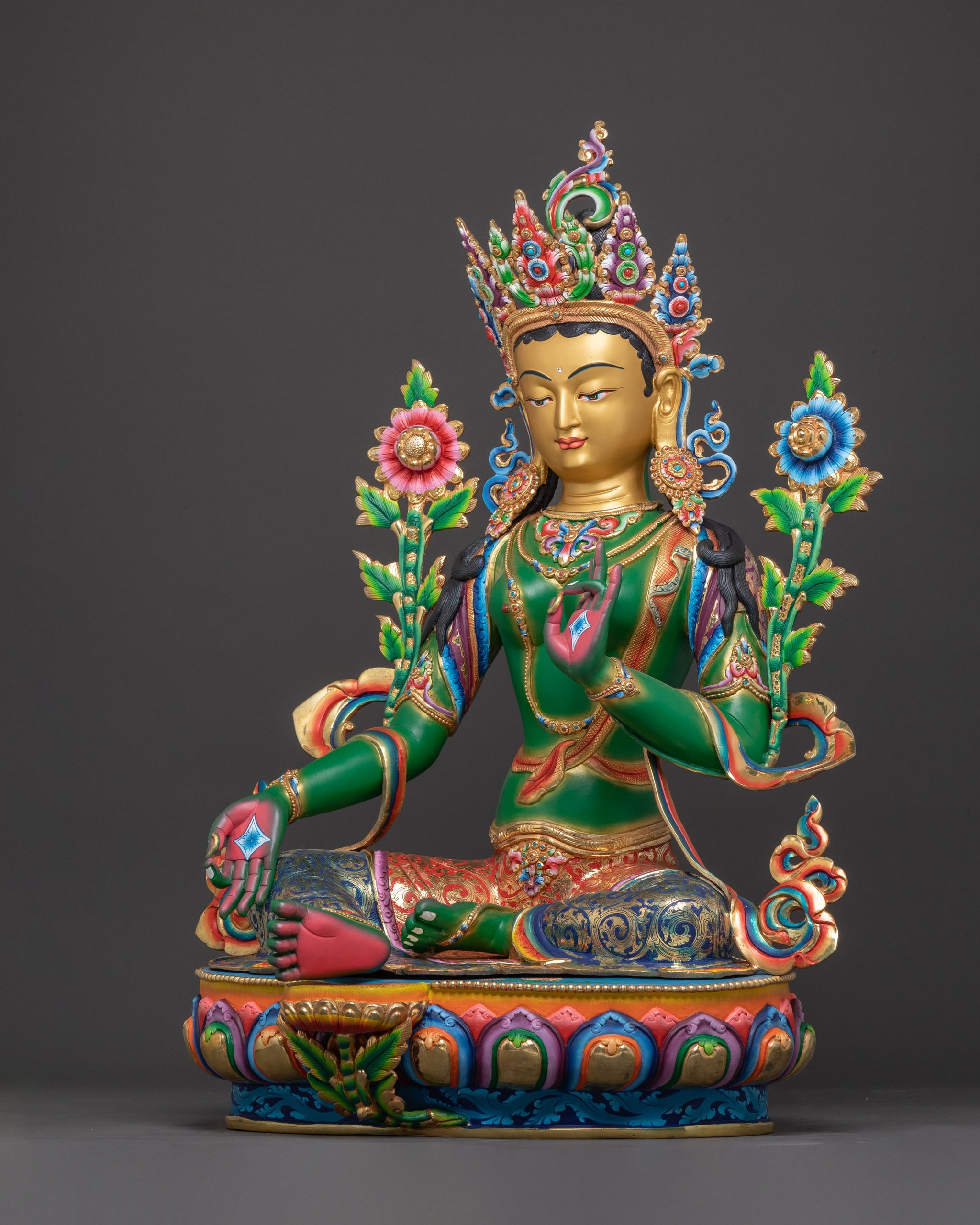 Handcrafted Divine Green Tara Statue – 24K Gilded Masterpiece