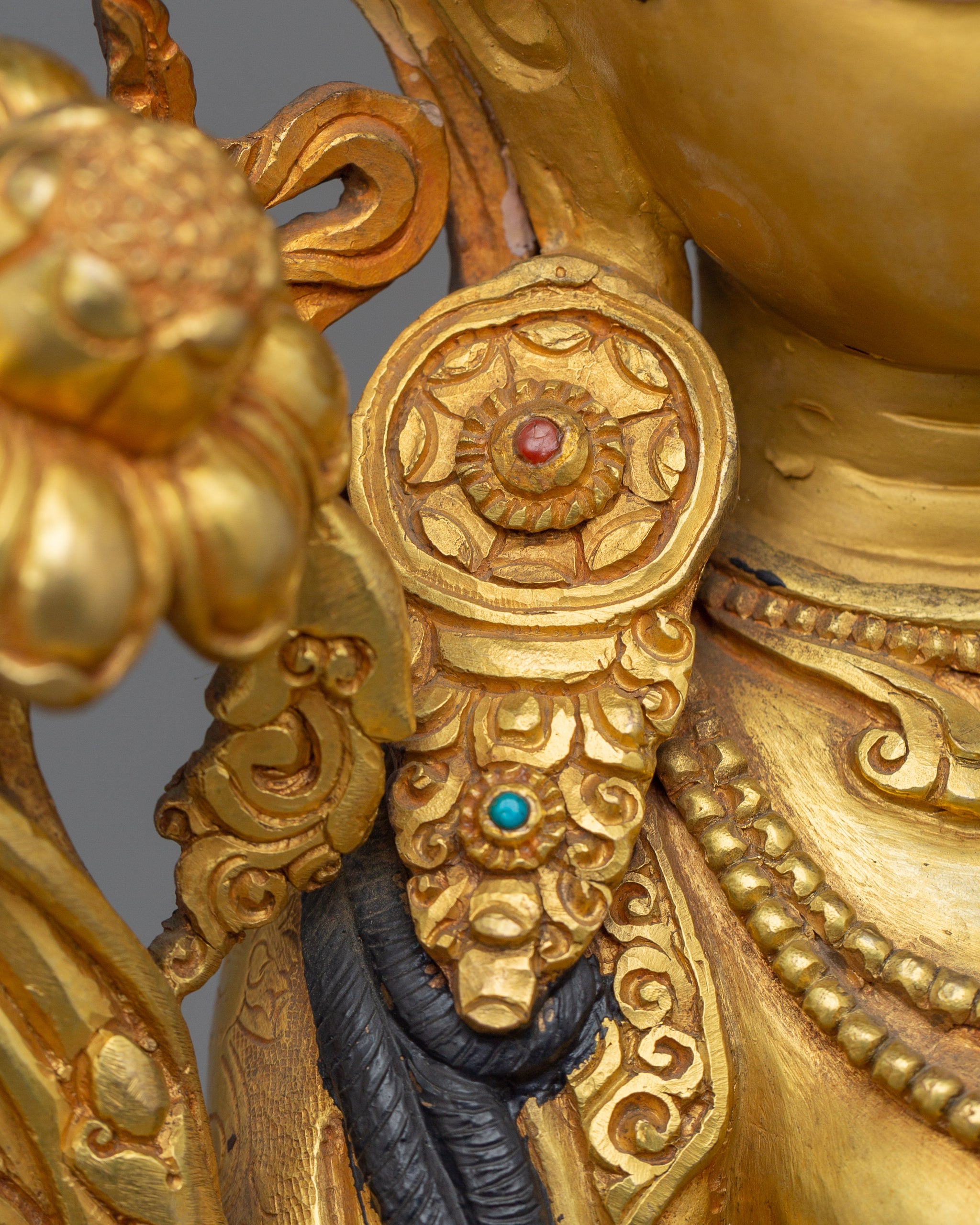 Vajrayogini is stunning. The details are amazing. It's easy to make out her facial expressions, skulls, feet, and the ring of fire around her. You can tell she's handmade. There is a consecration hole in her back.
