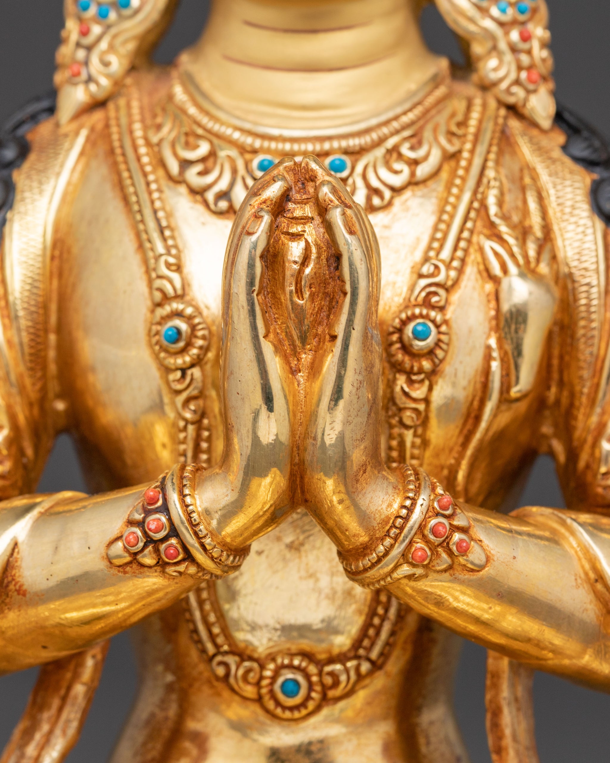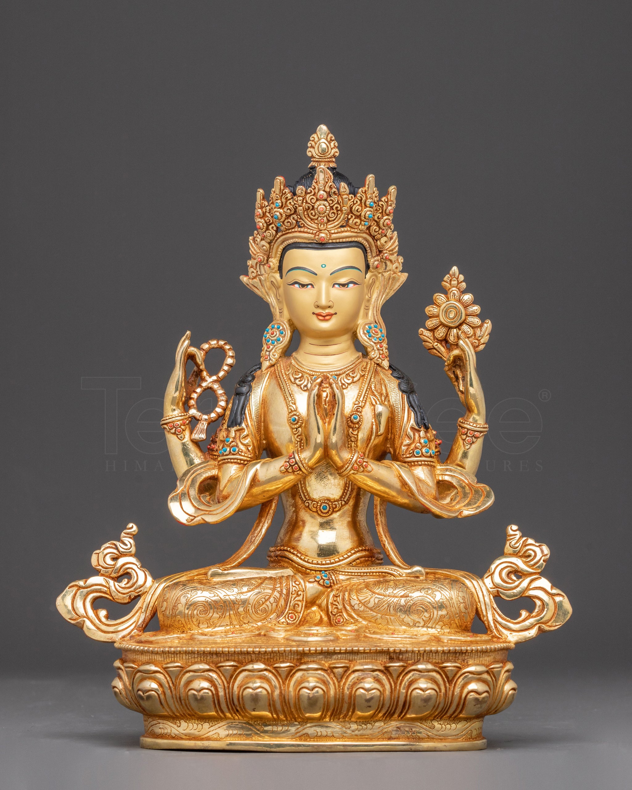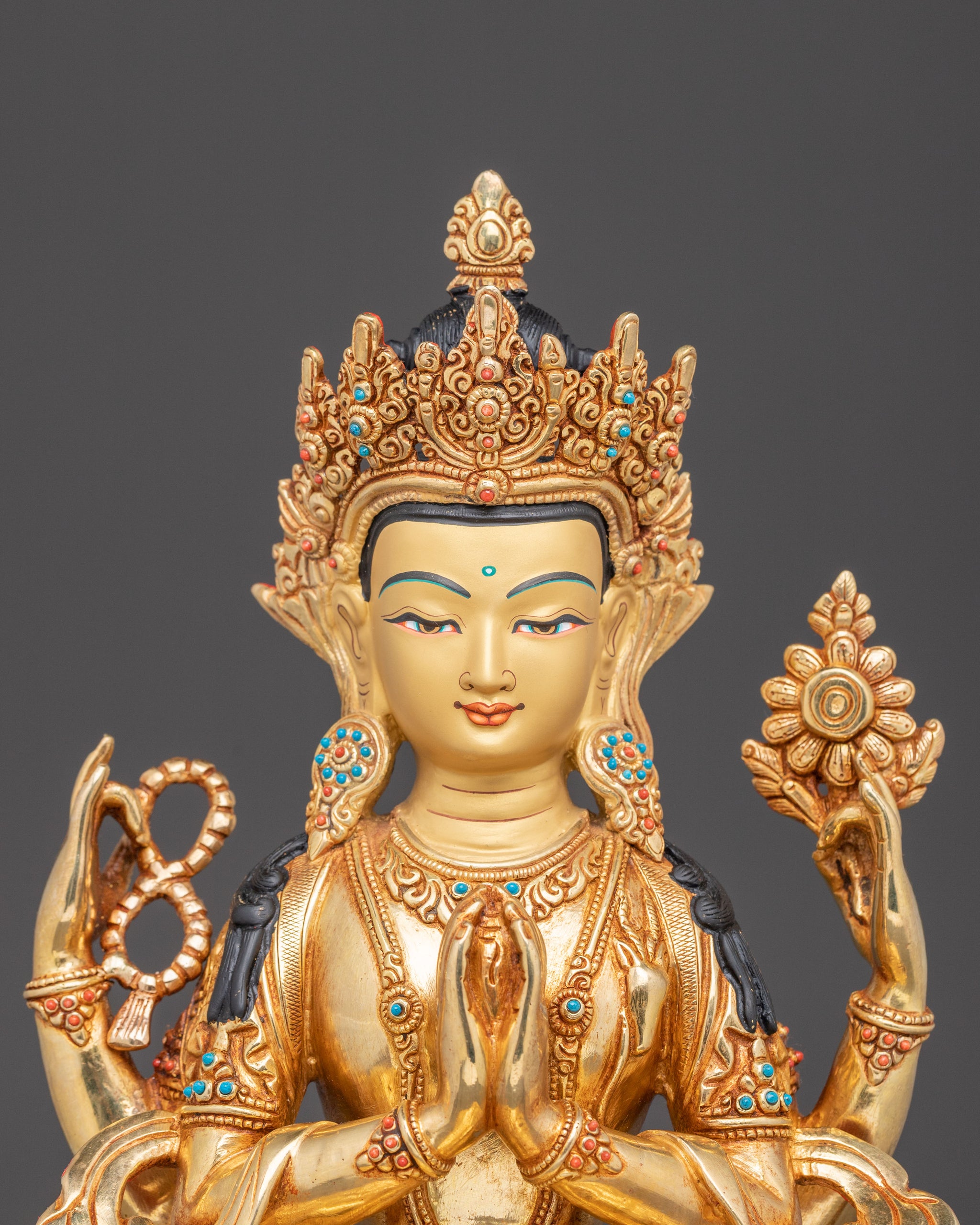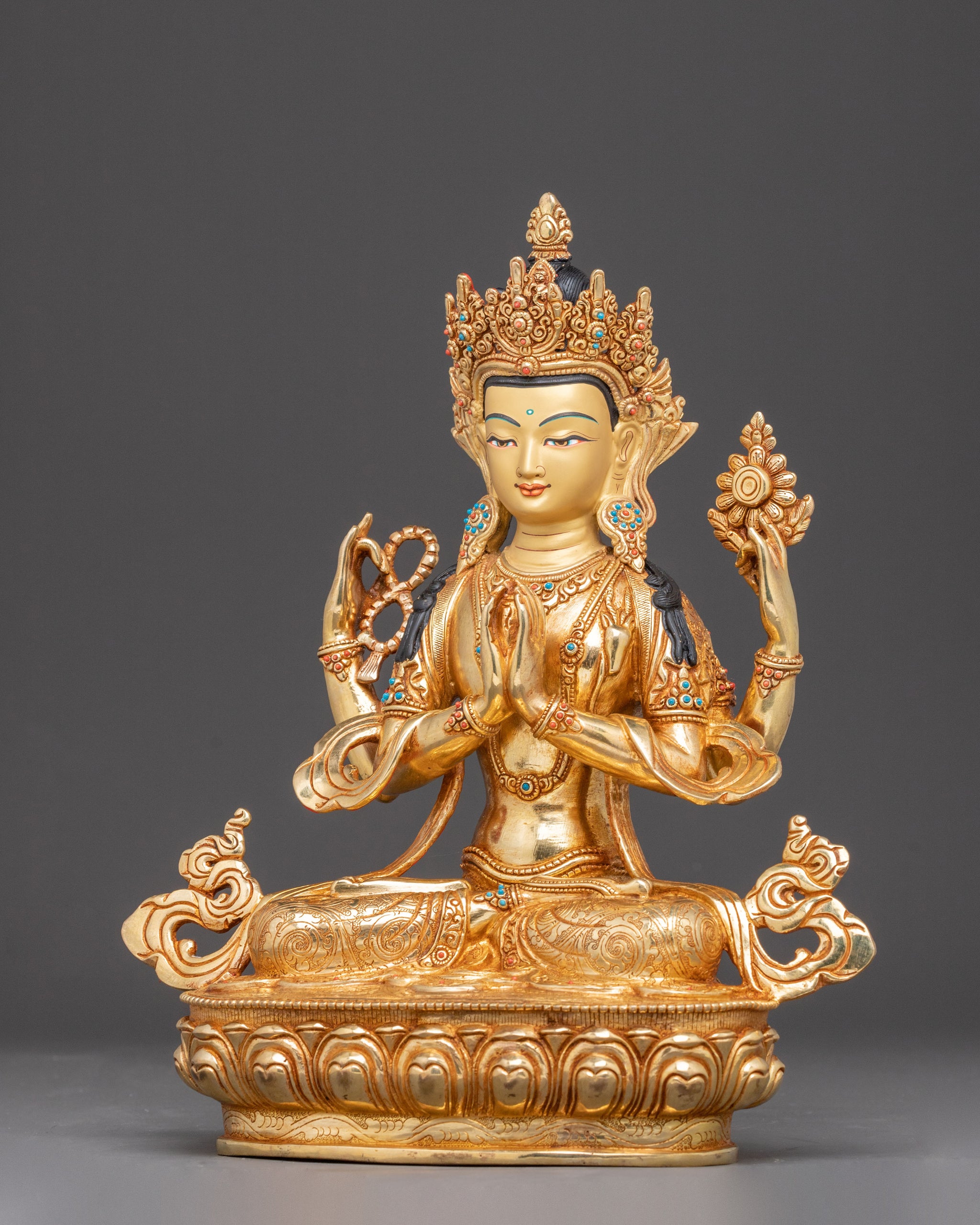 Handcrafted Golden Artwork of Four-Armed Chenrezig