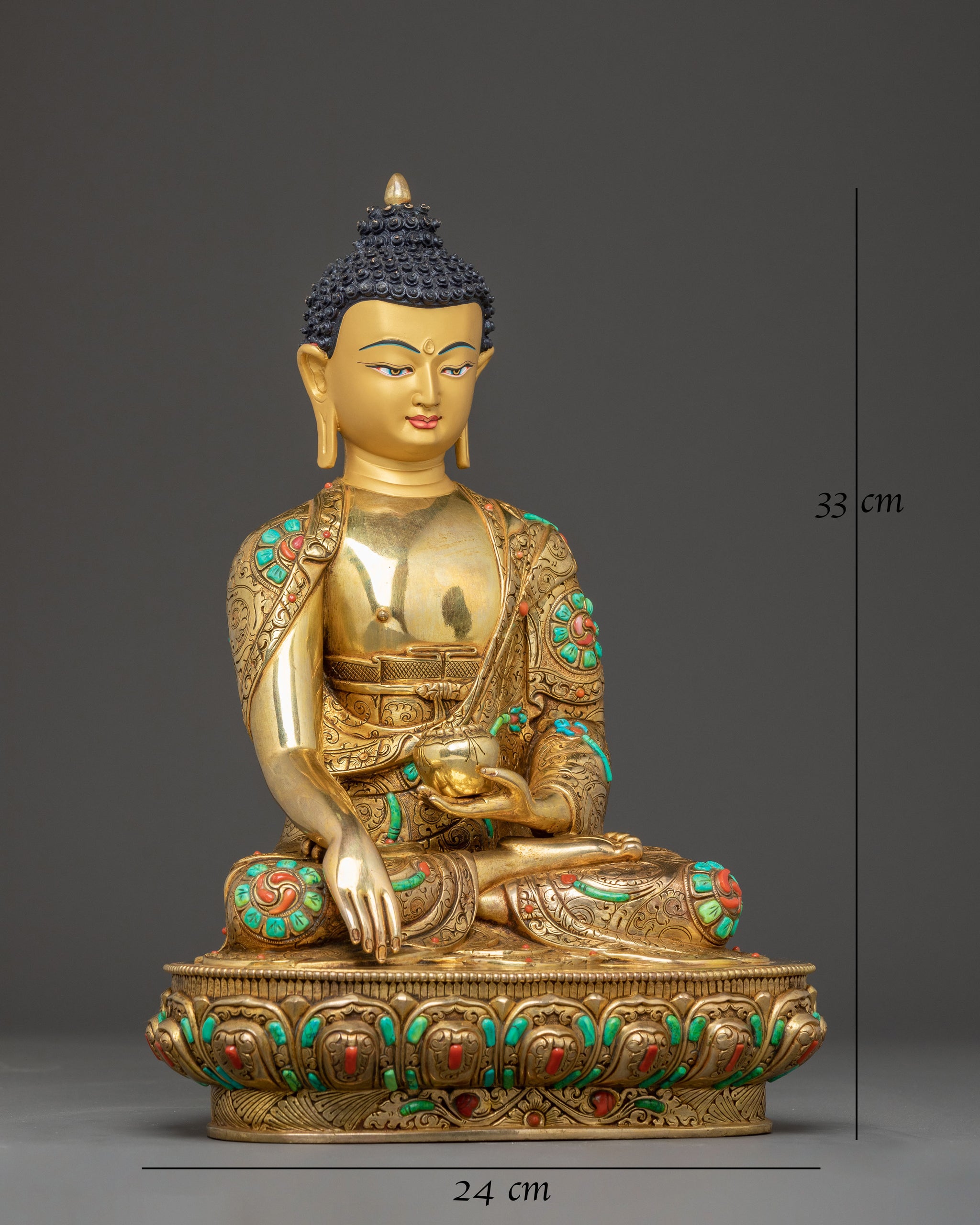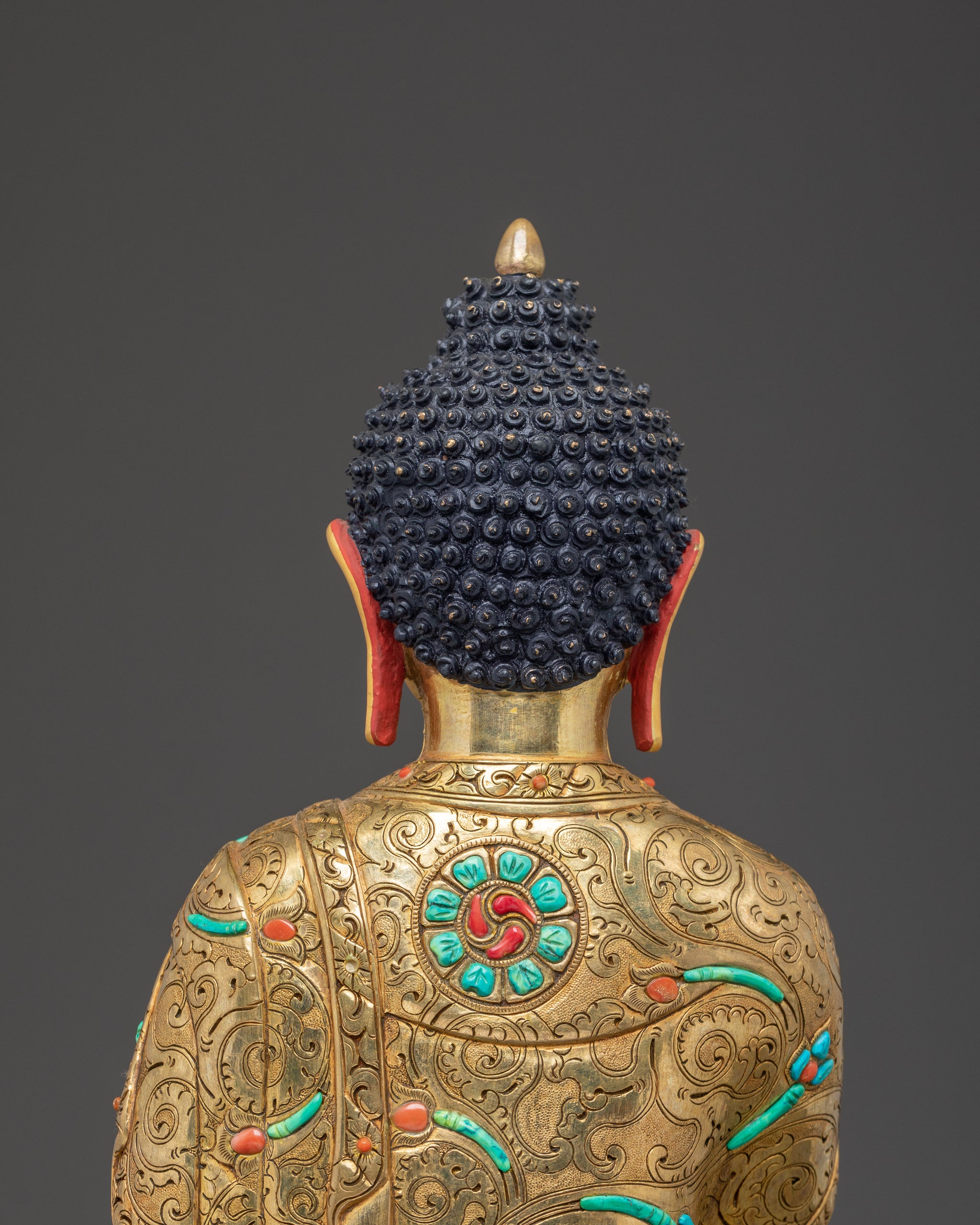 Invite the peaceful and wise presence of Shakyamuni Buddha into your space with this handcrafted golden statue. Made by skilled artisans in Patan, Nepal, a city known for its exceptional metalwork, this statue is more than just a decorative item—it is a spiritual symbol that embodies the essence of enlightenment and compassion.