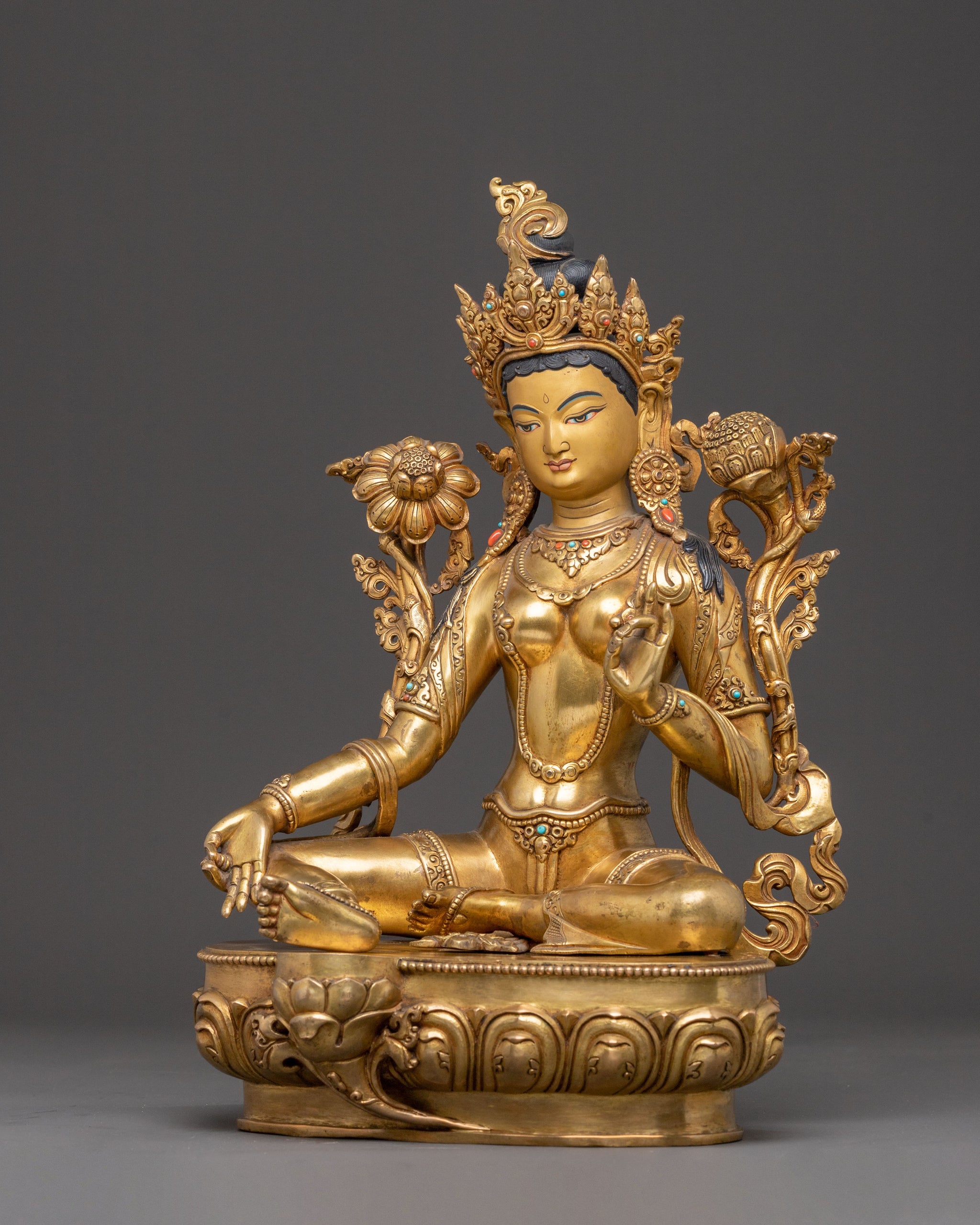 Handcrafted Green Tara Golden Statue | Compassionate Protector
