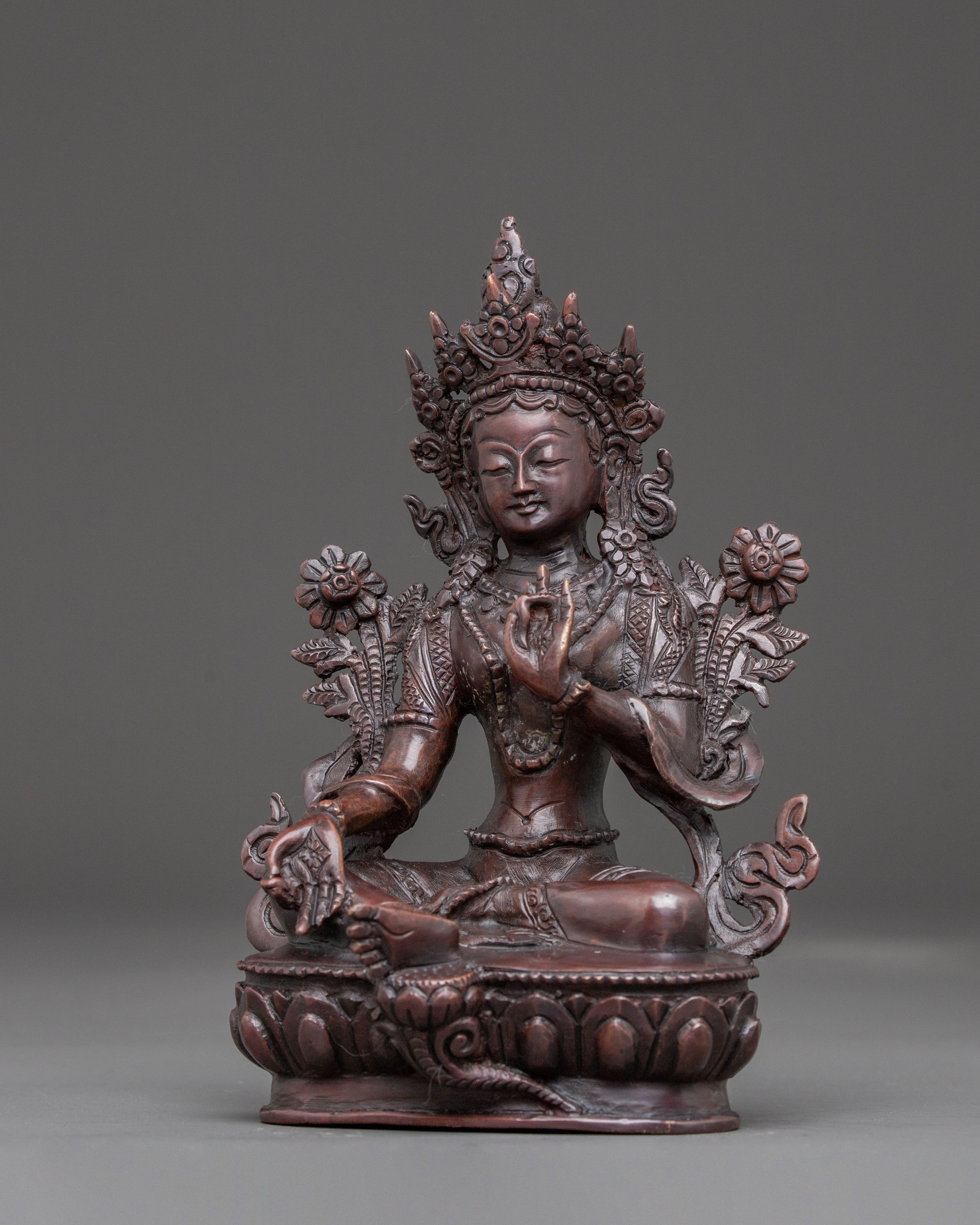 Handcrafted Green Tara Oxidised Statue | Feminine Energy of Compassion