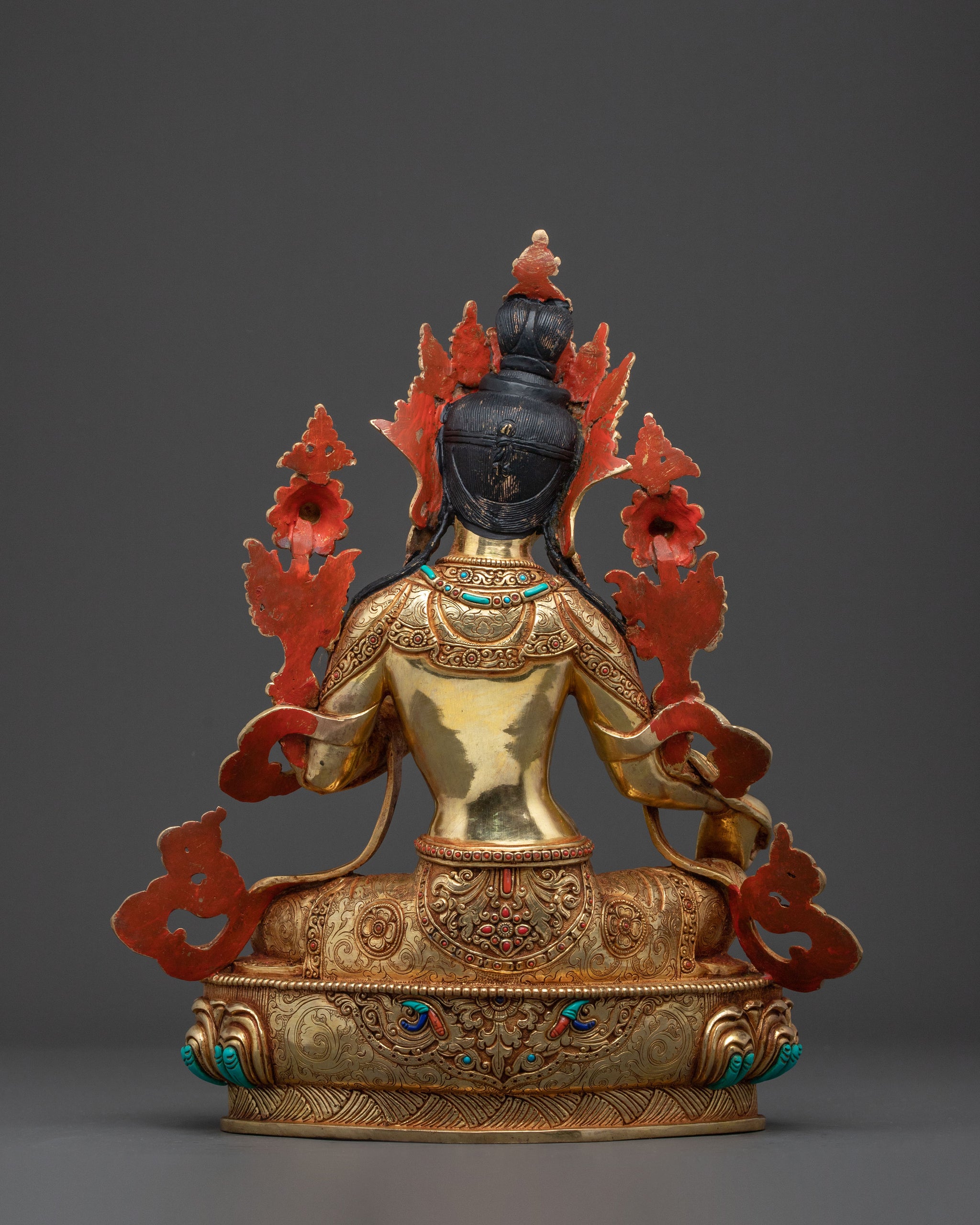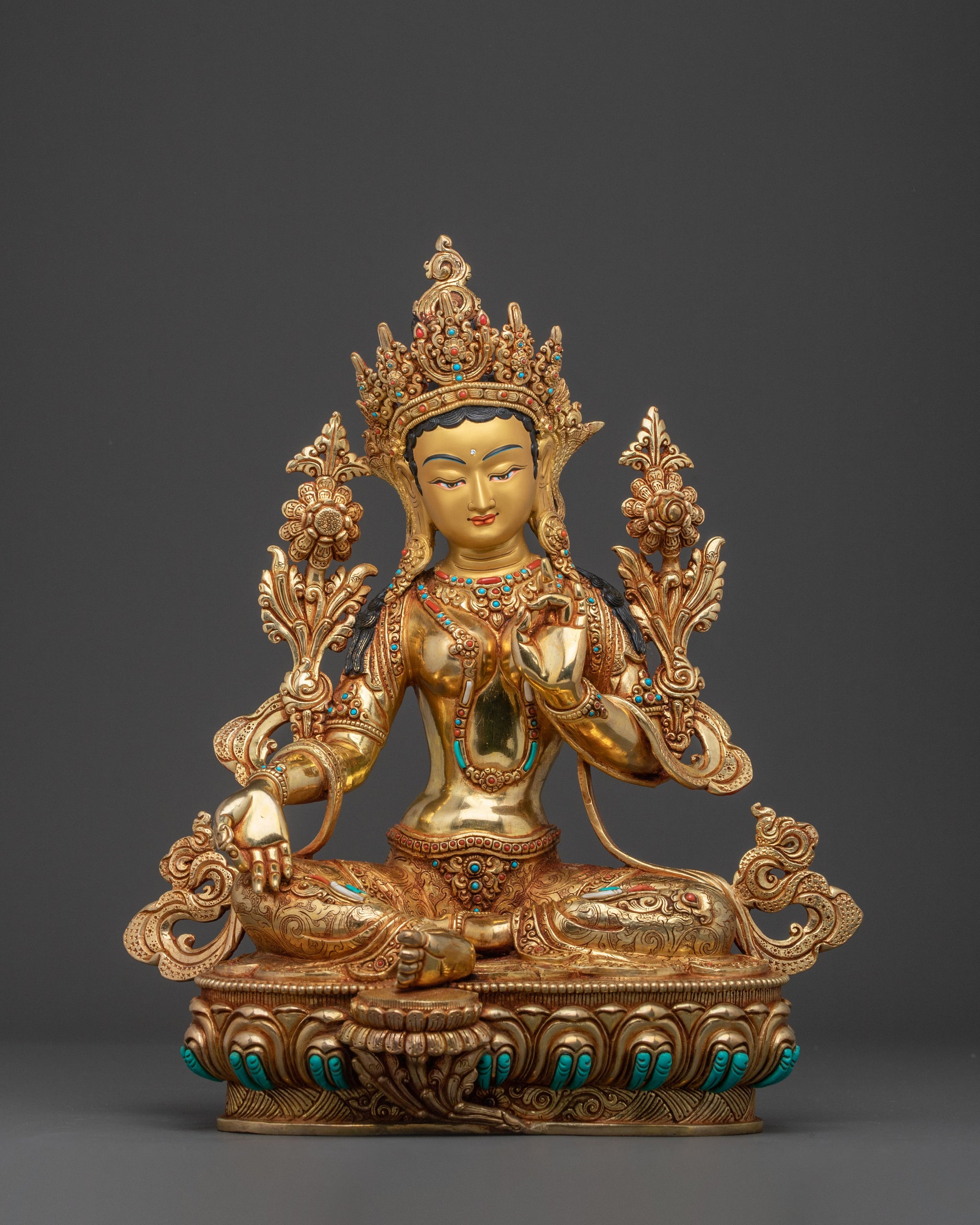 Handcrafted Green Tara Spiritual Statue | Exquisite 24K Gold Gilded