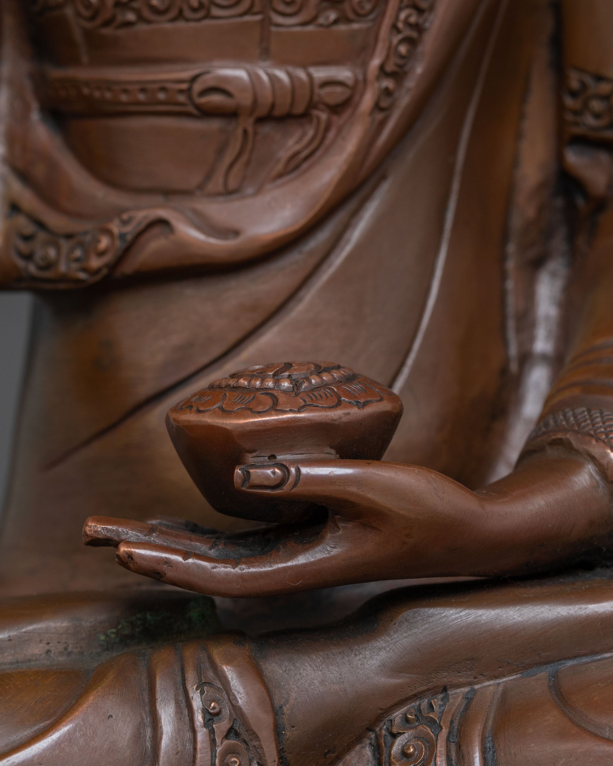I just received my Amitayus copper statue, and I couldn't be more pleased. My appreciation goes out to the skilled artists at Termatree, and to Nima in particular, who helped me with the ordering process, taking care of a few special requests of mine. She was such a pleasure to work with. It was packaged with care, and arrived sooner than expected. He occupies a prominent position in my home, instilling a sense of peace within me. I couldn't be happier. Thanks again, Termatree!