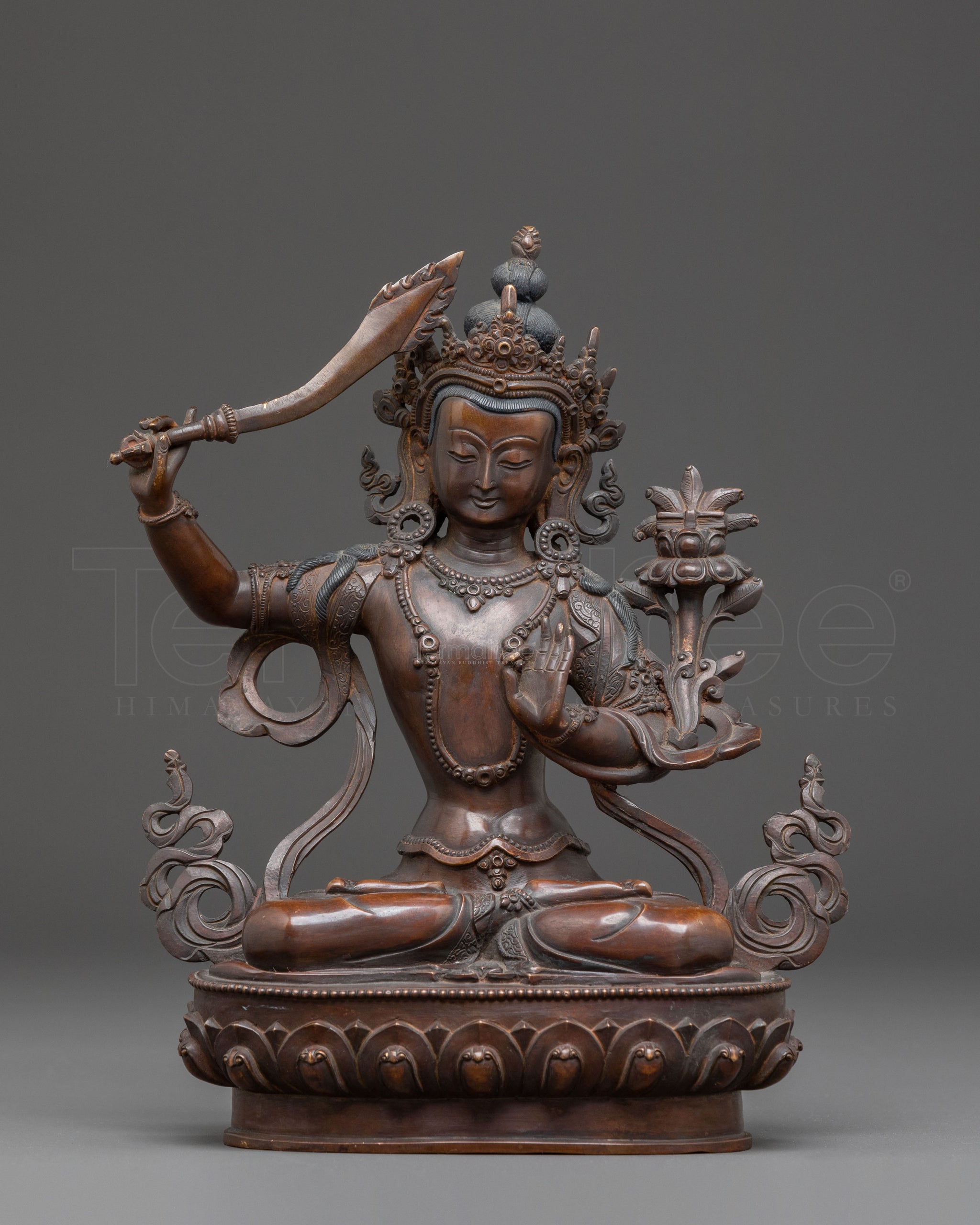 Handcrafted Manjushri Statue of Wisdom | Antique Copper Finish