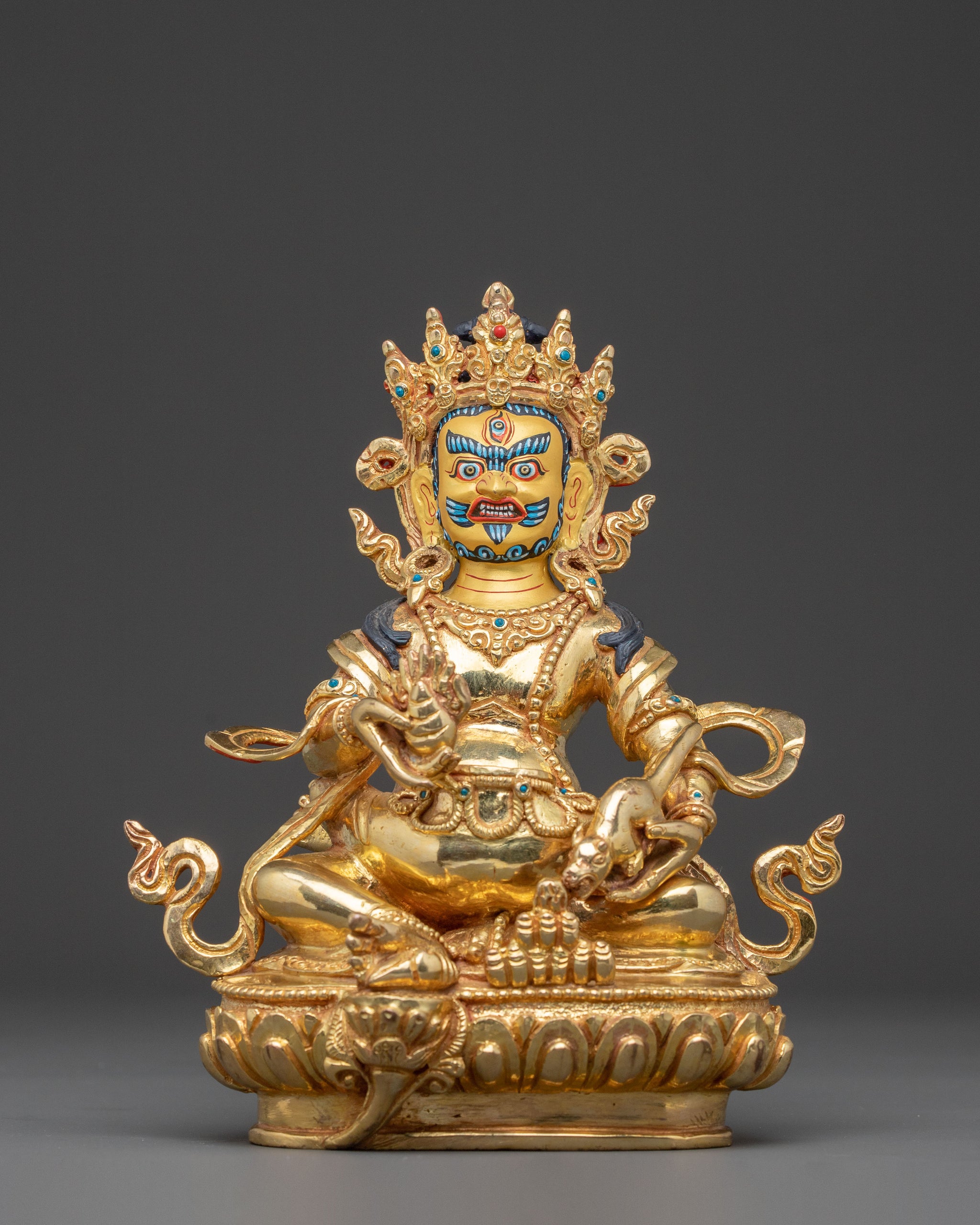 Handcrafted Statue of Red Dzambhala: Tibetan Wealth Deity,
