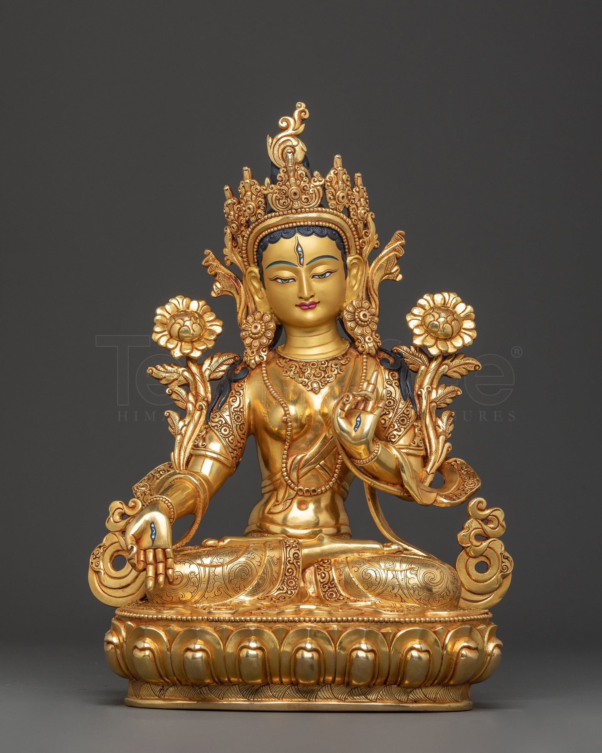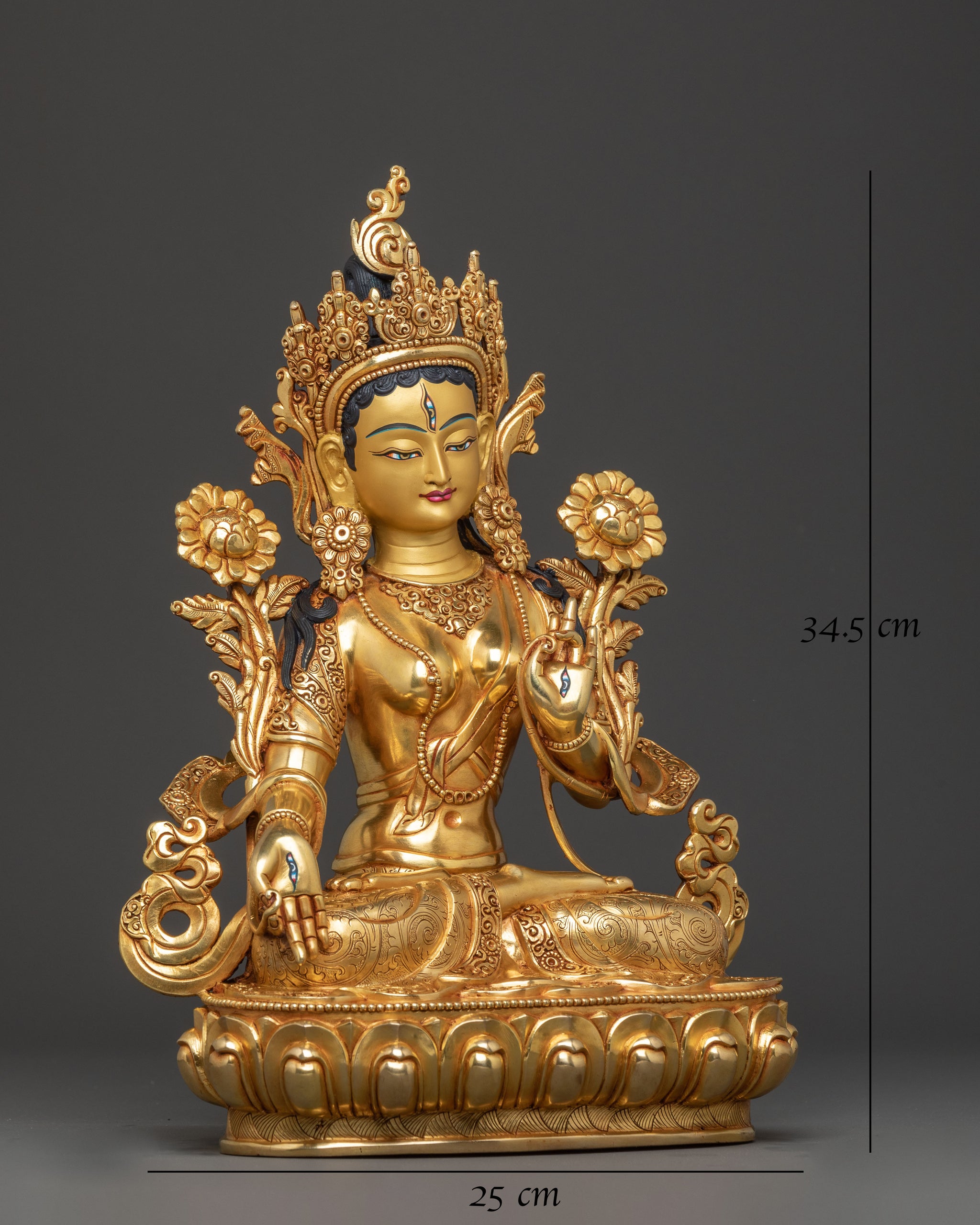 White Tara Meditation Deity Statue: 24K Gold Gilded Masterpiece