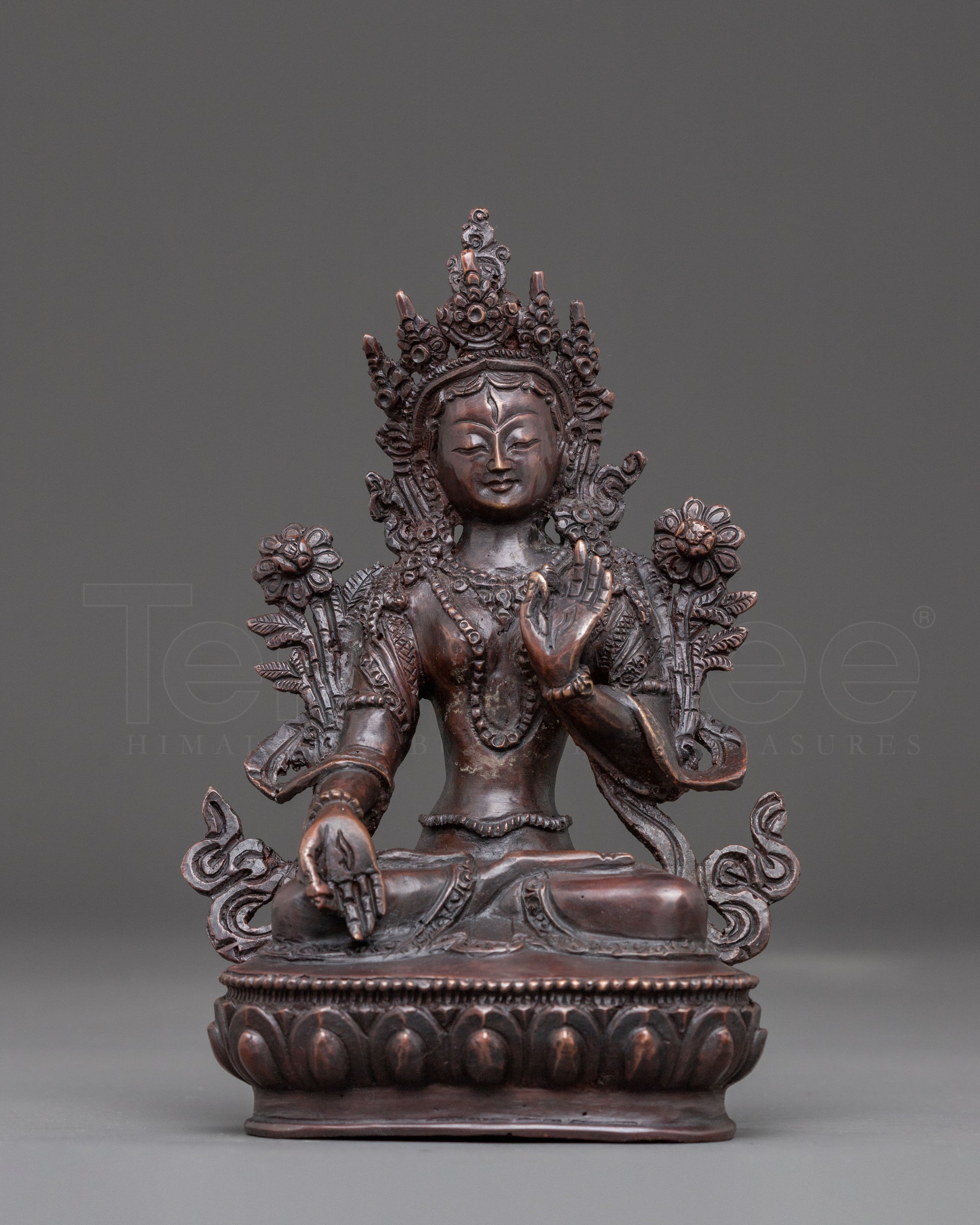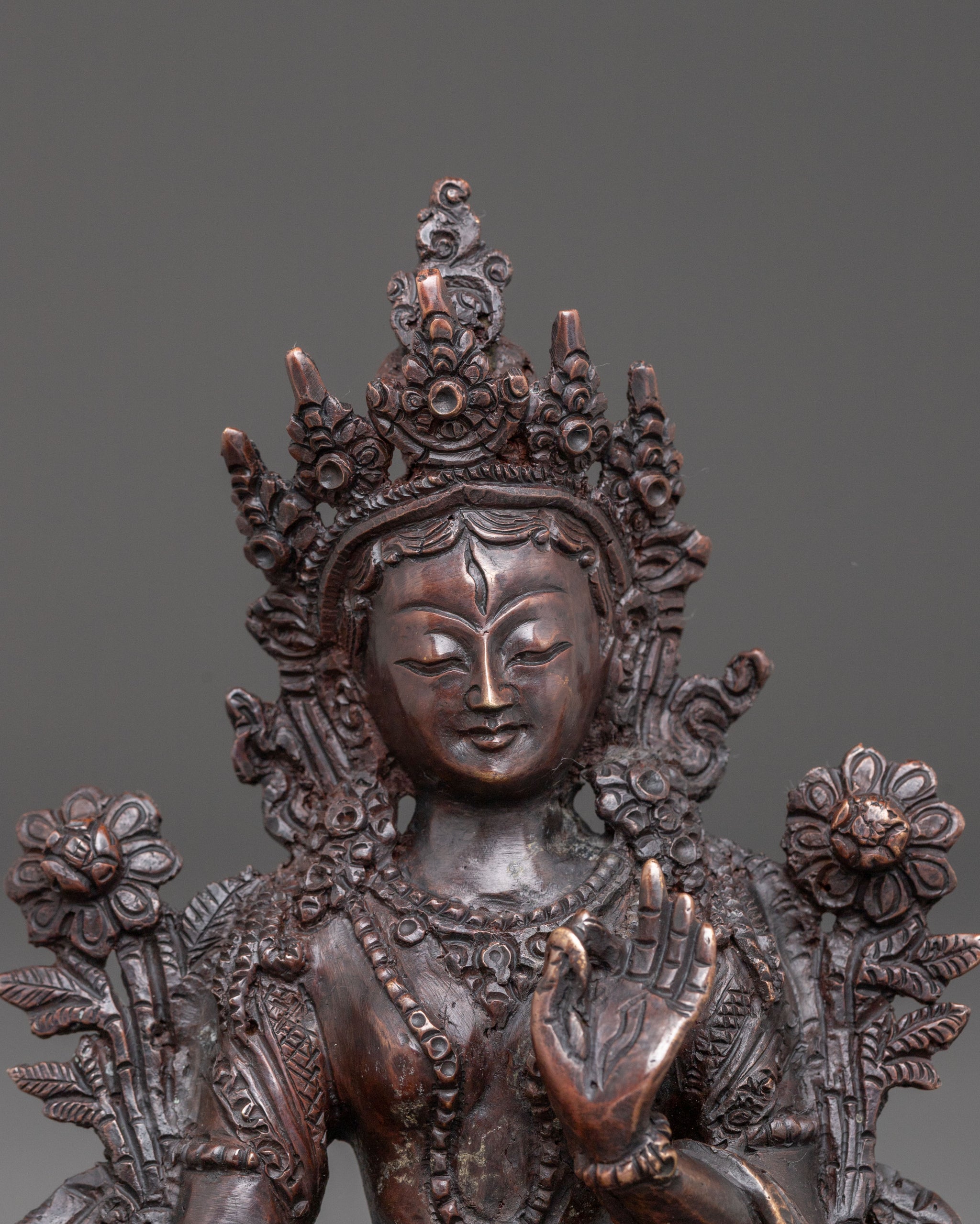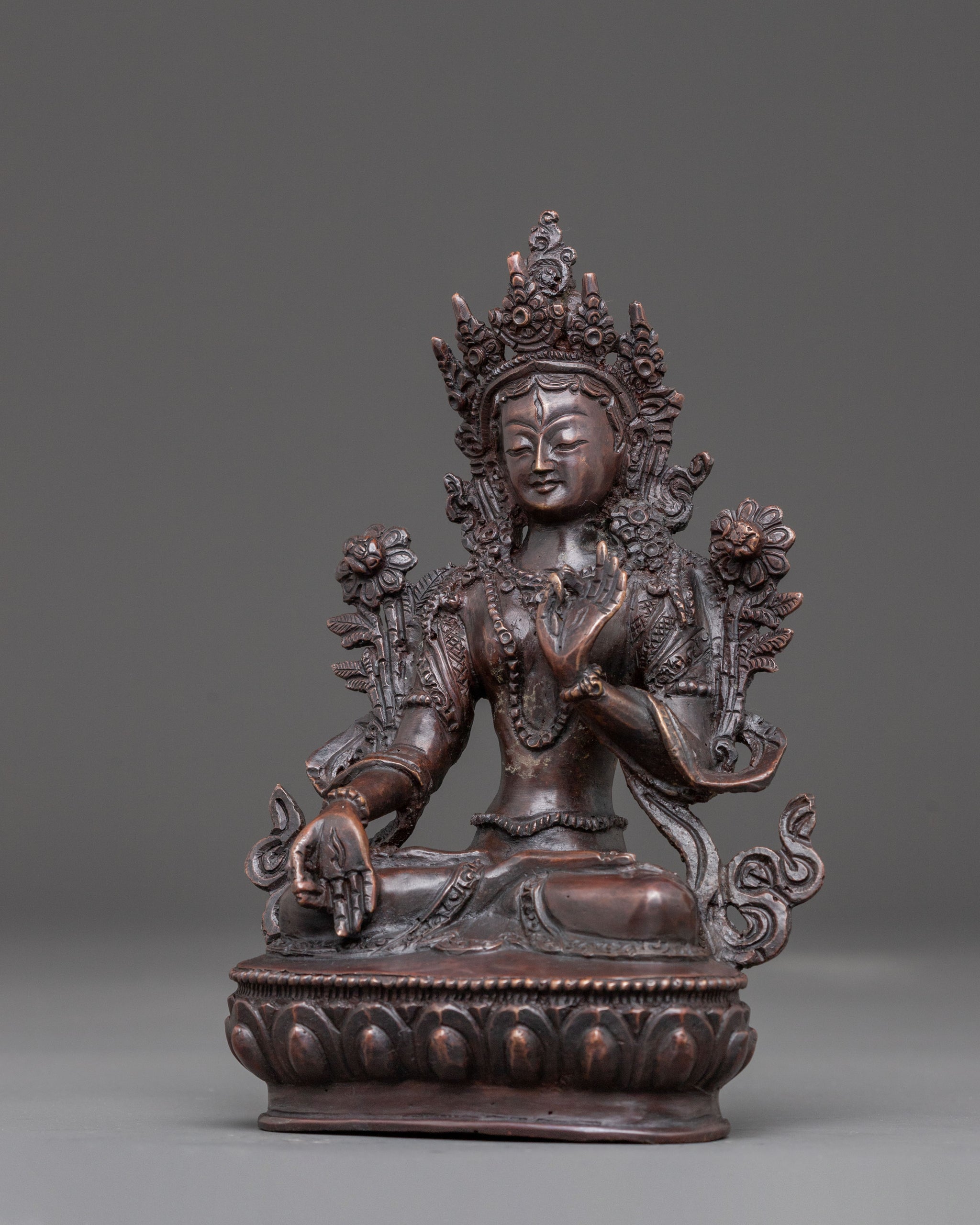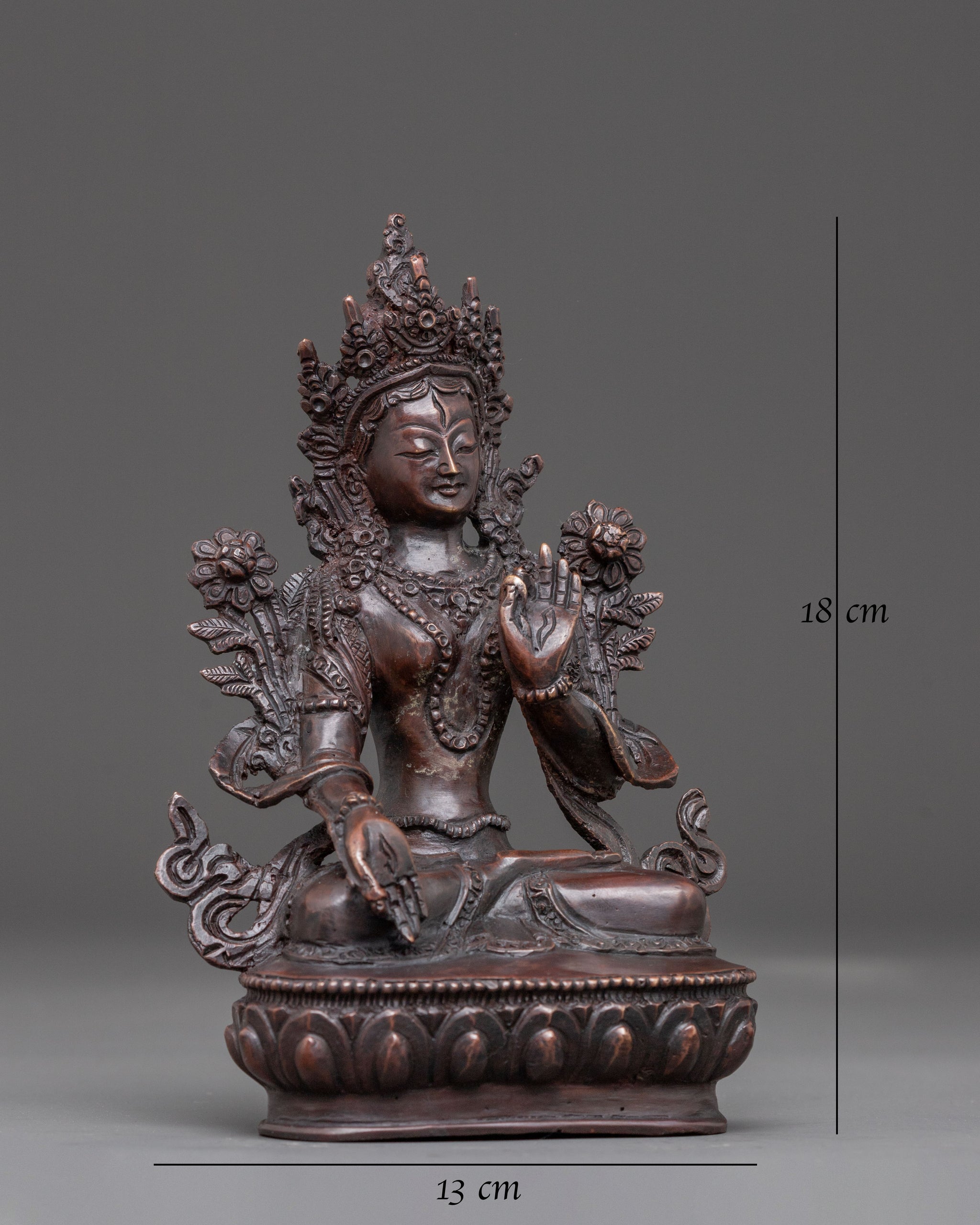 Himalayan Handcrafted White Tara Oxidized Copper Statue