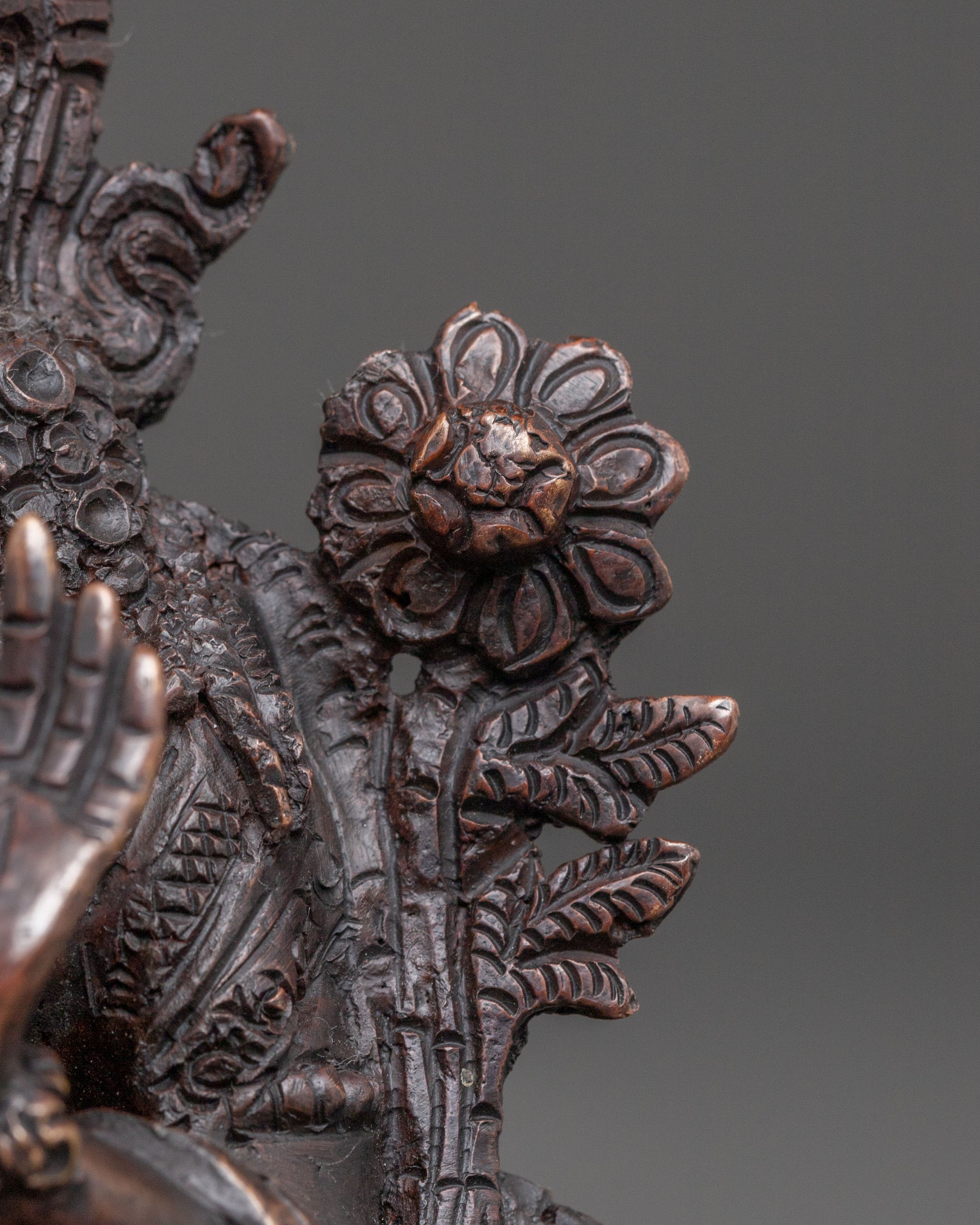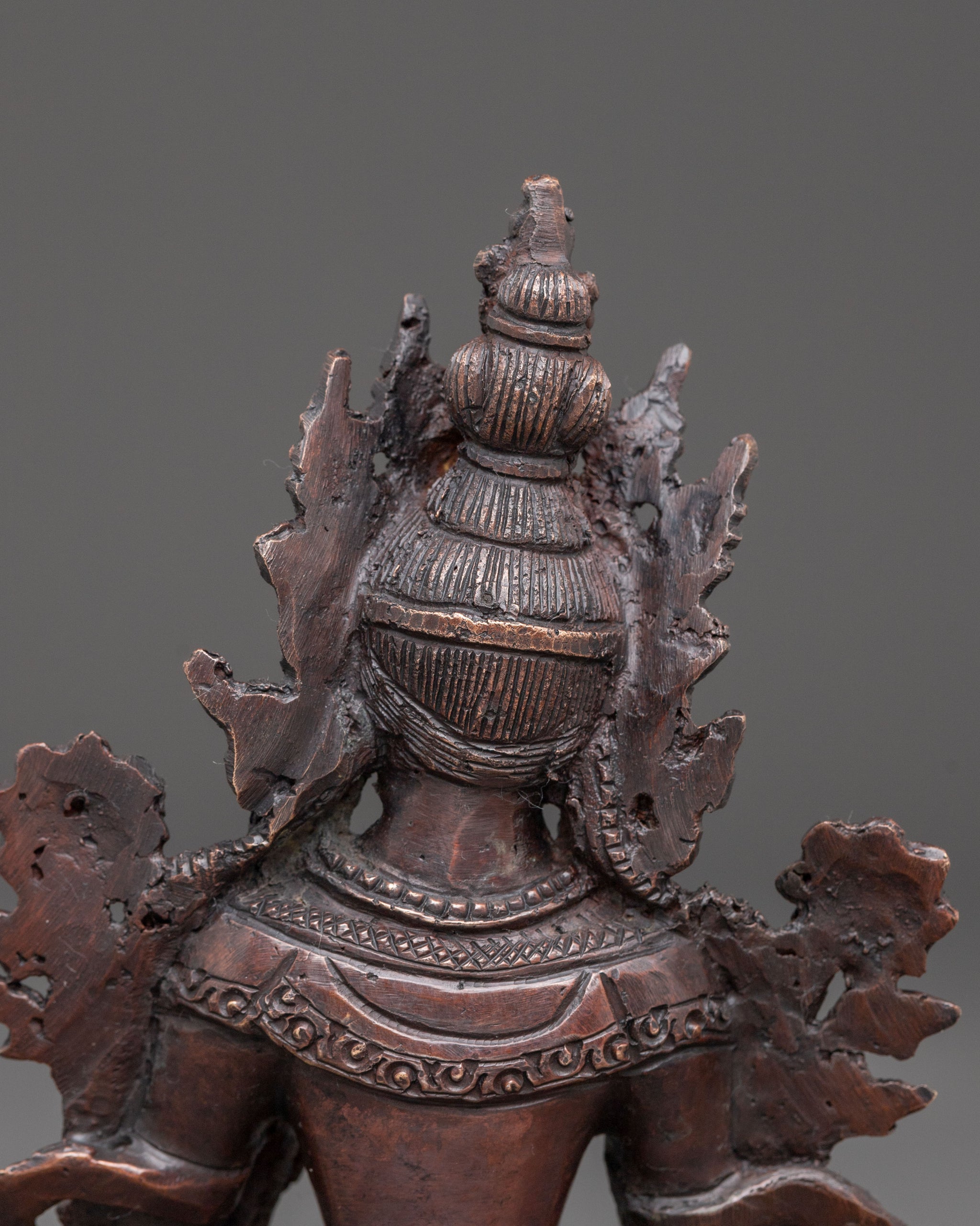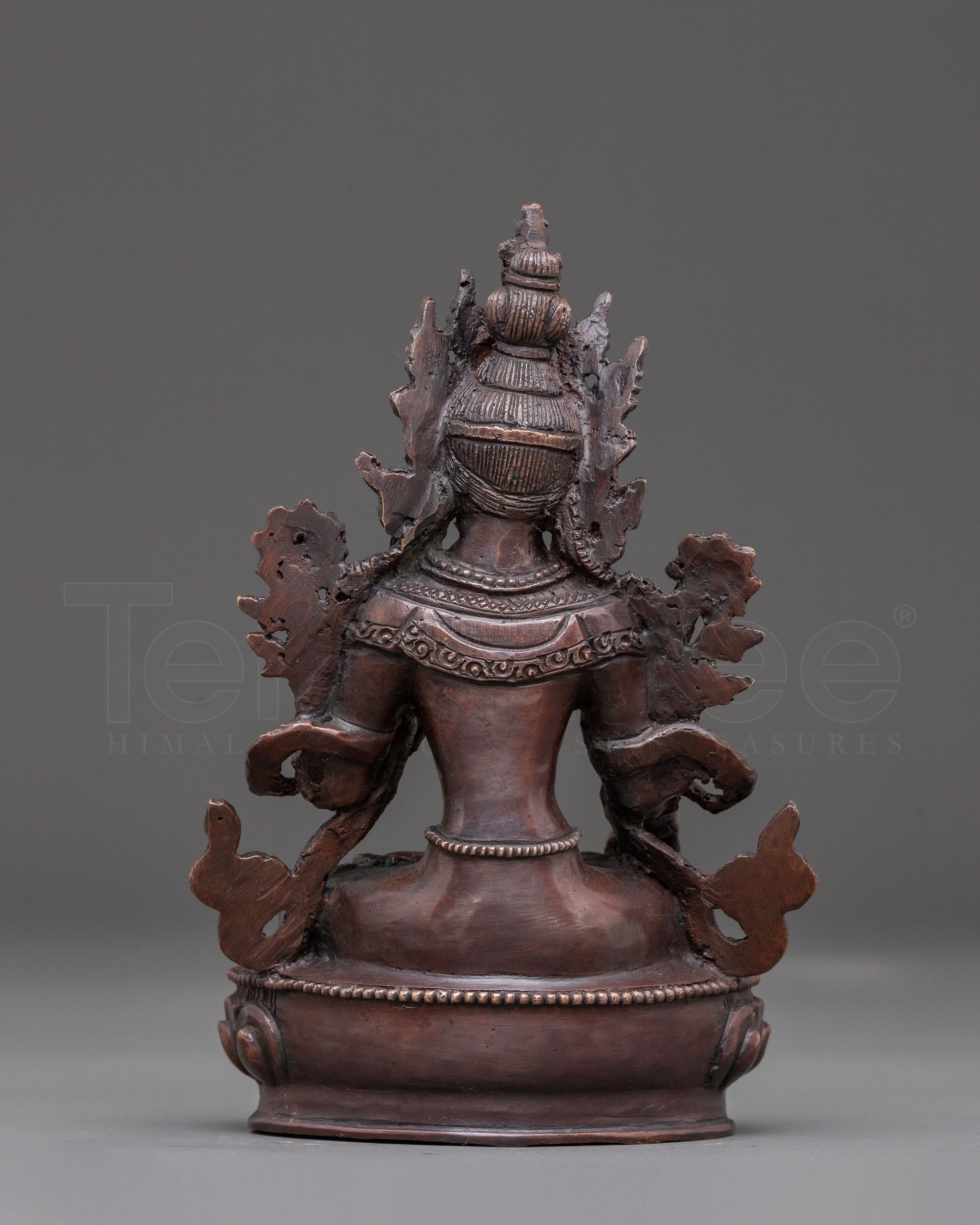 This Himalayan Handcrafted White Tara Oxidized Copper Statue stands at 7.1” (18cm) in height and 5.1” (13cm) at the base, weighing 0.88 kg. Expertly made from oxidized copper, it showcases a serene and timeless aesthetic, perfect for those drawn to the peaceful and healing qualities of White Tara. The delicate craftsmanship highlights her graceful posture and flowing adornments, making it an ideal piece for altars, meditation corners, or as a meaningful spiritual gift.