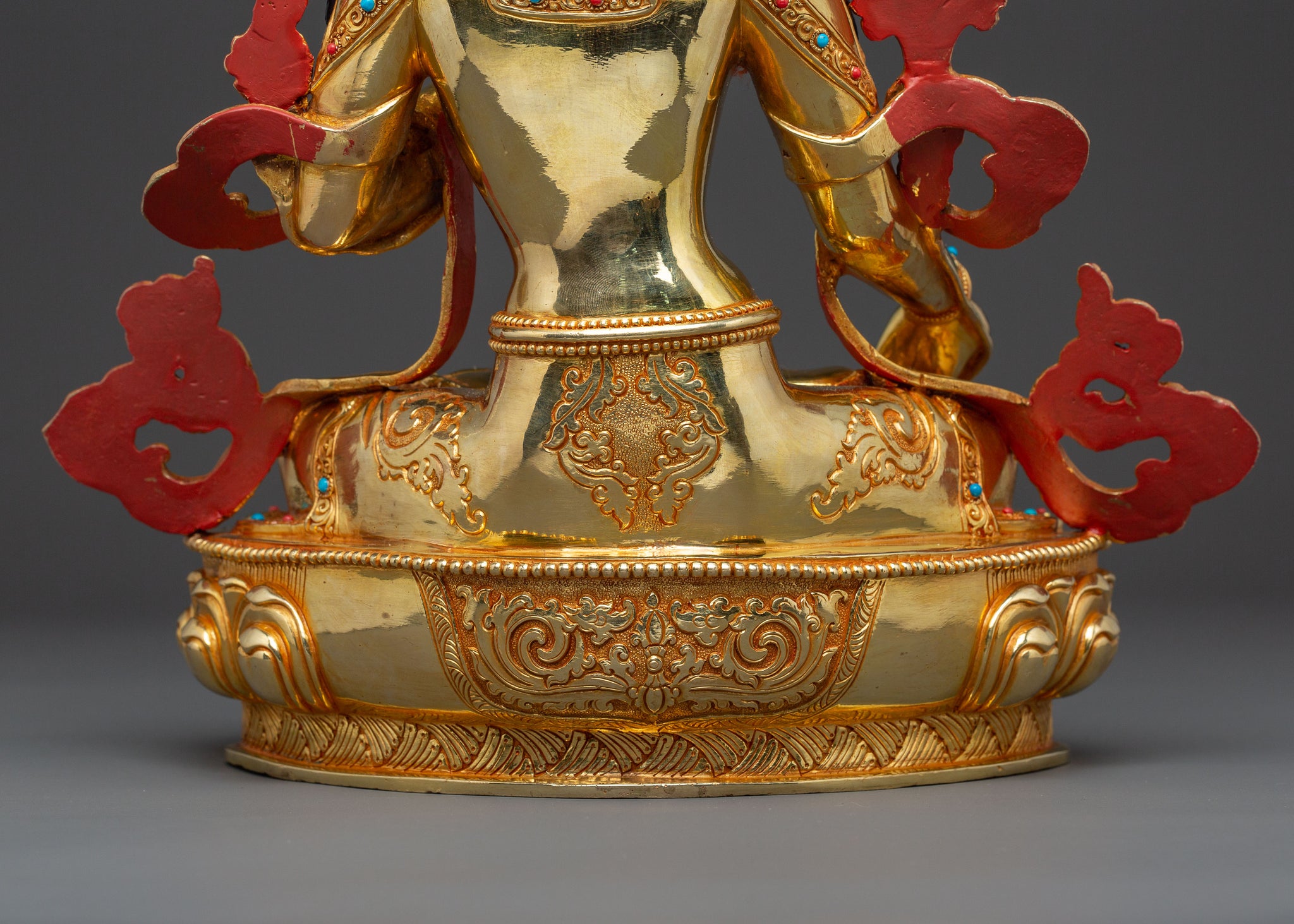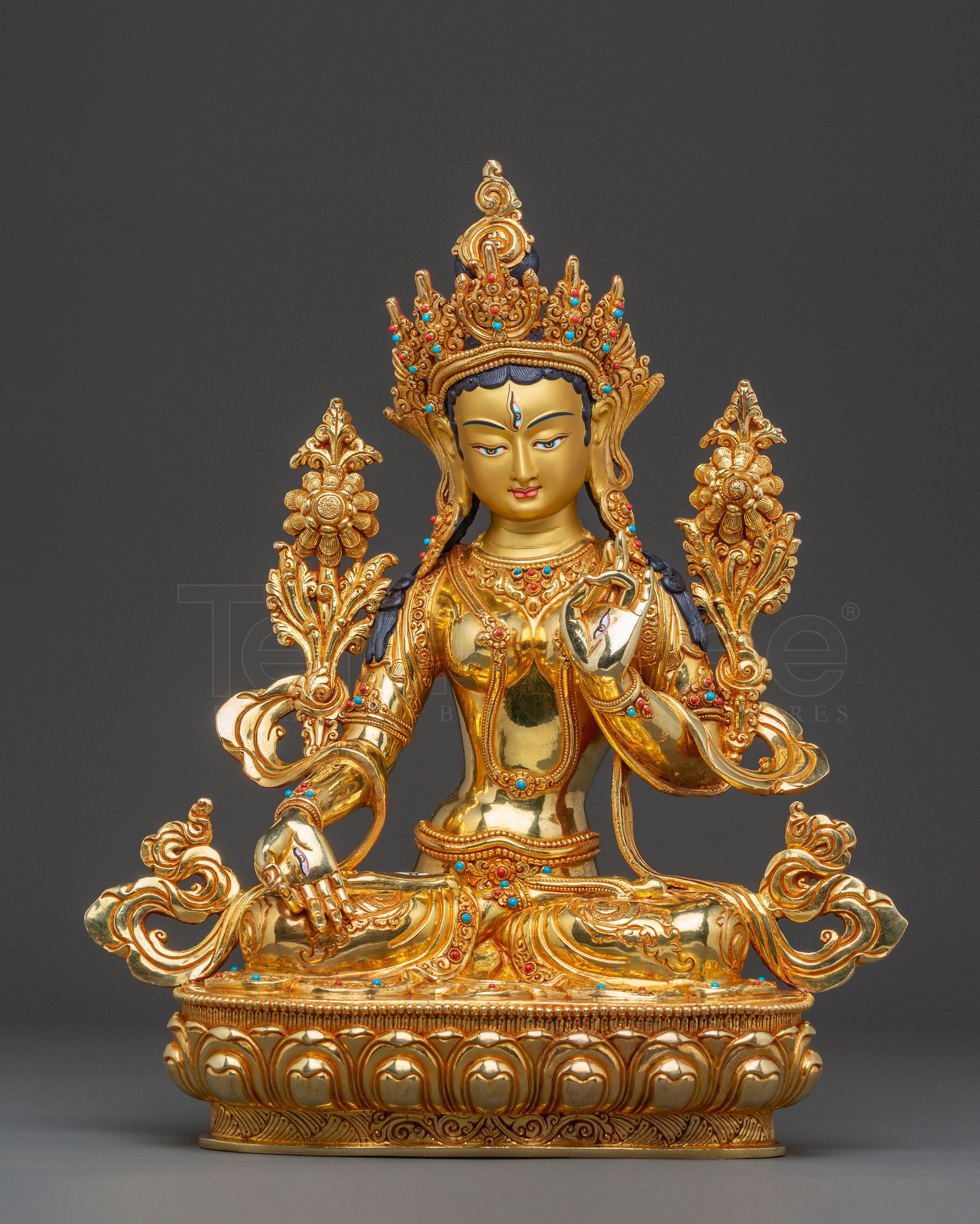 Handcrafted White Tara Spiritual Statue: 24K Gold Gilded Masterpiece