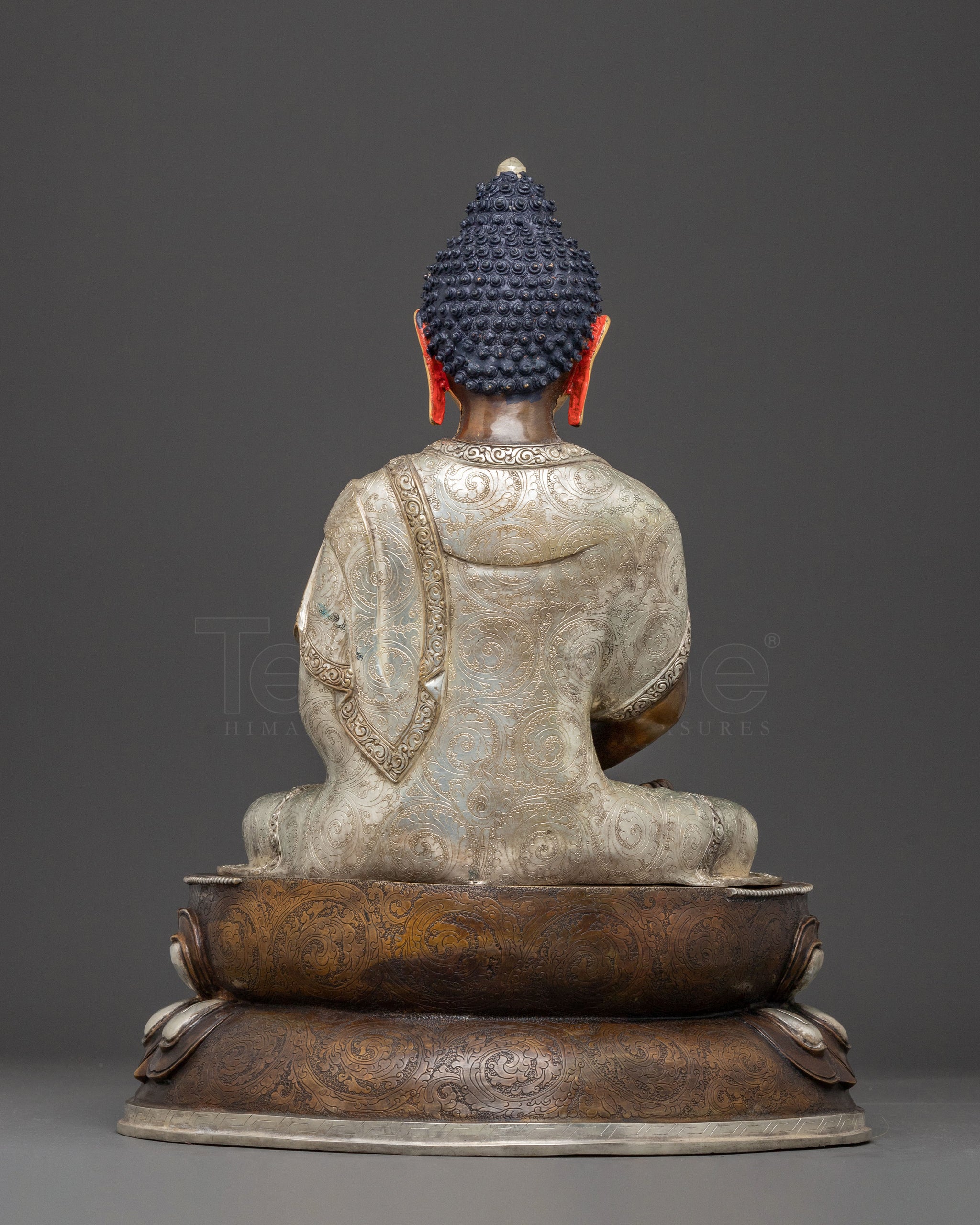 This Handmade Amitabha Buddha Oxidized Statue stands at 19.3”/49cm in height and 14.6”/37cm at the base, weighing 11.66 kg. Made from an oxidized copper body and silver-plated details, it reflects traditional Himalayan craftsmanship. The statue embodies Amitabha Buddha’s serene presence and boundless compassion, making it an inspiring addition to altars, meditation spaces, or spiritual collections.