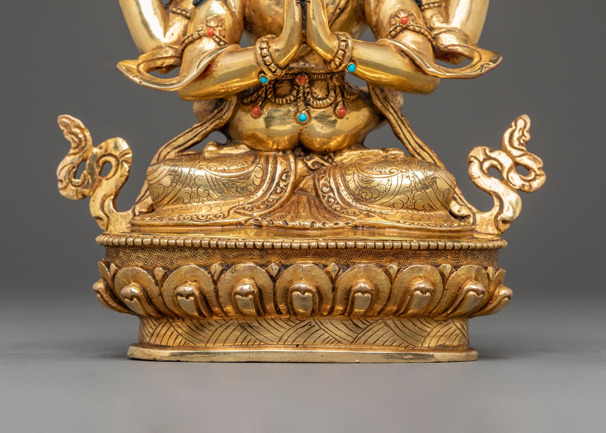 Traditional Handmade Avalokiteshvara Golden Statue | Compassion Deity