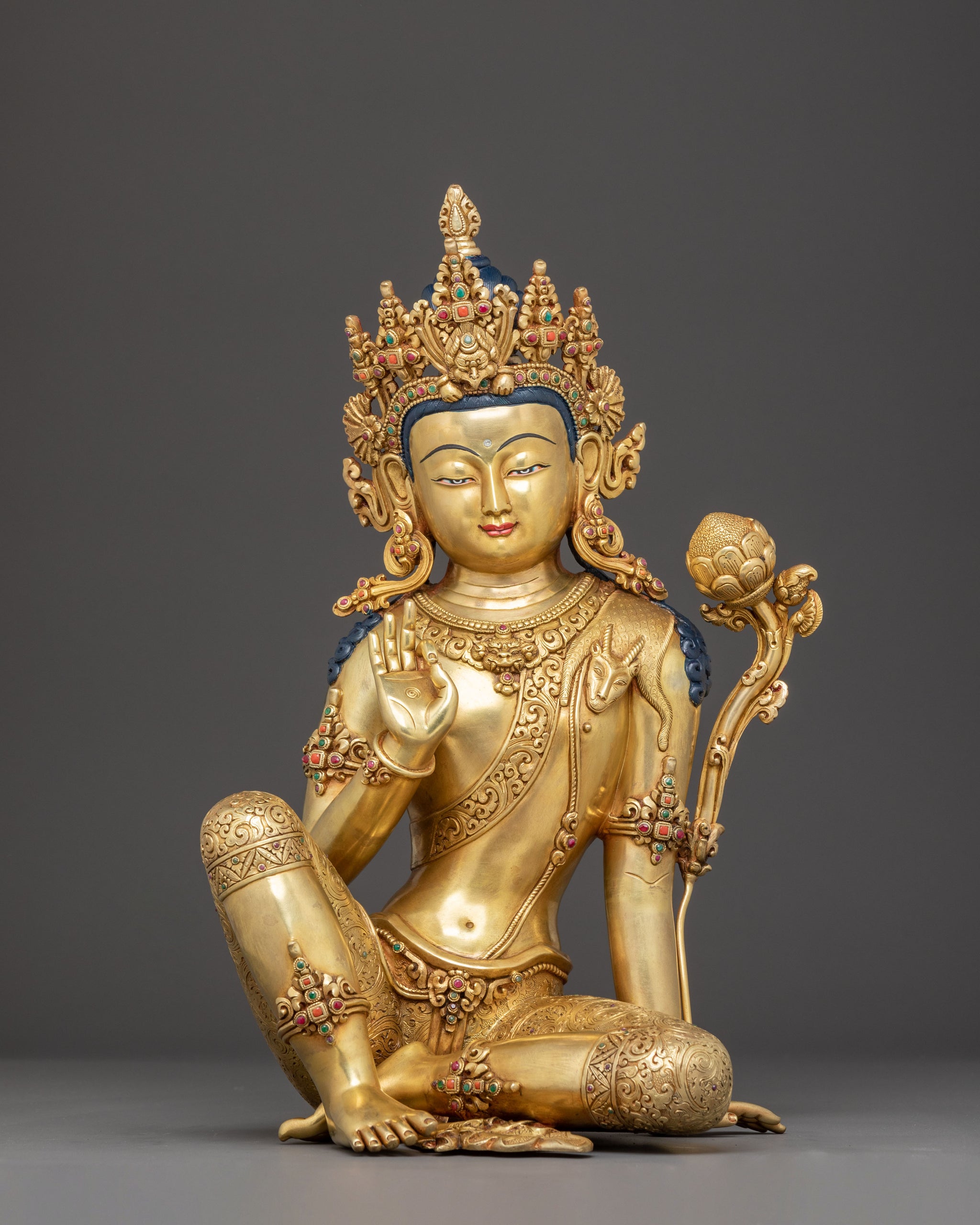 Handmade Bodhisattva Lokeshwor Statue | 24K Gold Gilded Sculpture