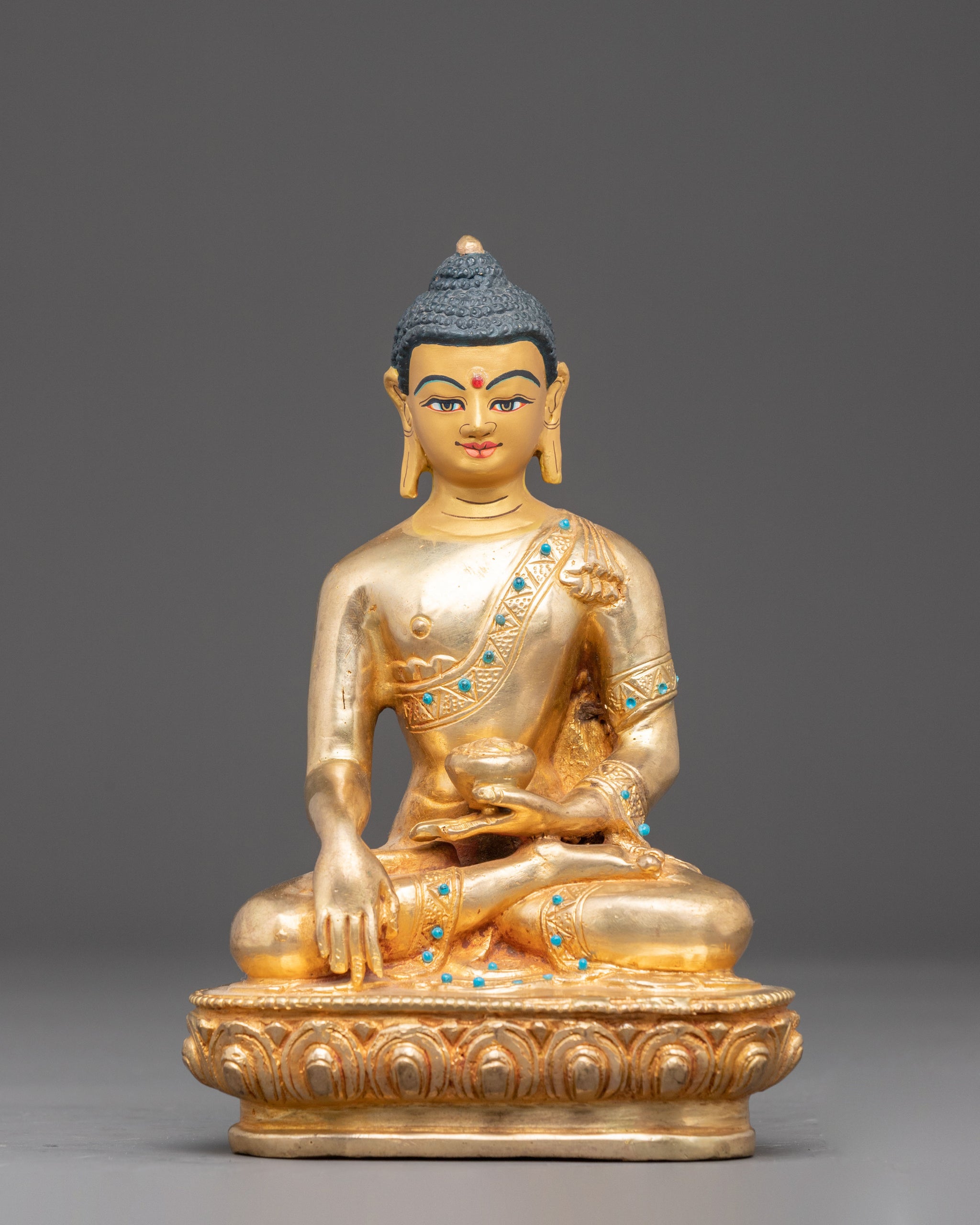 This statue represents Shakyamuni Buddha, the historical Buddha, who attained enlightenment under the Bodhi tree and taught the path to liberation. He embodies wisdom, compassion, and the ultimate truth, guiding practitioners toward nirvana. Seated in the lotus posture, he symbolizes stability, meditative focus, and transcendence over worldly suffering. His right hand touches the earth in the Bhumisparsha Mudra, calling the Earth to witness his enlightenment and victory over Mara. In his left hand, he holds an alms bowl, representing detachment, simplicity, and the renunciation of material desires. The ushnisha atop his head signifies his supreme spiritual wisdom and enlightenment.