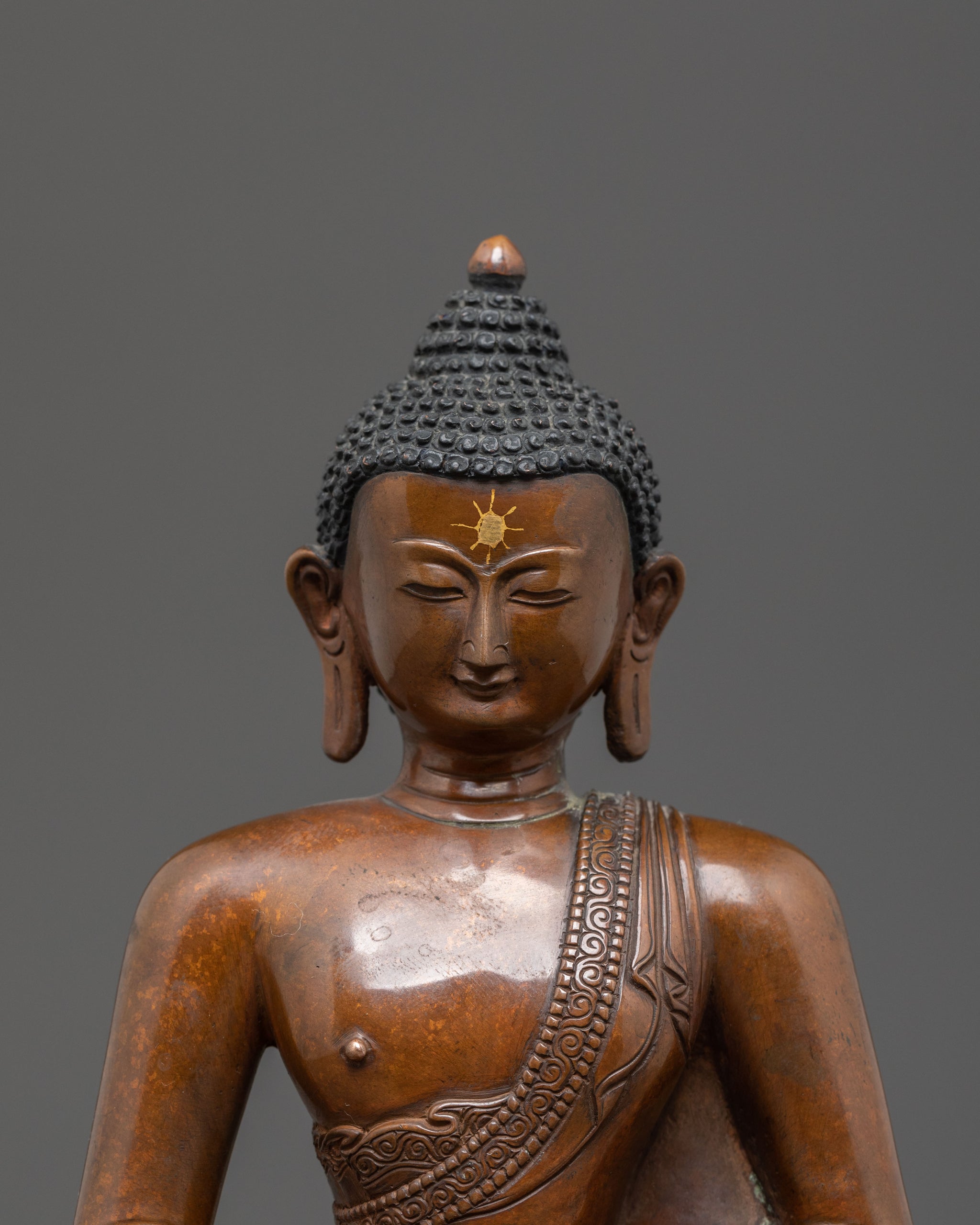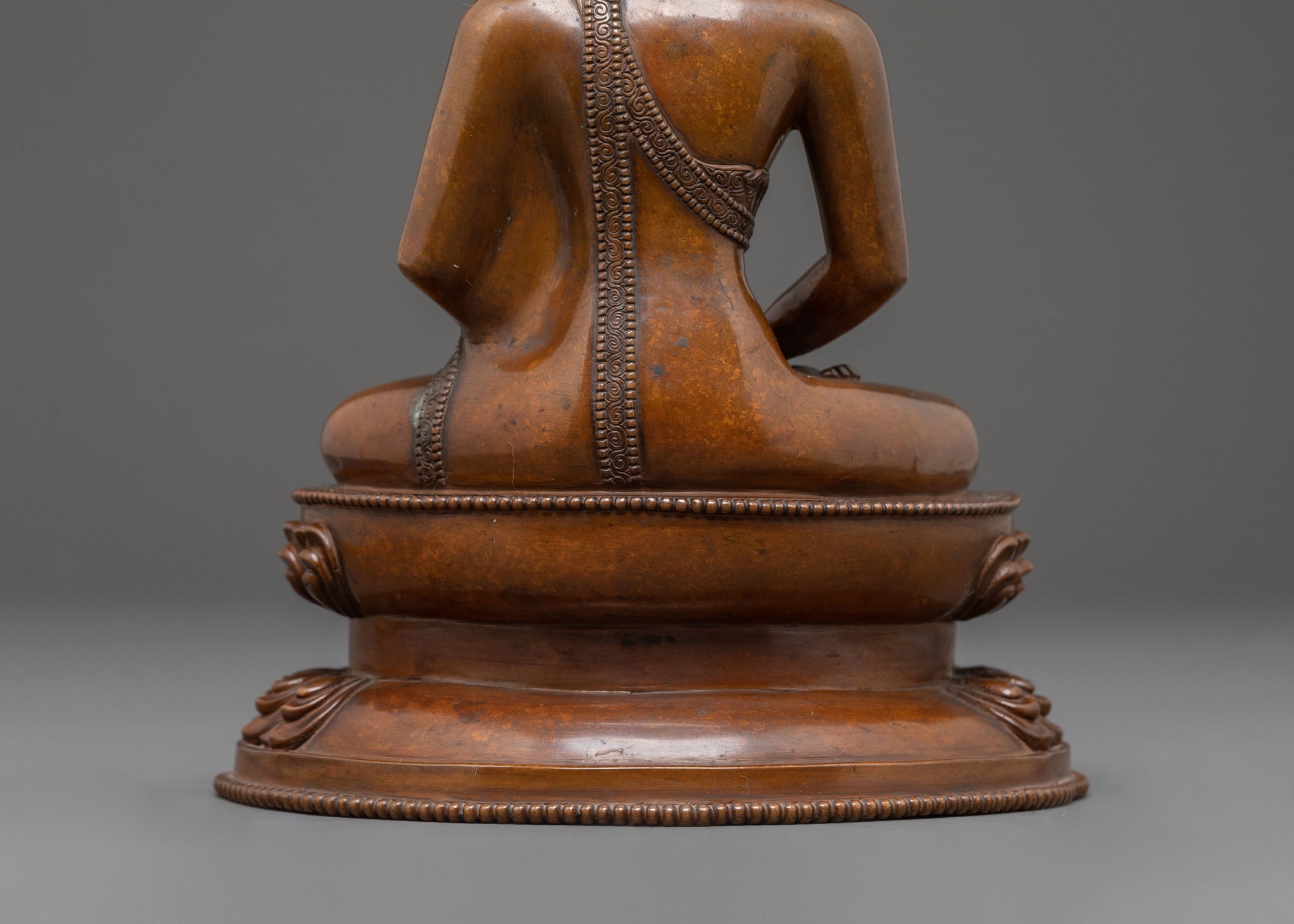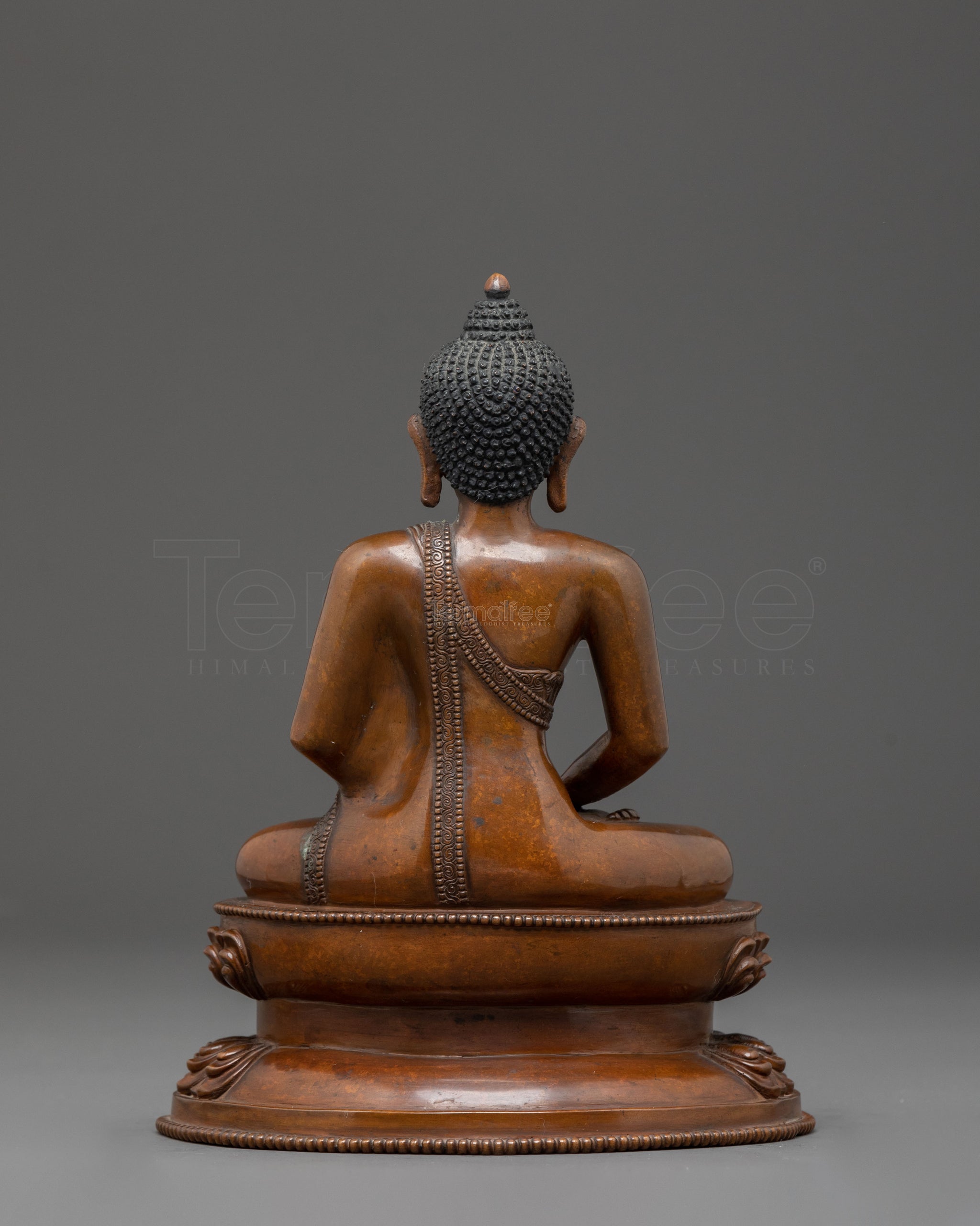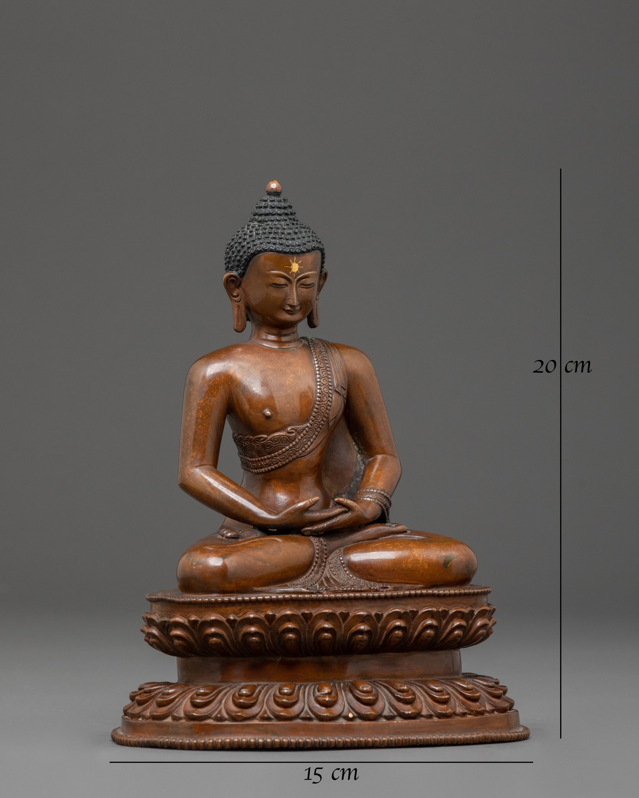 This Handmade Dharmakara Buddha Golden Statue stands at 7.9”/20cm in height and 5.9”/15cm at the base, weighing 1.77 kg. Made from oxidized copper with gold and acrylic paintings, it reflects traditional craftsmanship. Designed by talented Nepalese artisans, this piece is ideal for altars, meditation areas, or as a meaningful decor item for individuals seeking to cultivate awareness in their daily lives.
