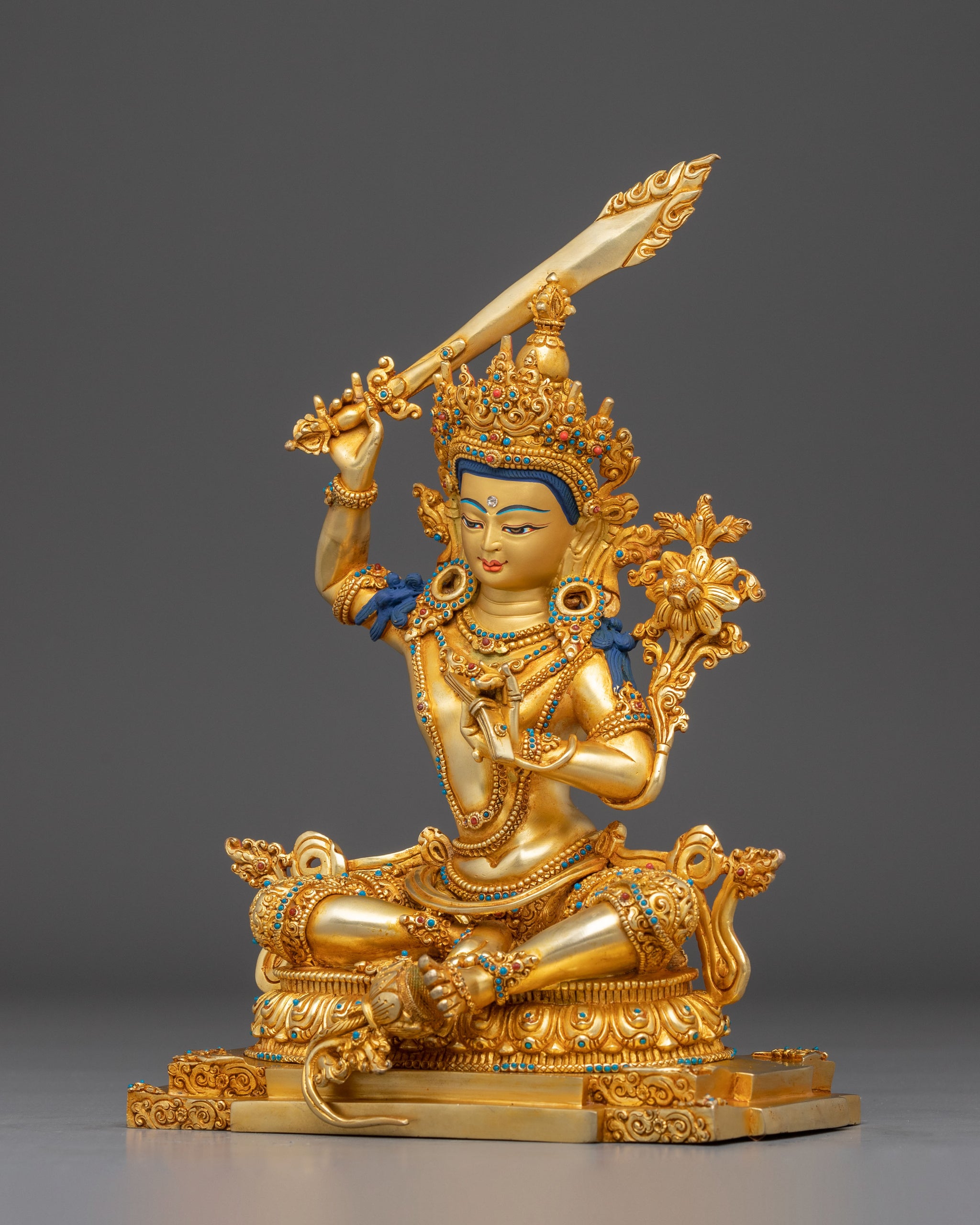 Handmade Figurine of Manjushri, The Wisdom Bodhisattva | Meditation & Altar Decor