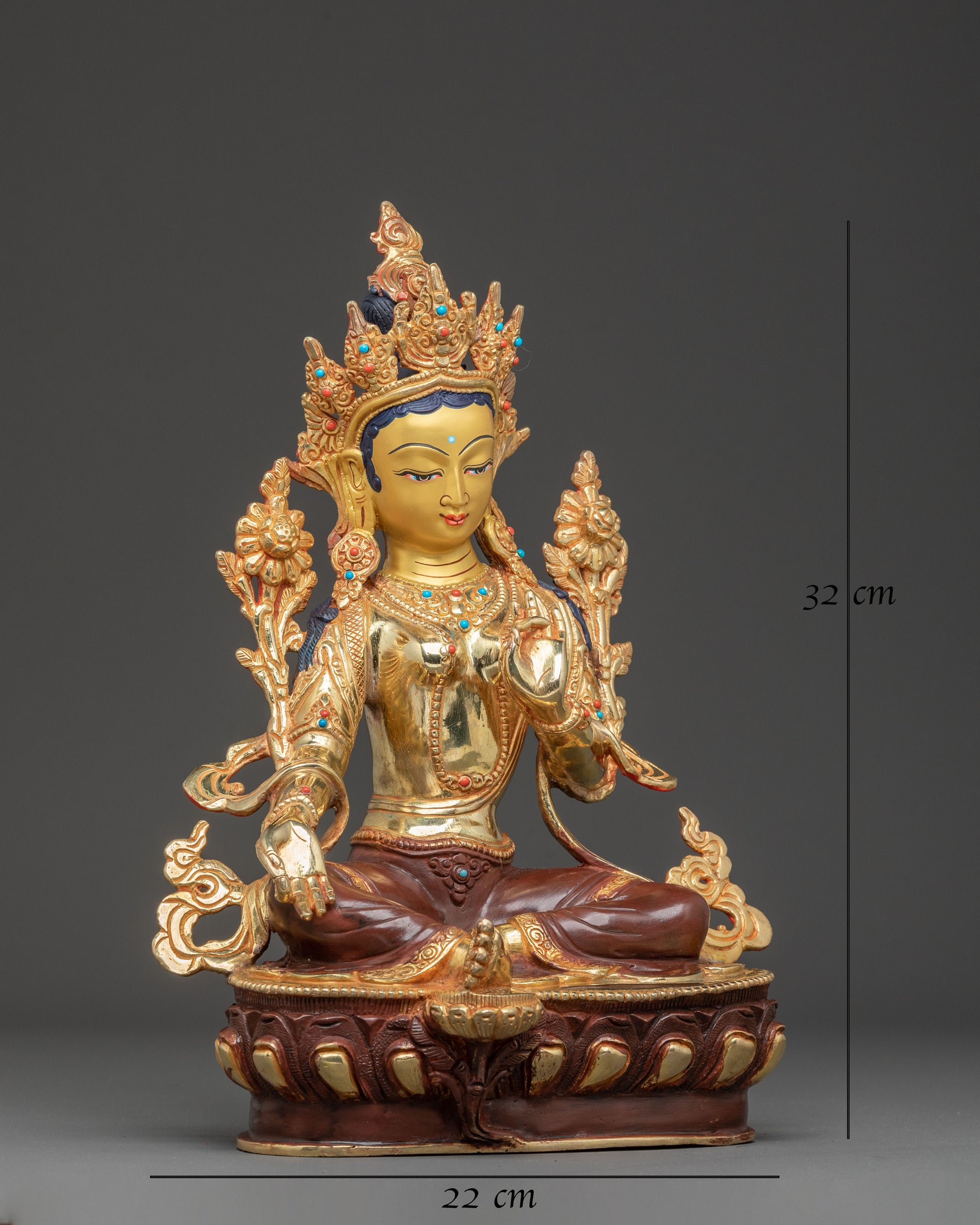 Handmade Golden Green Tara Statue | Mother of Liberation