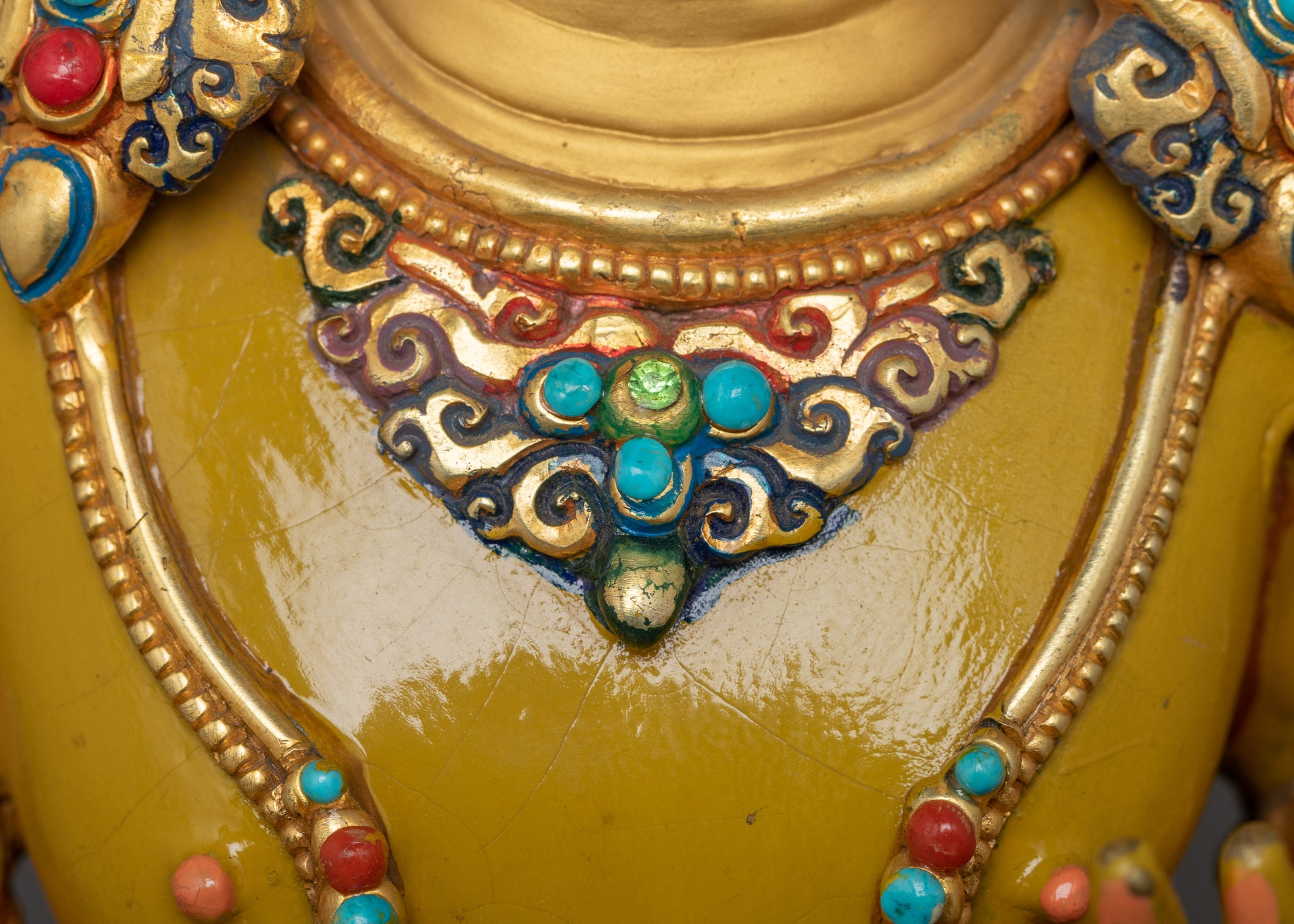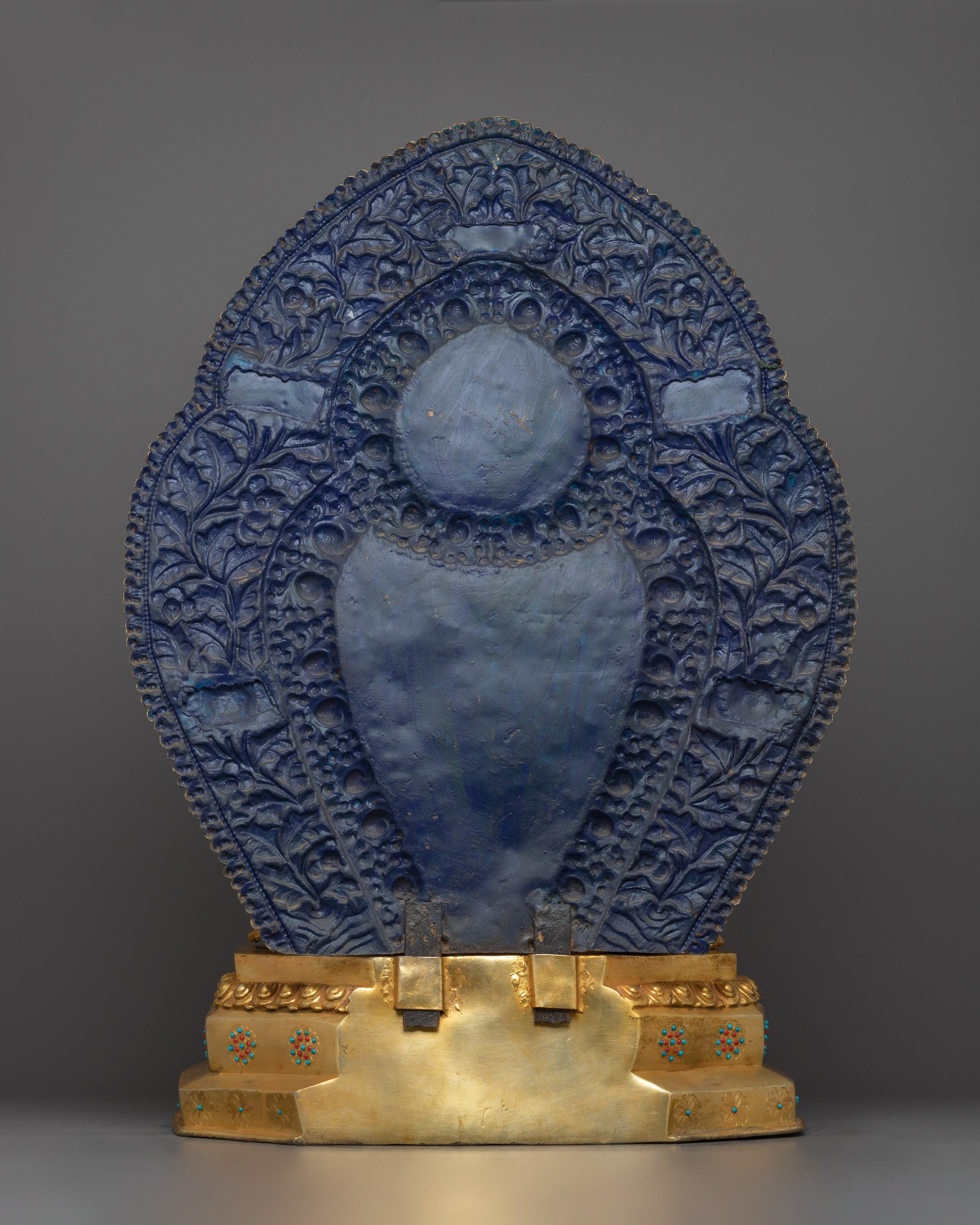 Vajrayogini is stunning. The details are amazing. It's easy to make out her facial expressions, skulls, feet, and the ring of fire around her. You can tell she's handmade. There is a consecration hole in her back.