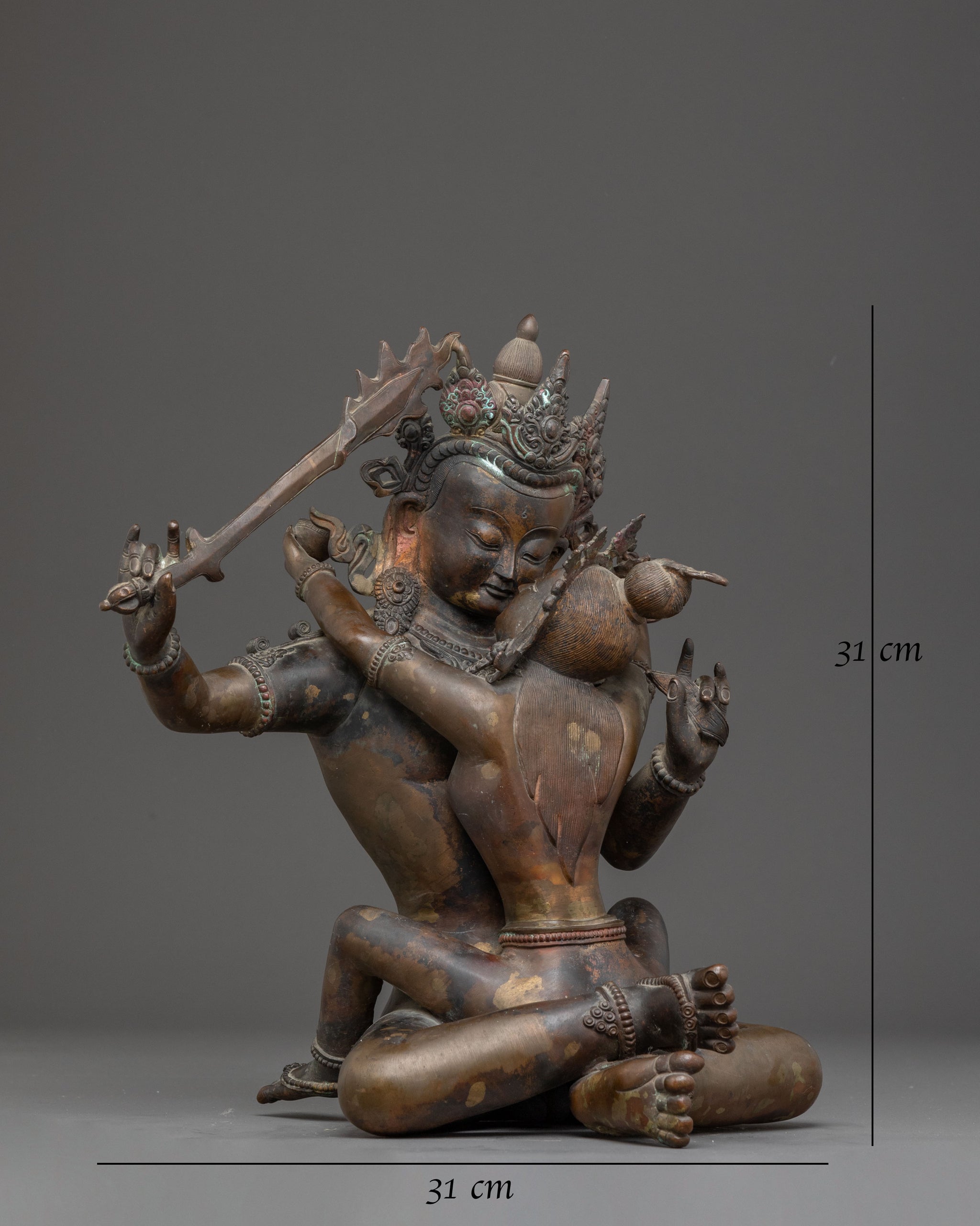 Handmade Manjushri with Consort Oxidized Statue – Ancient Wisdom Sculpture