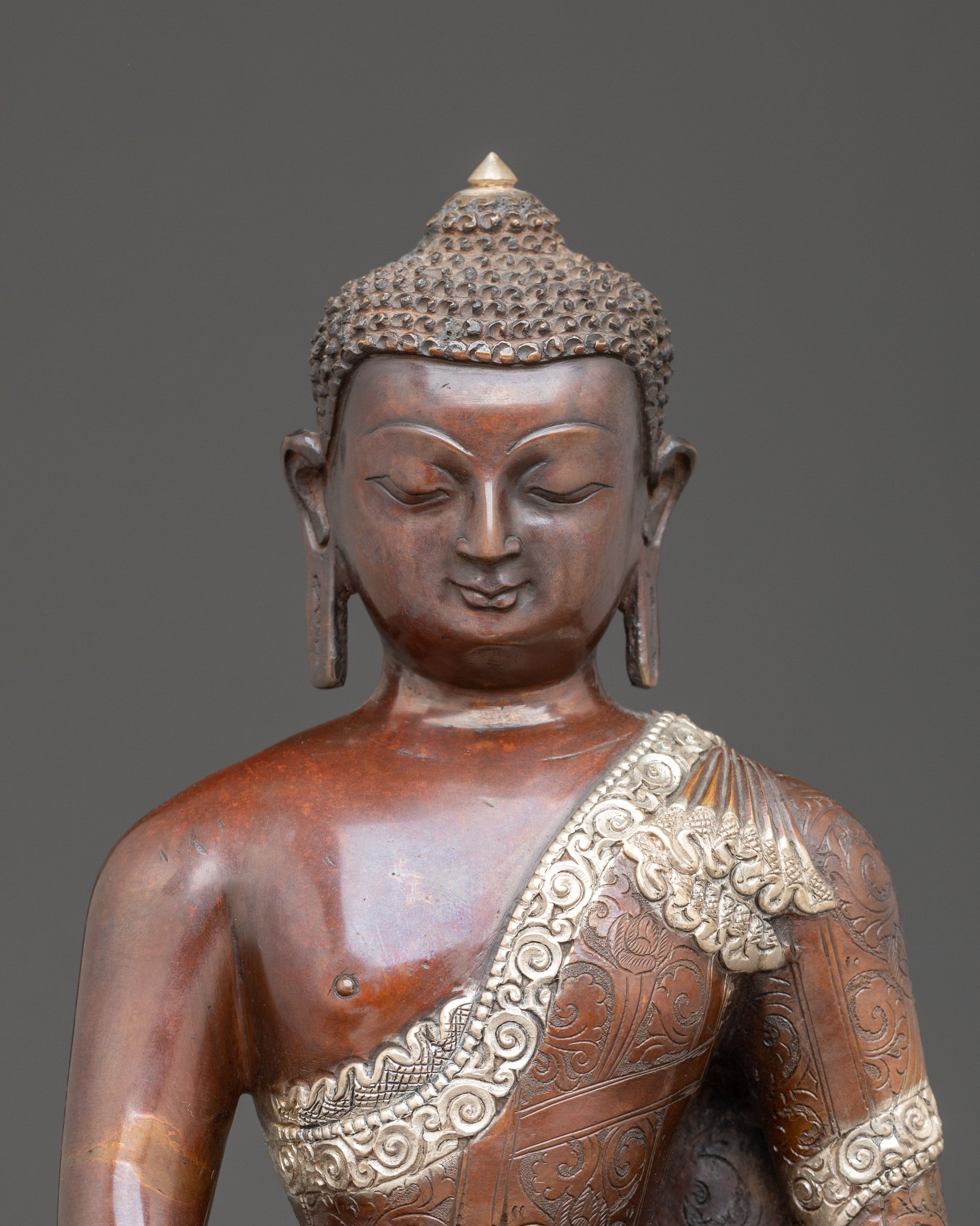 Handmade Oxidized Copper Statue of Shakyamuni Buddha