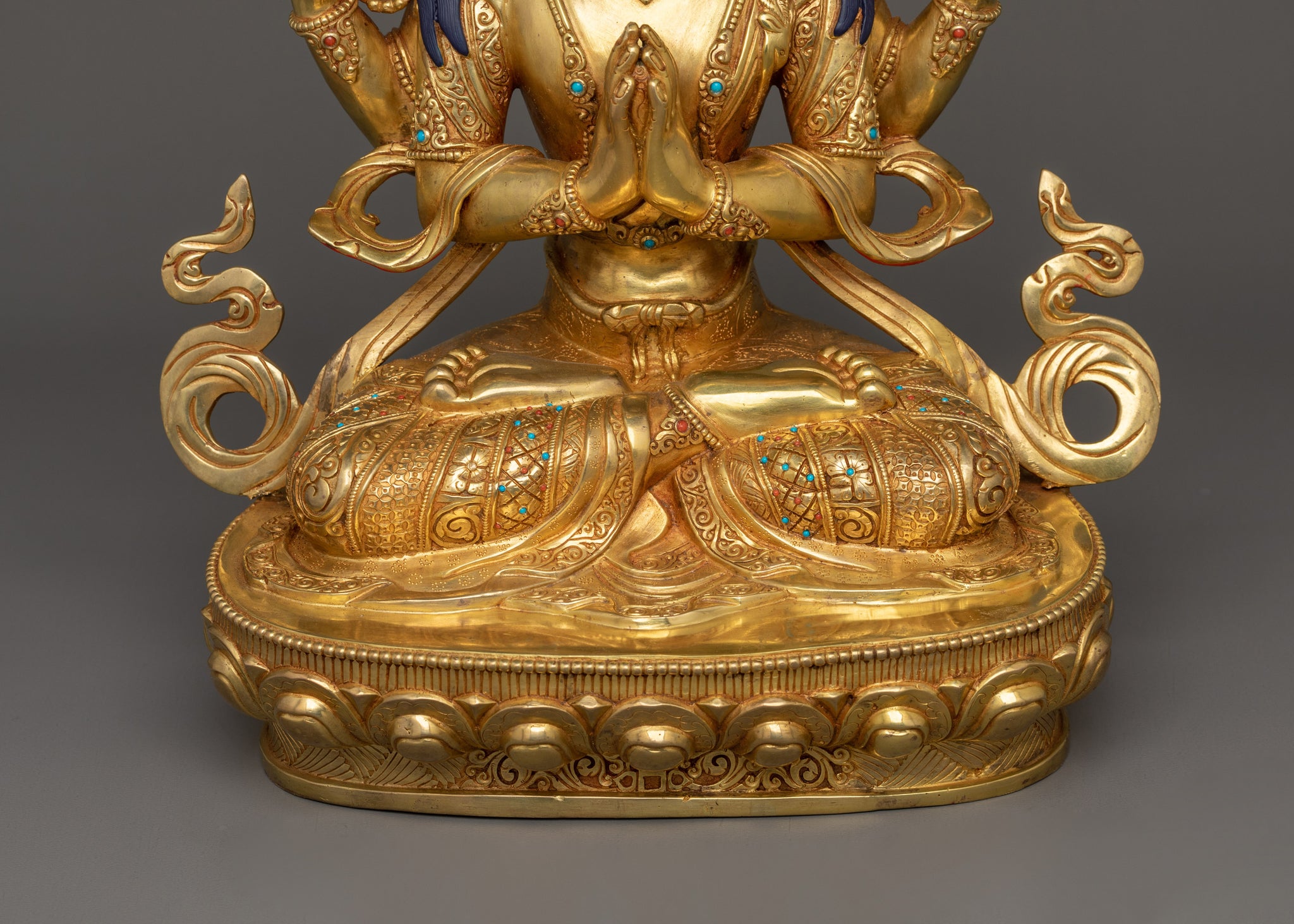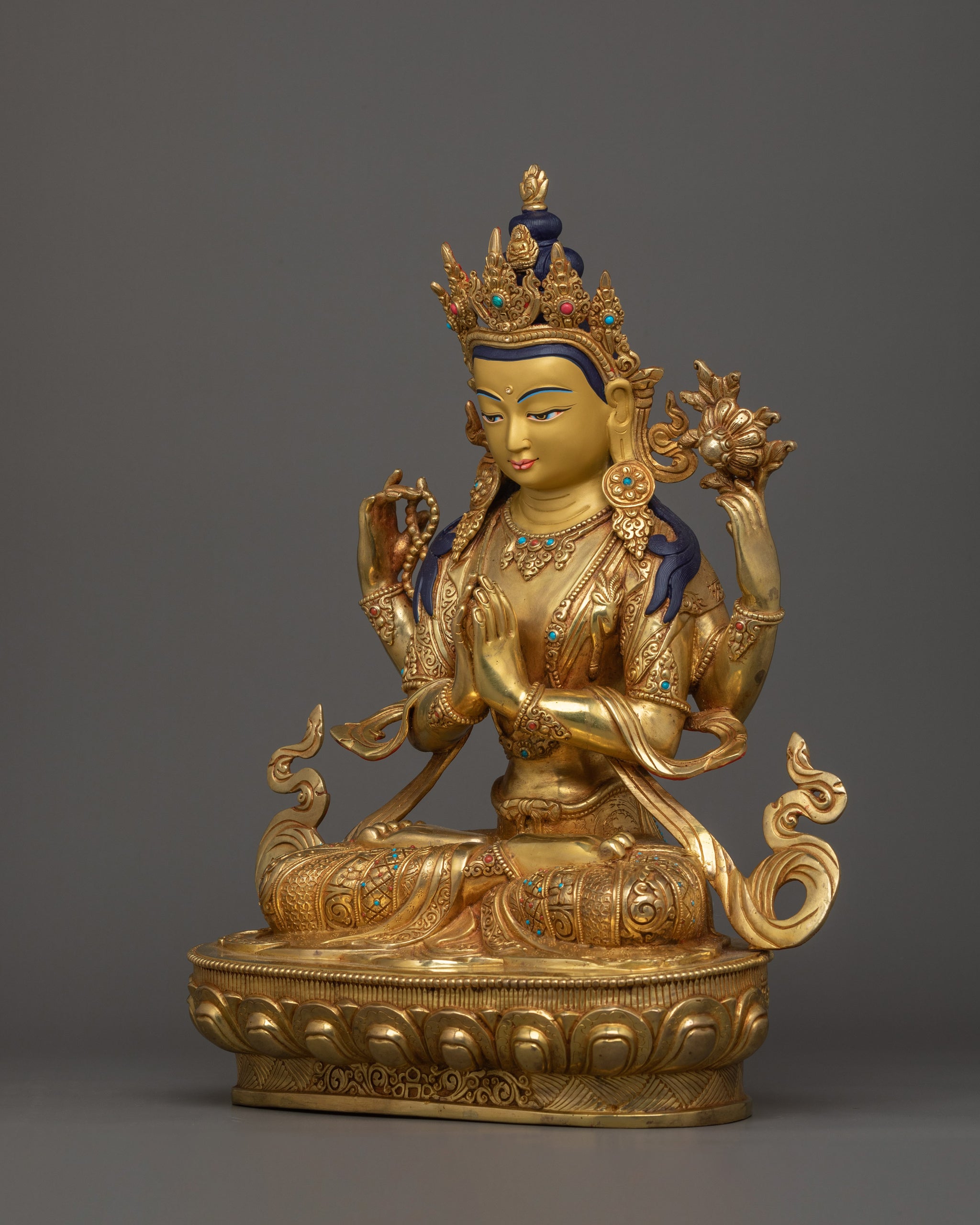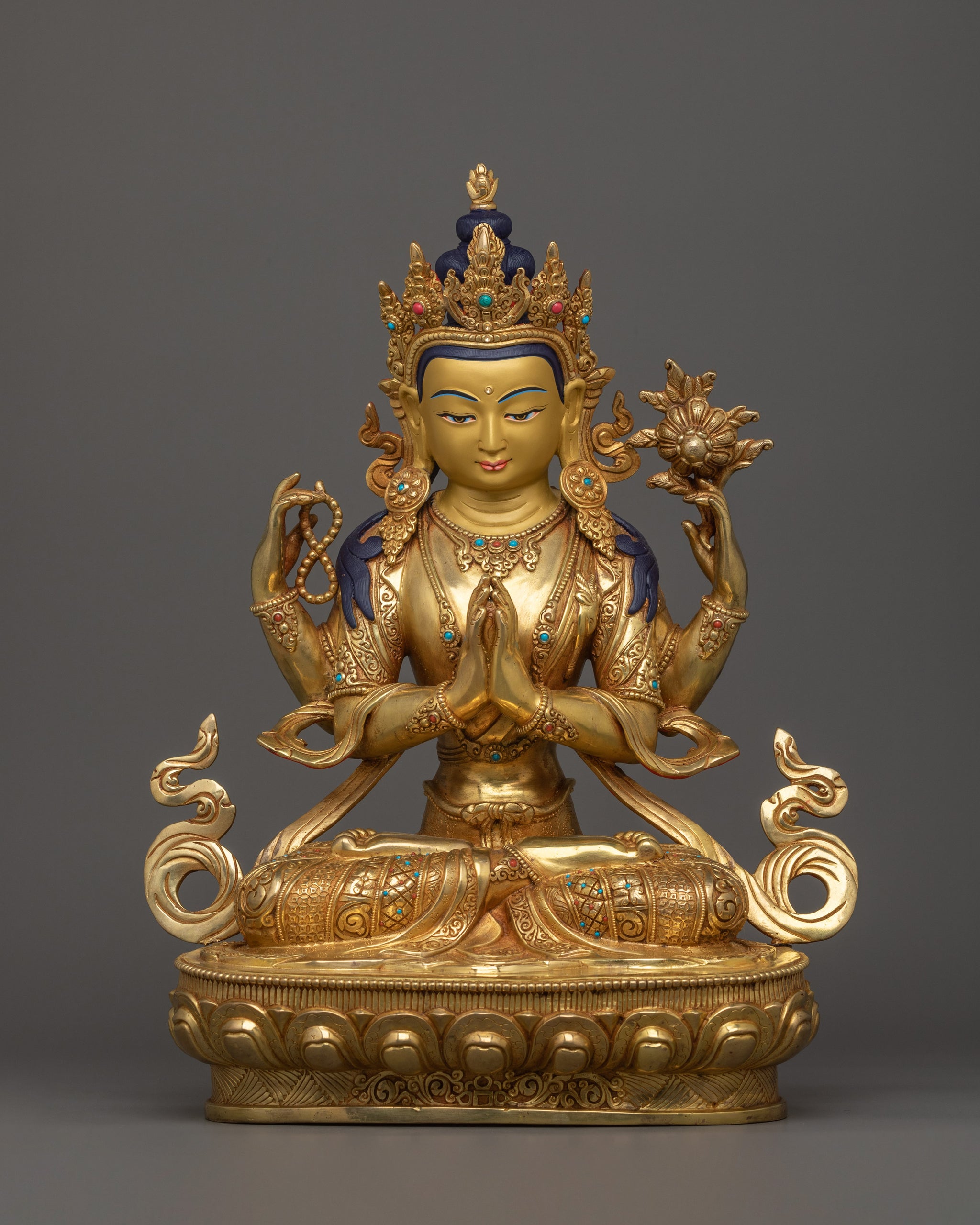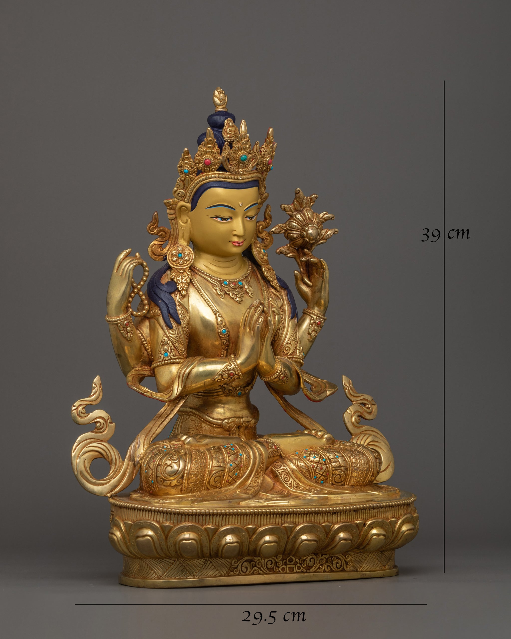 Handmade Sculpture of Four Armed Chenrezig | Bodhisattva of Infinite Compassion
